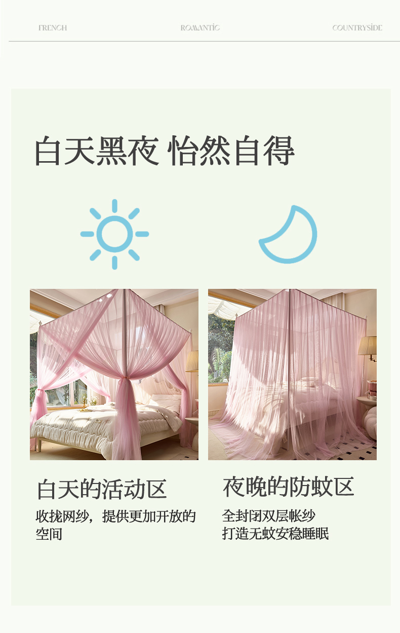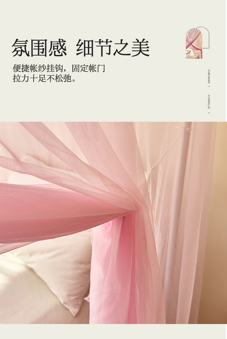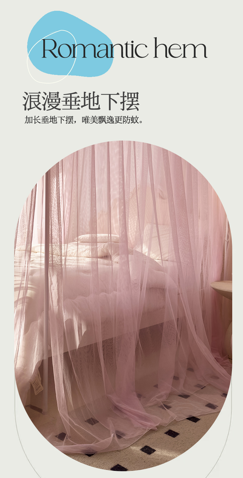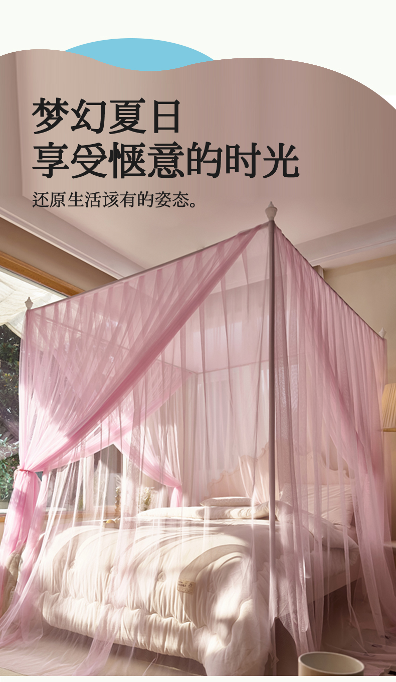 商品名称:新太阳蚊帐 2025新款轻奢落地宫廷蚊帐 双层轻奢款-少女粉