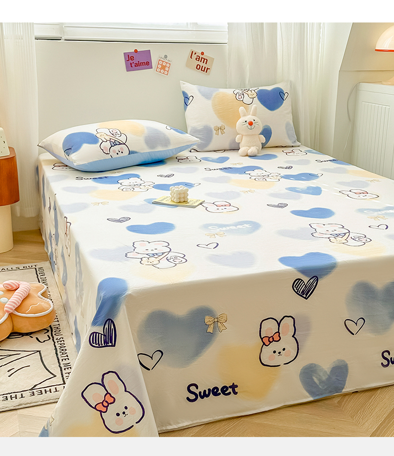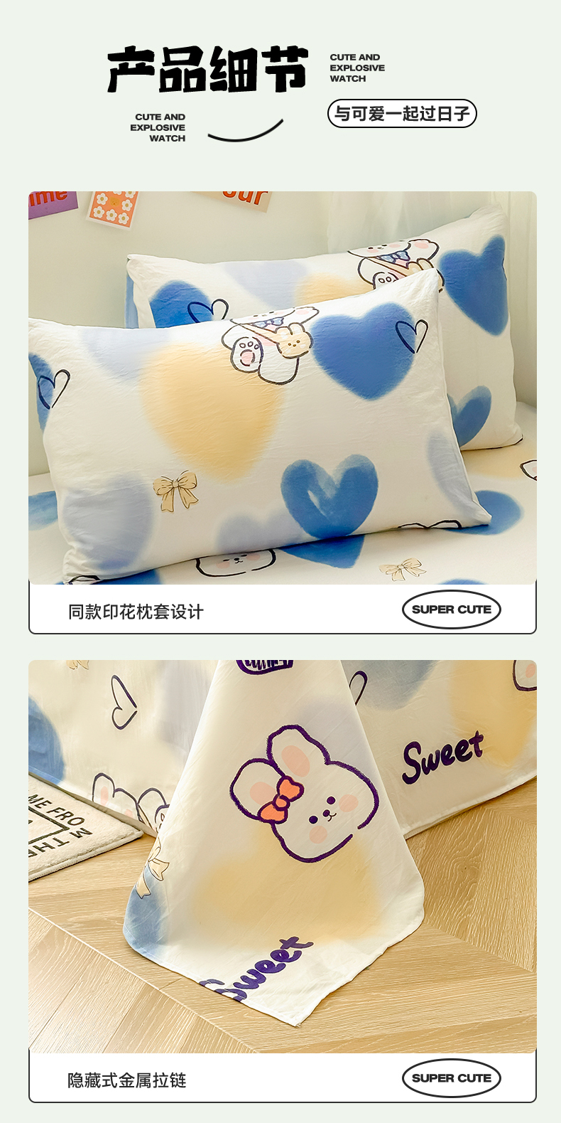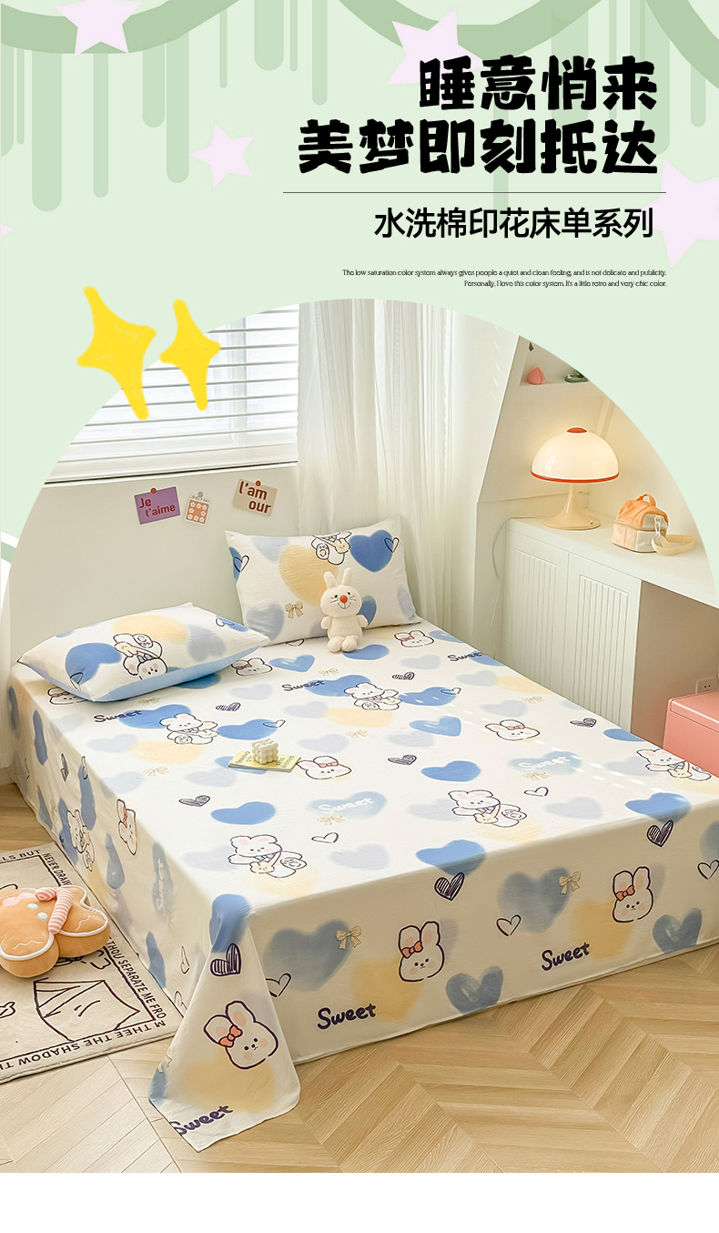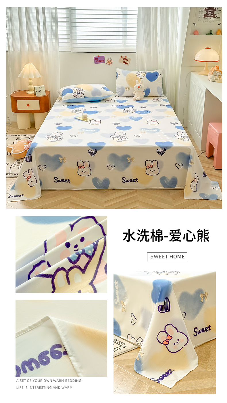 • 91家纺网 家纺一手货源 找家纺 古吉梦 2024新款水洗棉小清新印花床单 水洗棉-爱心熊