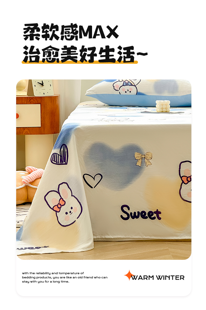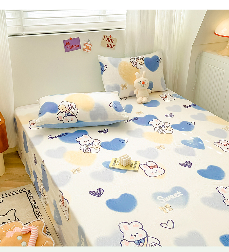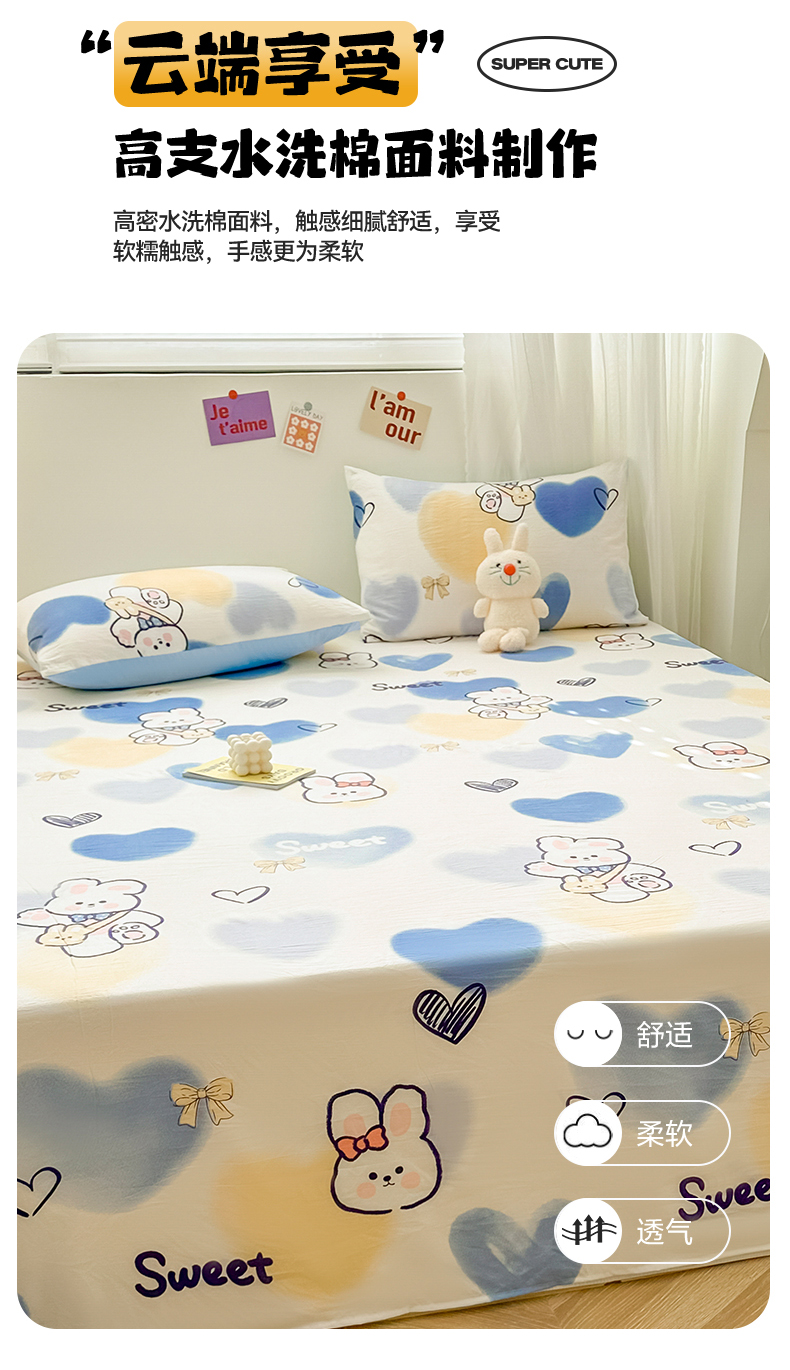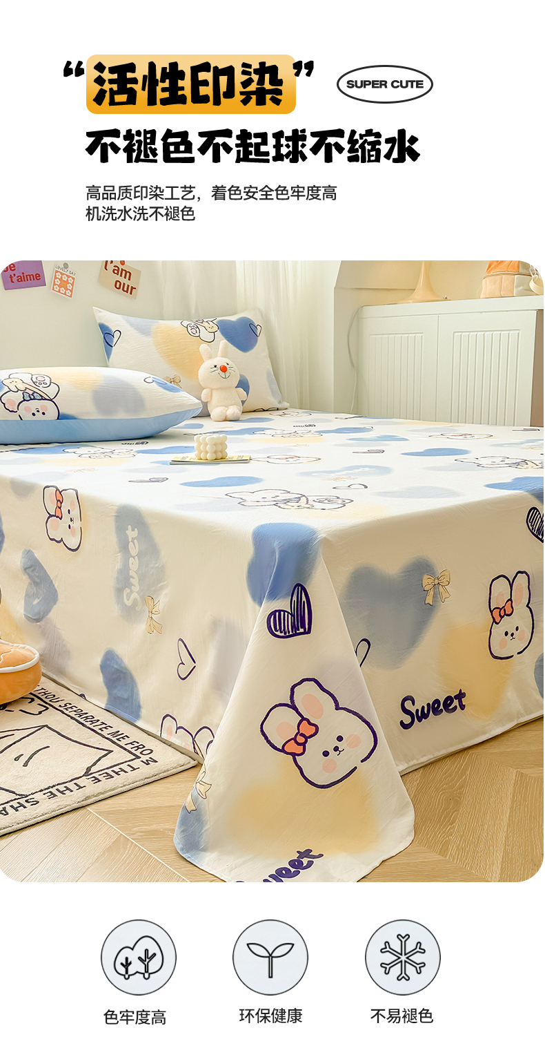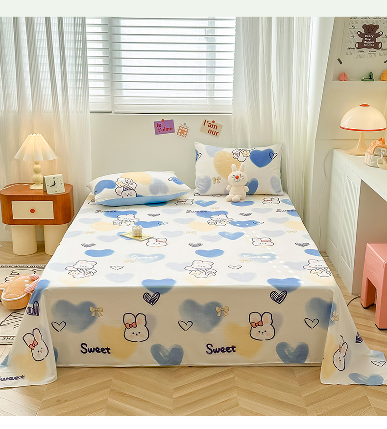 • 91家纺网 家纺一手货源 找家纺 古吉梦 2024新款水洗棉小清新印花床单 水洗棉-爱心熊