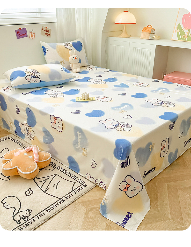 古吉梦 2024新款水洗棉小清新印花床单 水洗棉-爱心熊