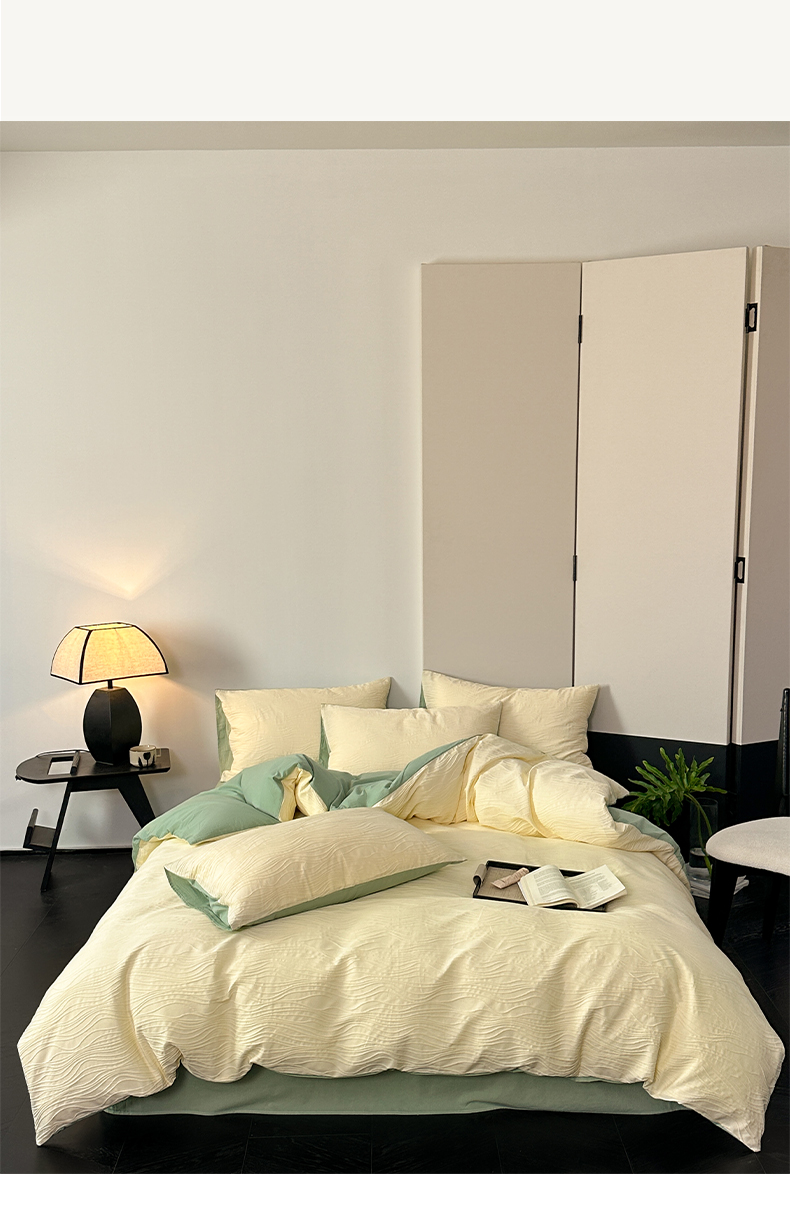 雅居纺家纺 2024新款全棉线条提花四件套-线条 线条-黄绿