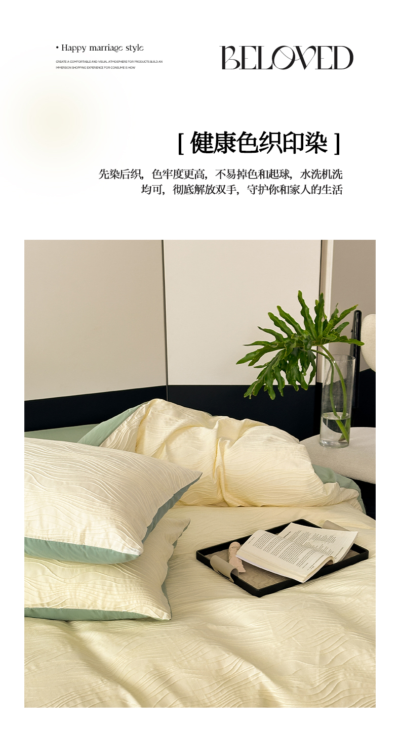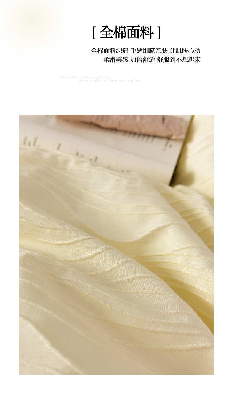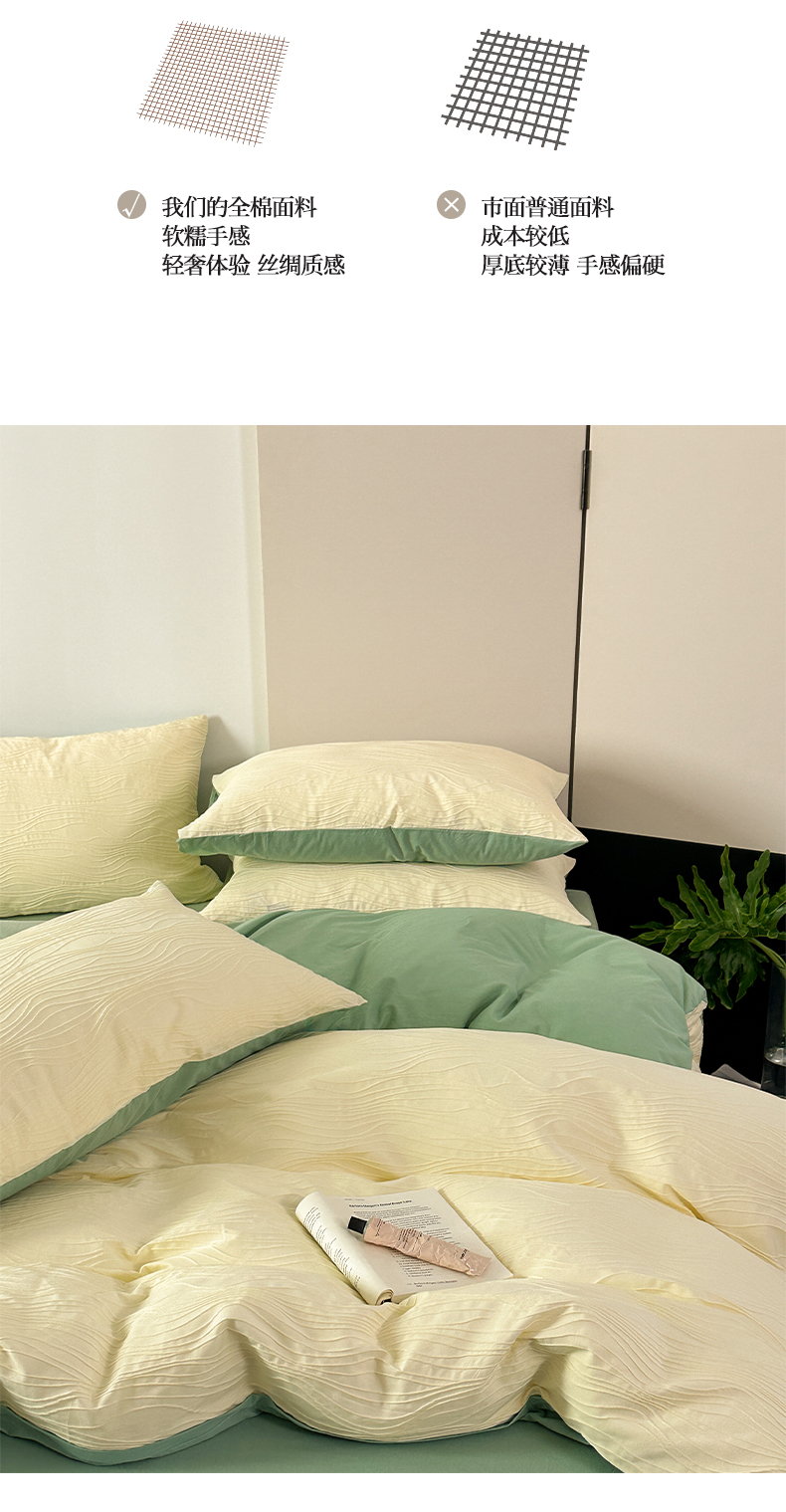 商品名称:雅居纺家纺 2024新款全棉线条提花四件套-线条 线条-黄绿