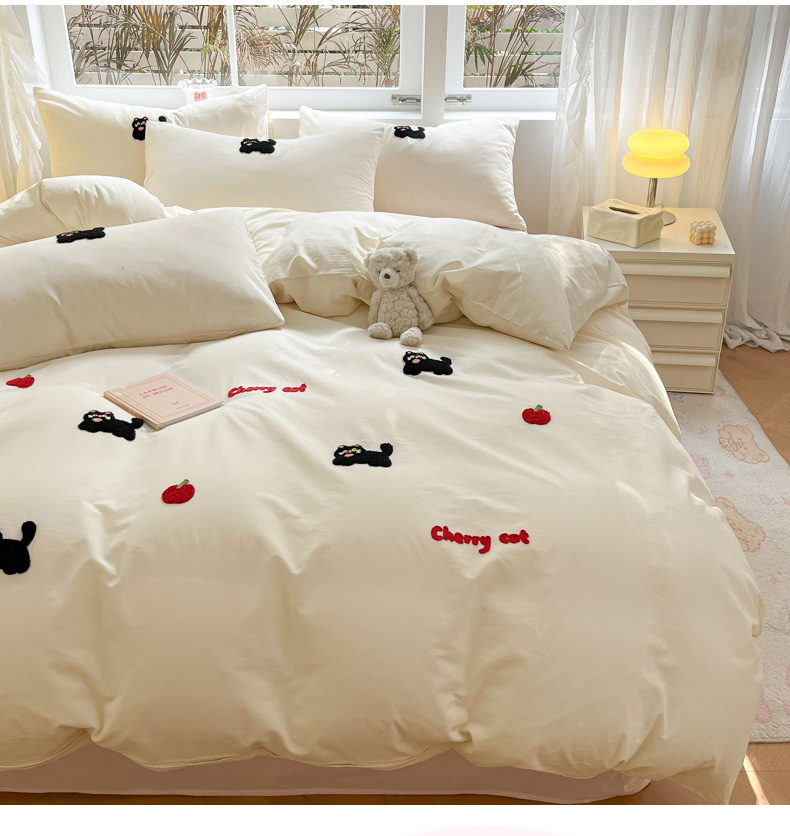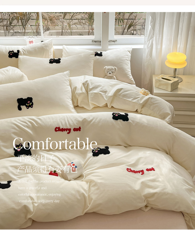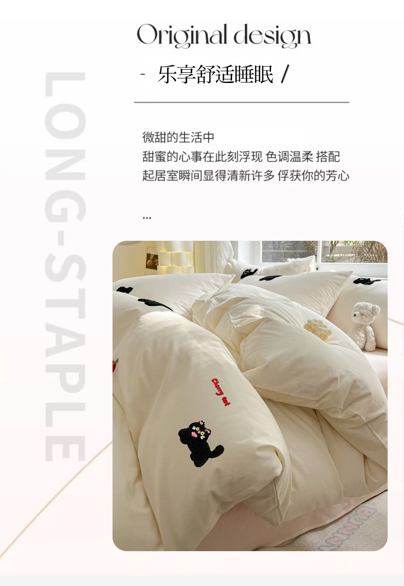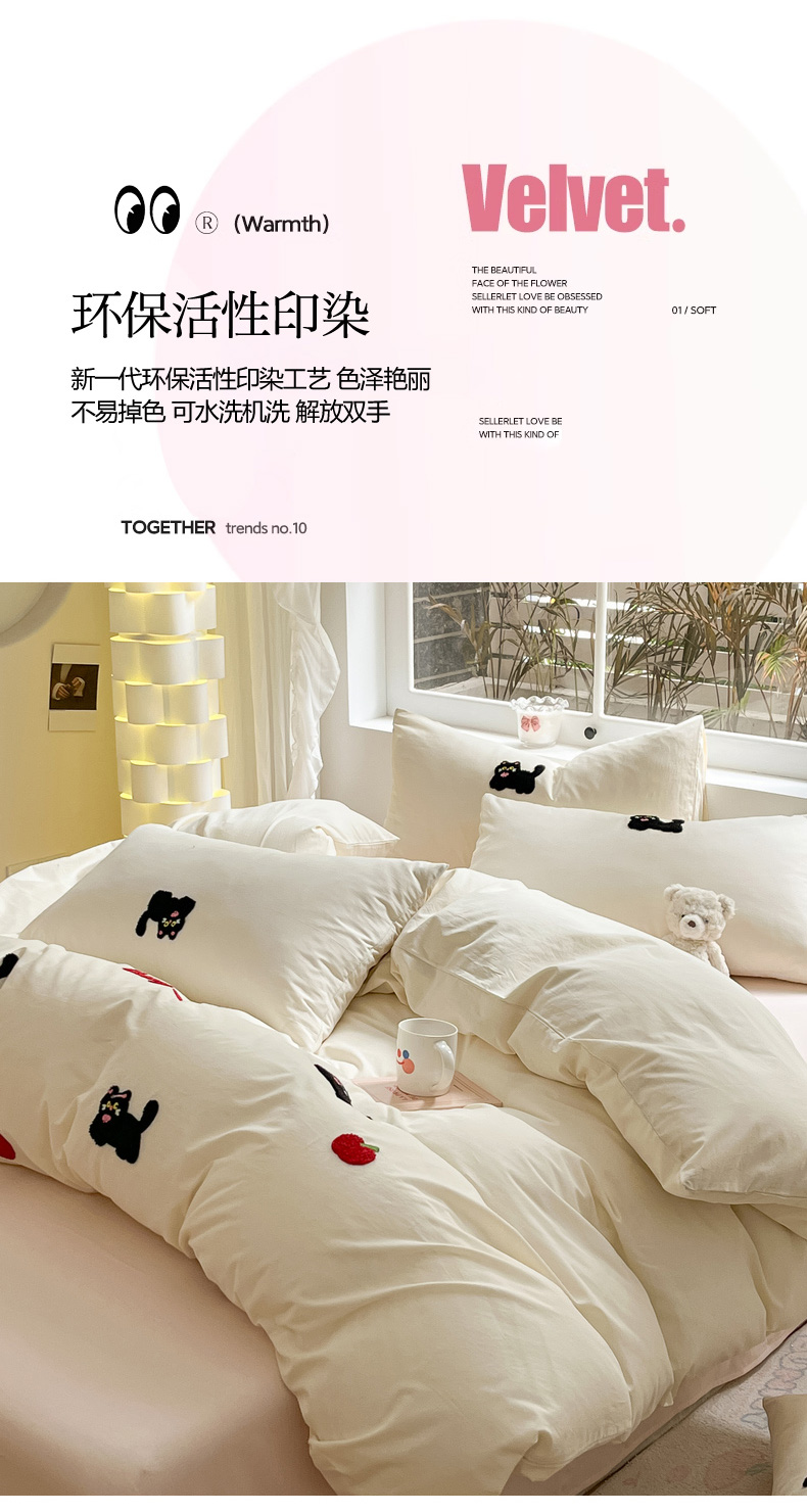(总)寐居家纺 2025新款贴布绣高克重牛奶绒四件套,安吉拉喵,查理狗,粉糯kitty,皮皮布布