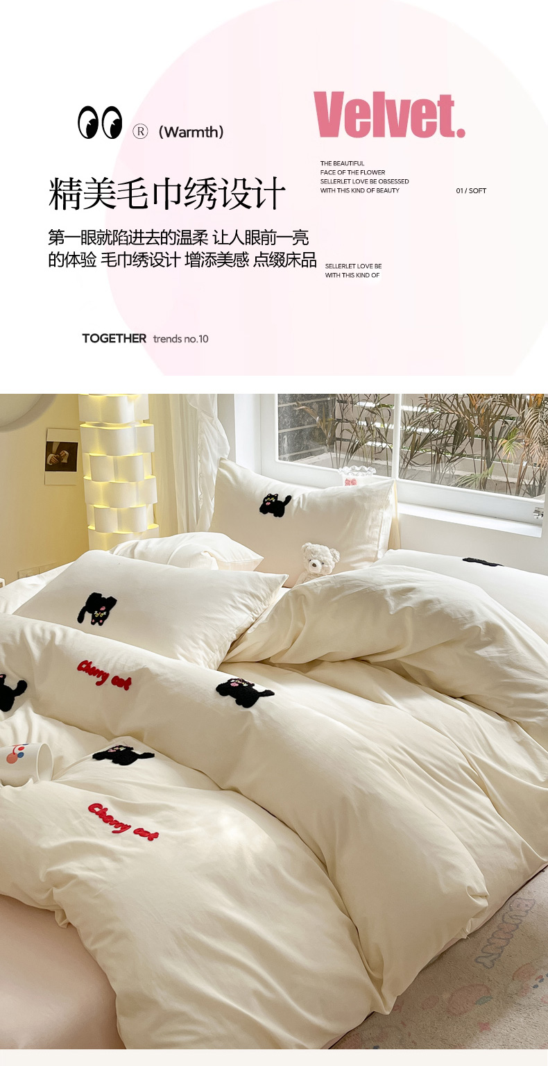 (总)寐居家纺 2025新款毛球毛巾绣牛奶绒四件套,毛球球·巴克汪仔,毛球球·豆蔻女孩,毛球球·奶黄拉布,毛球球·心动KT喵,组合图仅供展示不可下单