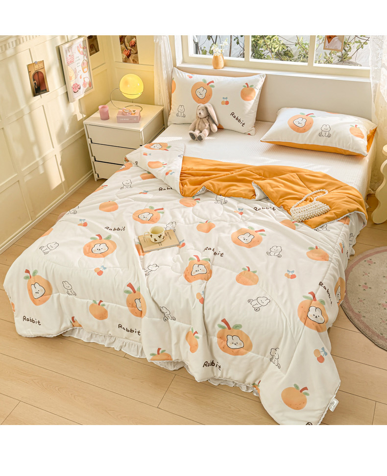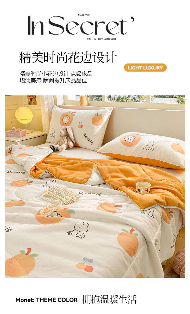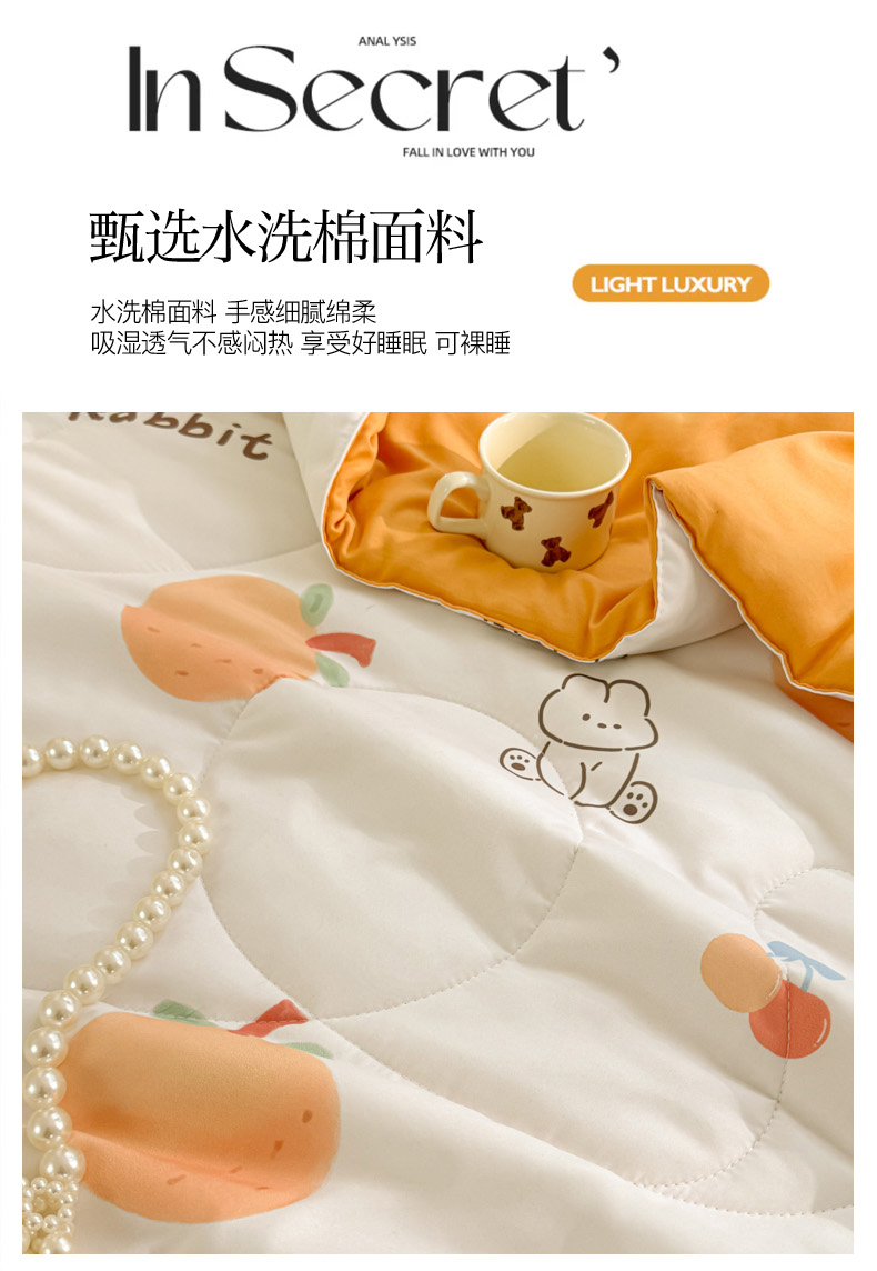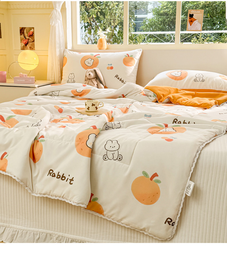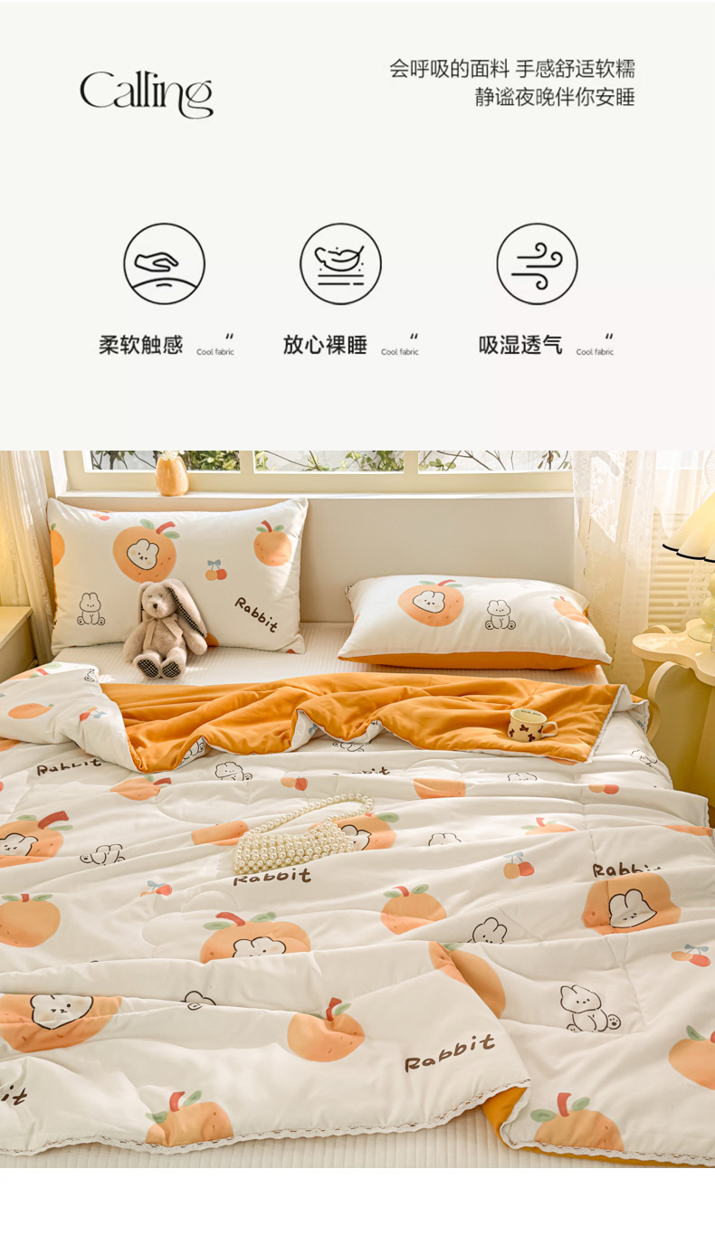 商品名称:寐居家纺 2024新款水洗棉小花边夏被 甜橘兔