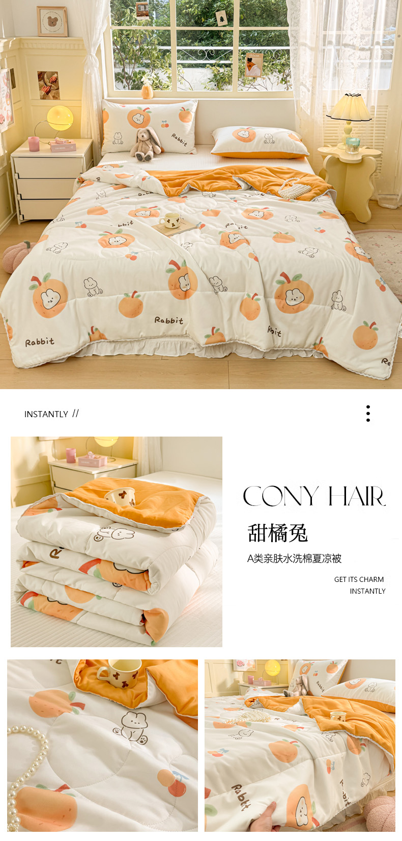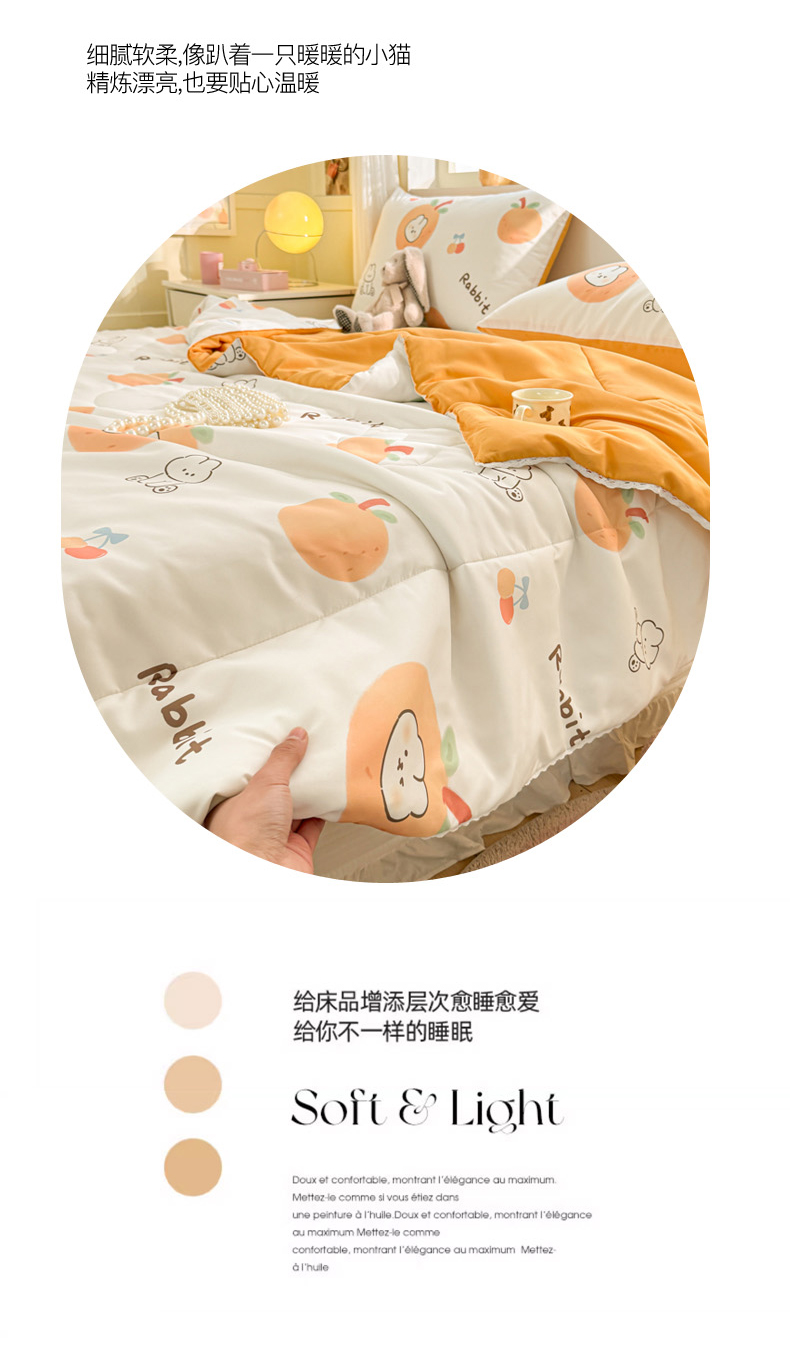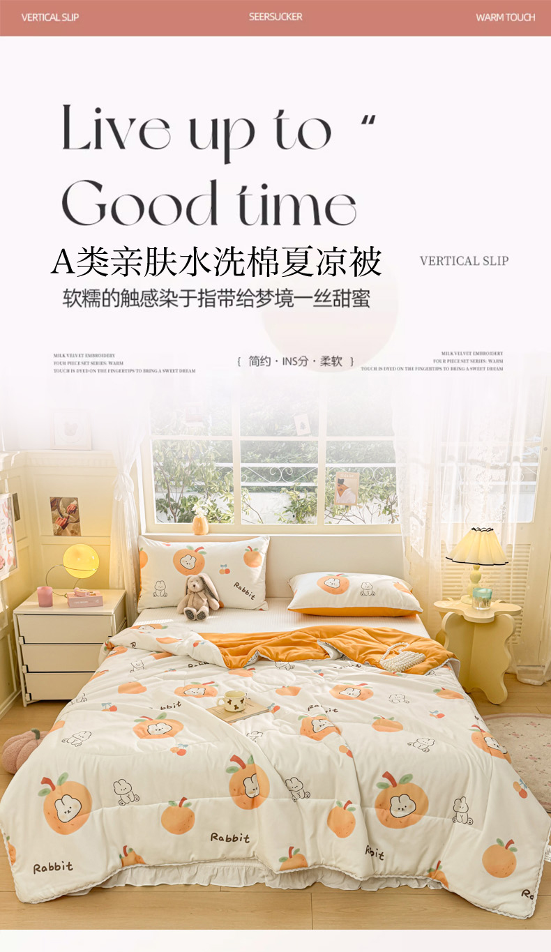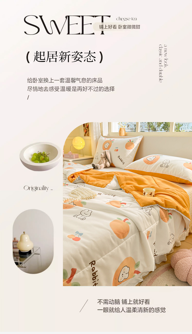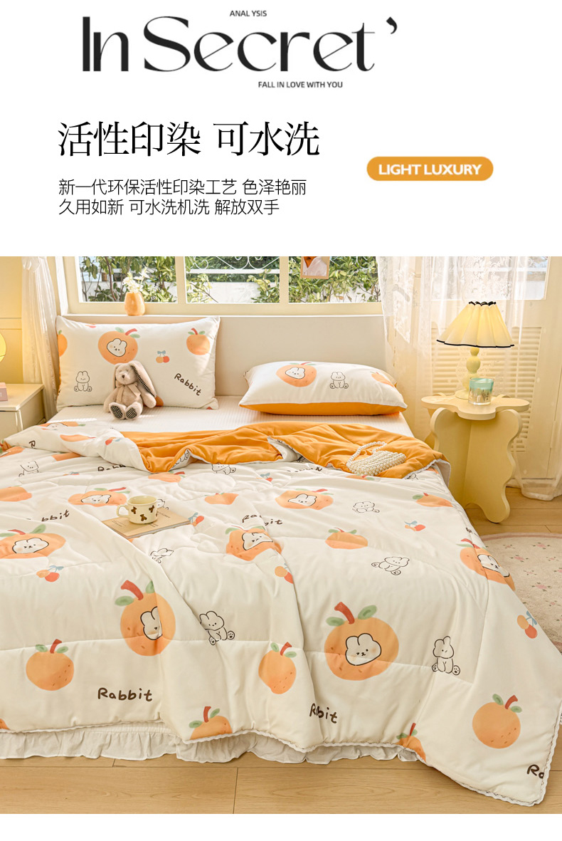 商品名称:寐居家纺 2024新款水洗棉小花边夏被 甜橘兔