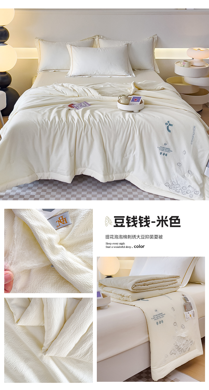 商品名称:优姿家纺 2024新款提花泡泡棉刺绣大豆抗菌夏被 米色