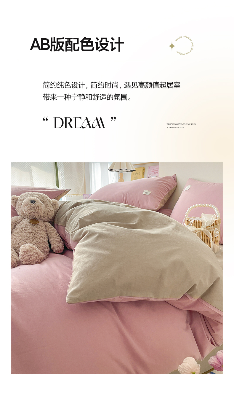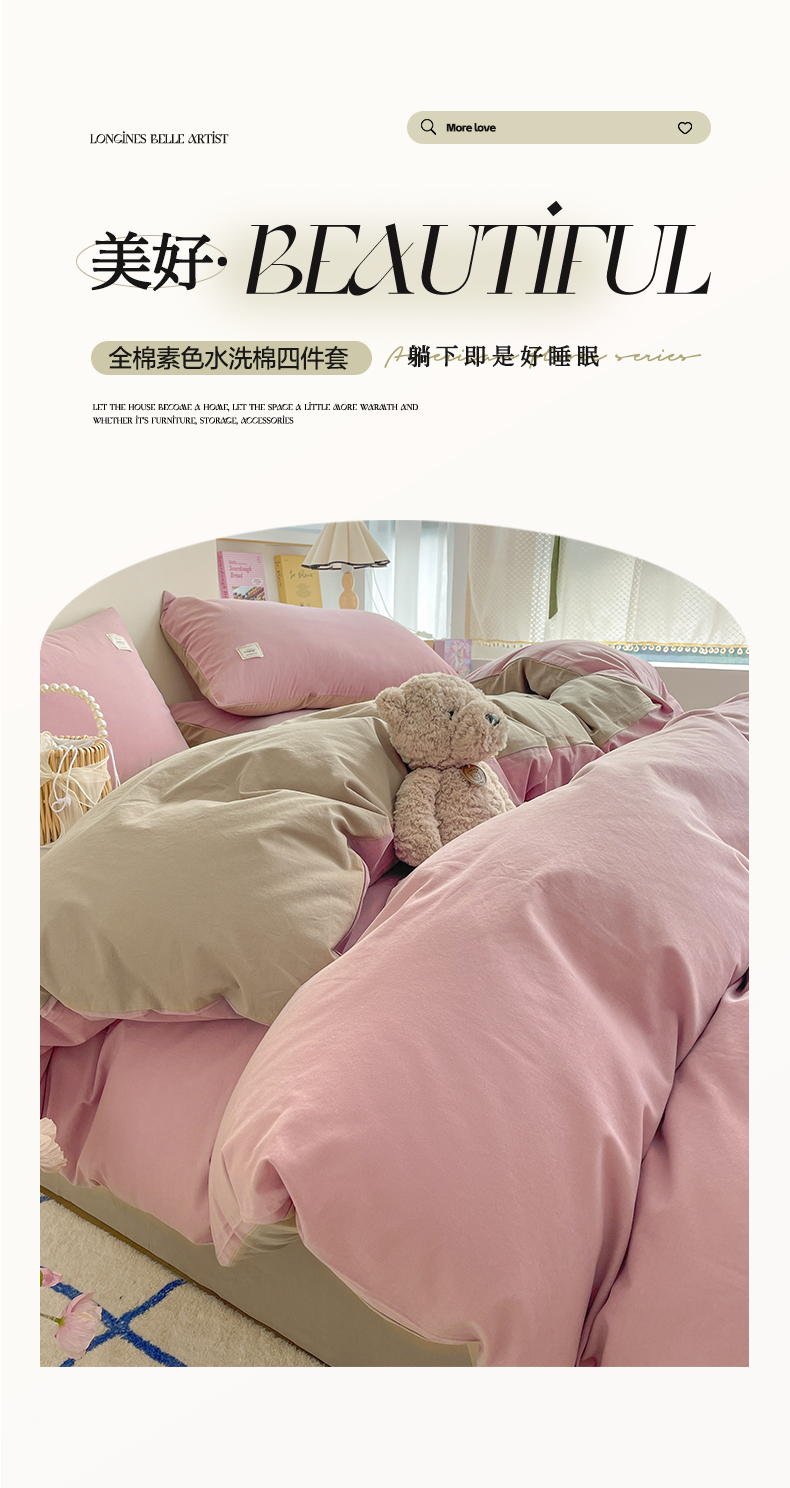 (总)雅居纺家纺 2022新款全棉水洗棉四件套,Ins粉蓝,ins浅蓝,白+墨子绿,白+绅士红,低调灰,低调灰绅士灰,豆绿+米黄,复古绿卡其,果绿绅士黄,焦糖咖啡,咖啡+卡其,米黄,米黄+明黄,米黄咖啡,米黄水绿,墨子绿,墨子绿卡其,墨子绿绅士黄,牛仔蓝低调灰,浅蓝深灰,清雅蓝绅士灰,绅士红卡其,绅士黄卡其,绅士灰,新蓝米黄