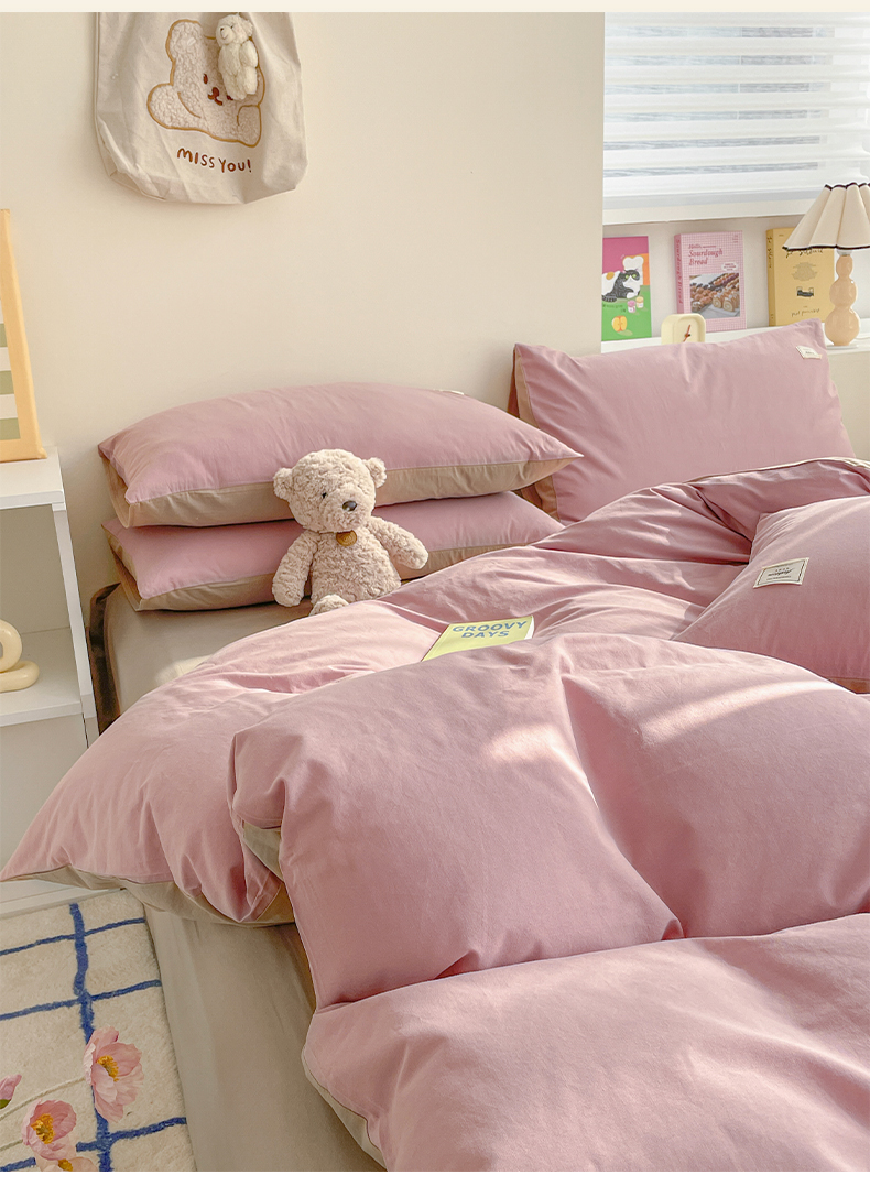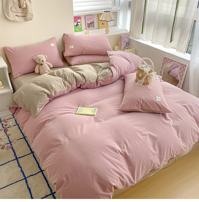 雅居纺家纺 2024新款全棉素色水洗棉四件套 绅士红卡其
