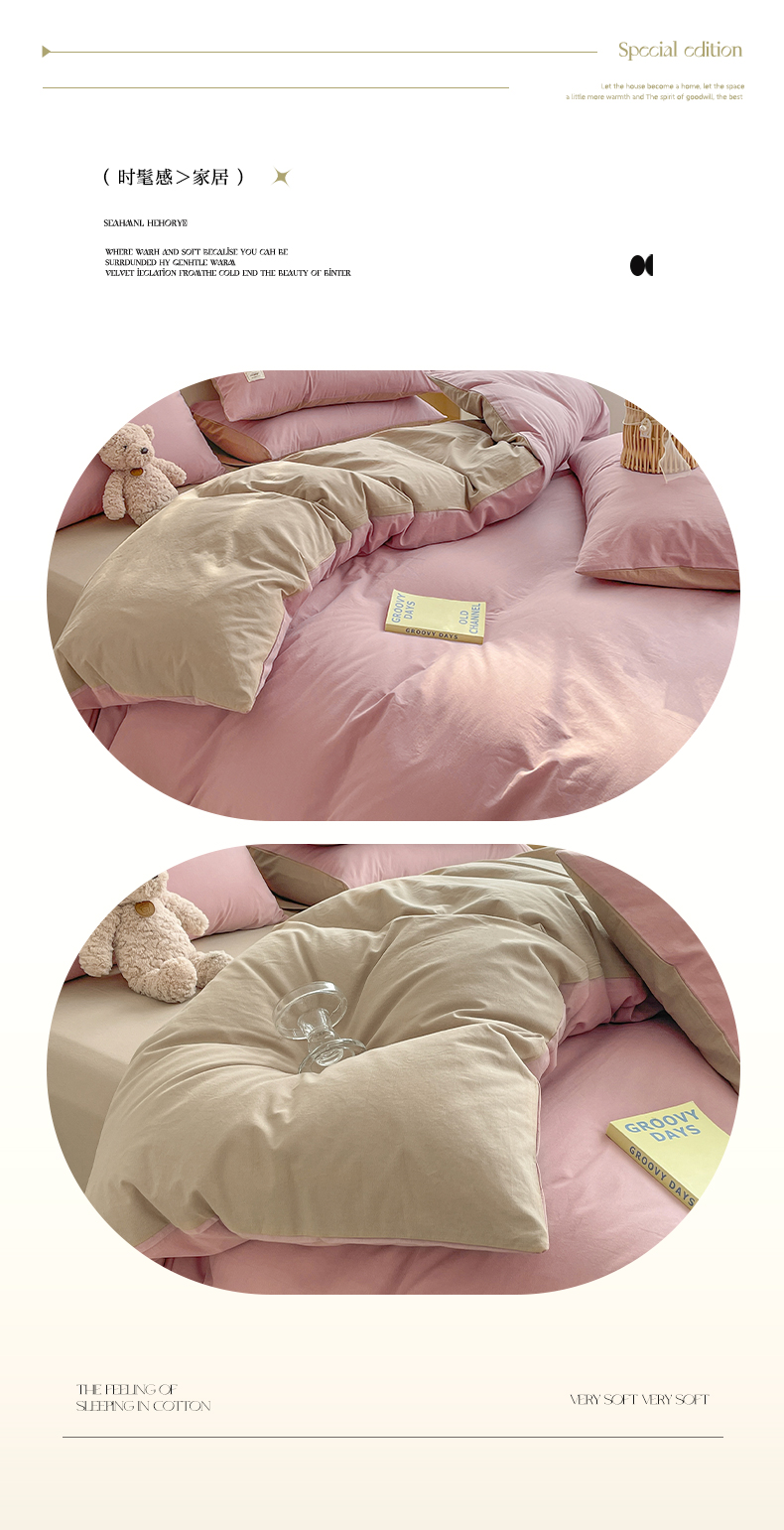 (总)雅居纺家纺 2025新款简约兔绒球球保暖舒适四件套-波点,波点-白咖,波点-粉黄,波点-咖,波点-蓝黄