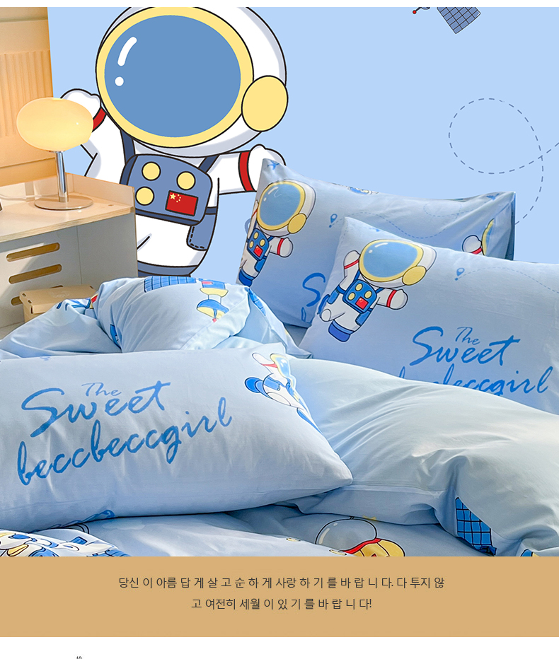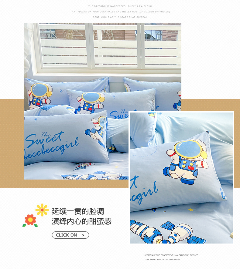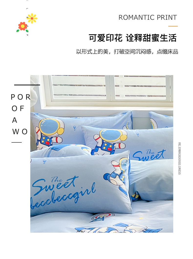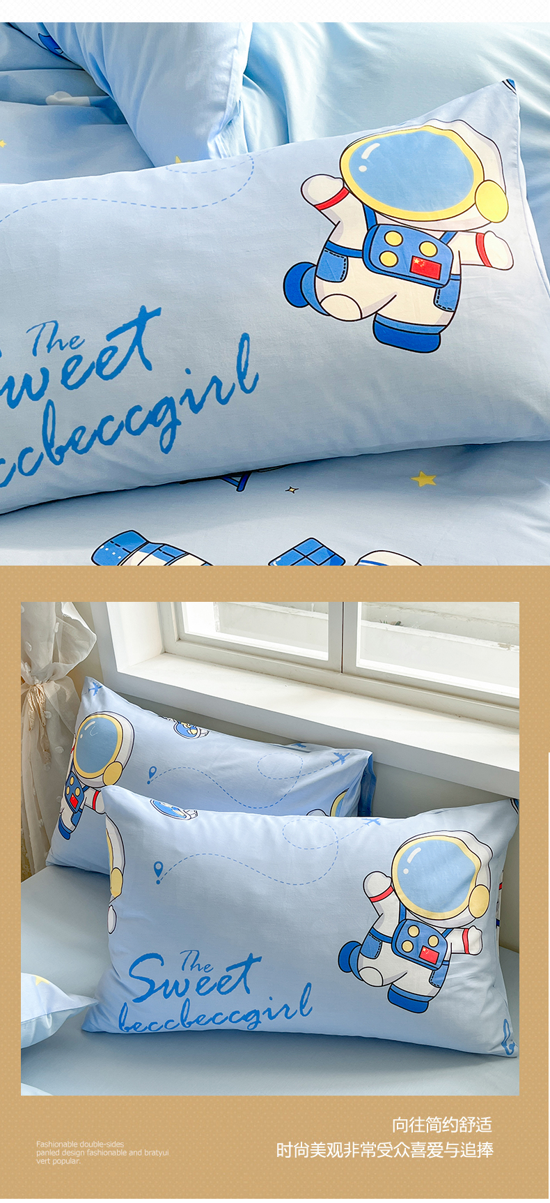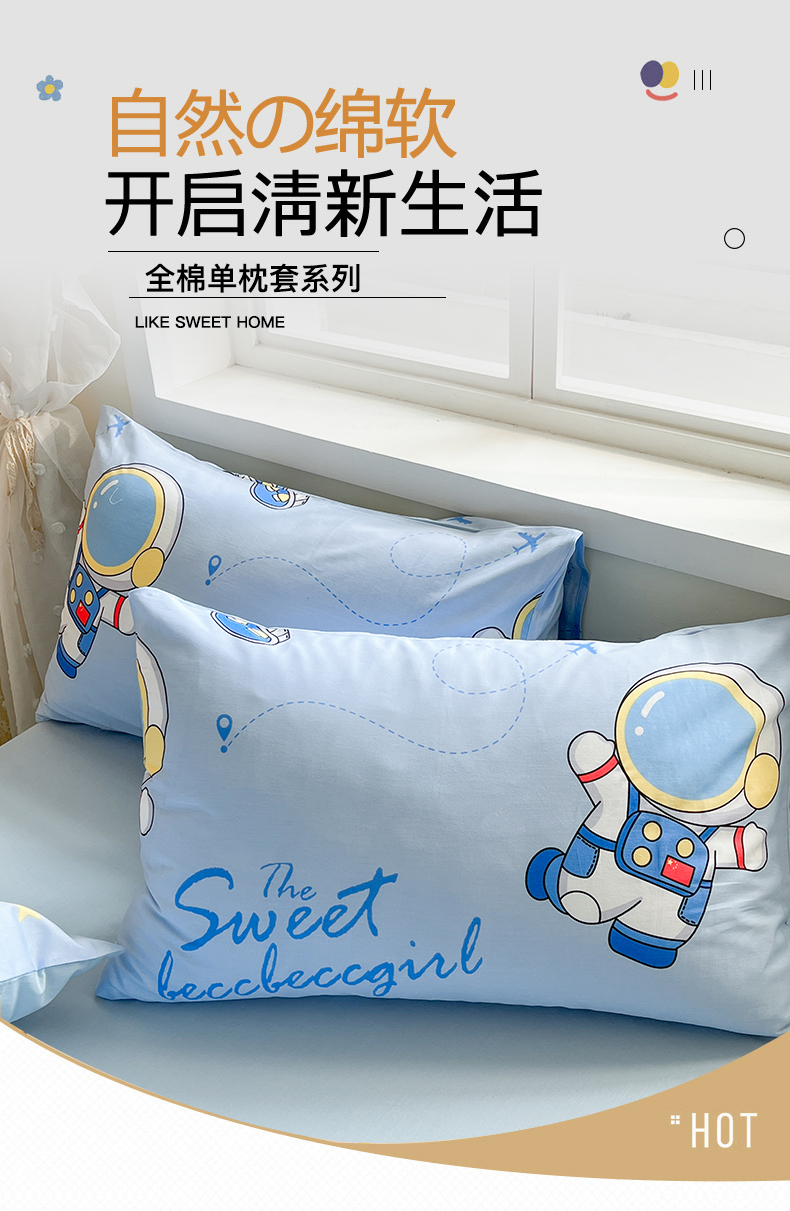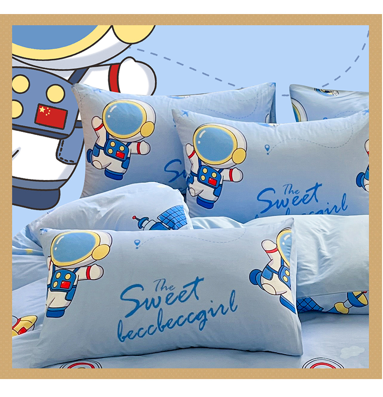 金鑫汇家纺 2024新款全棉纯棉卡通印花四件套单品系列-单枕套 宇宙奥秘