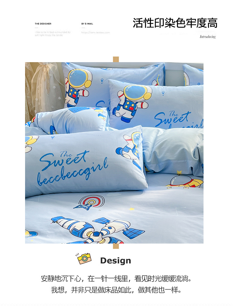 商品名称:金鑫汇家纺 2024新款全棉纯棉卡通印花四件套单品系列-单枕套 宇宙奥秘