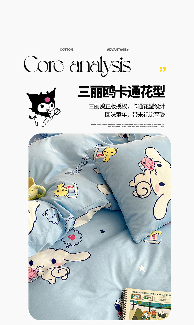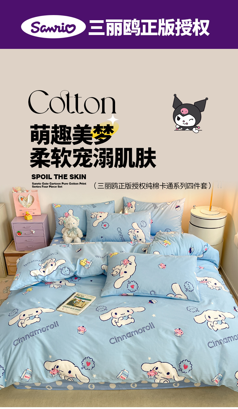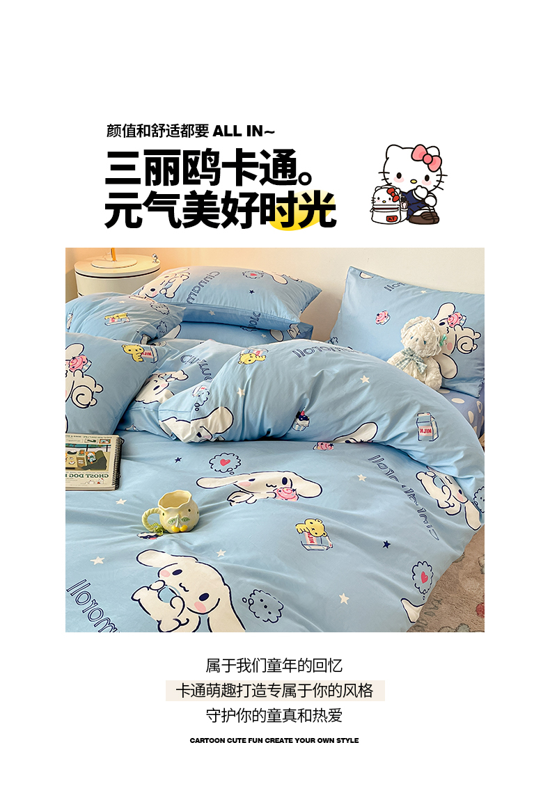 当前位置: 91家纺网 > 商品网购 > 床品套件 > 四件套 > 全棉普通四件套 > 桃子家居 2024新款三丽鸥正版授权全棉卡通系列四件套 棉三丽鸥-牛奶玉桂狗