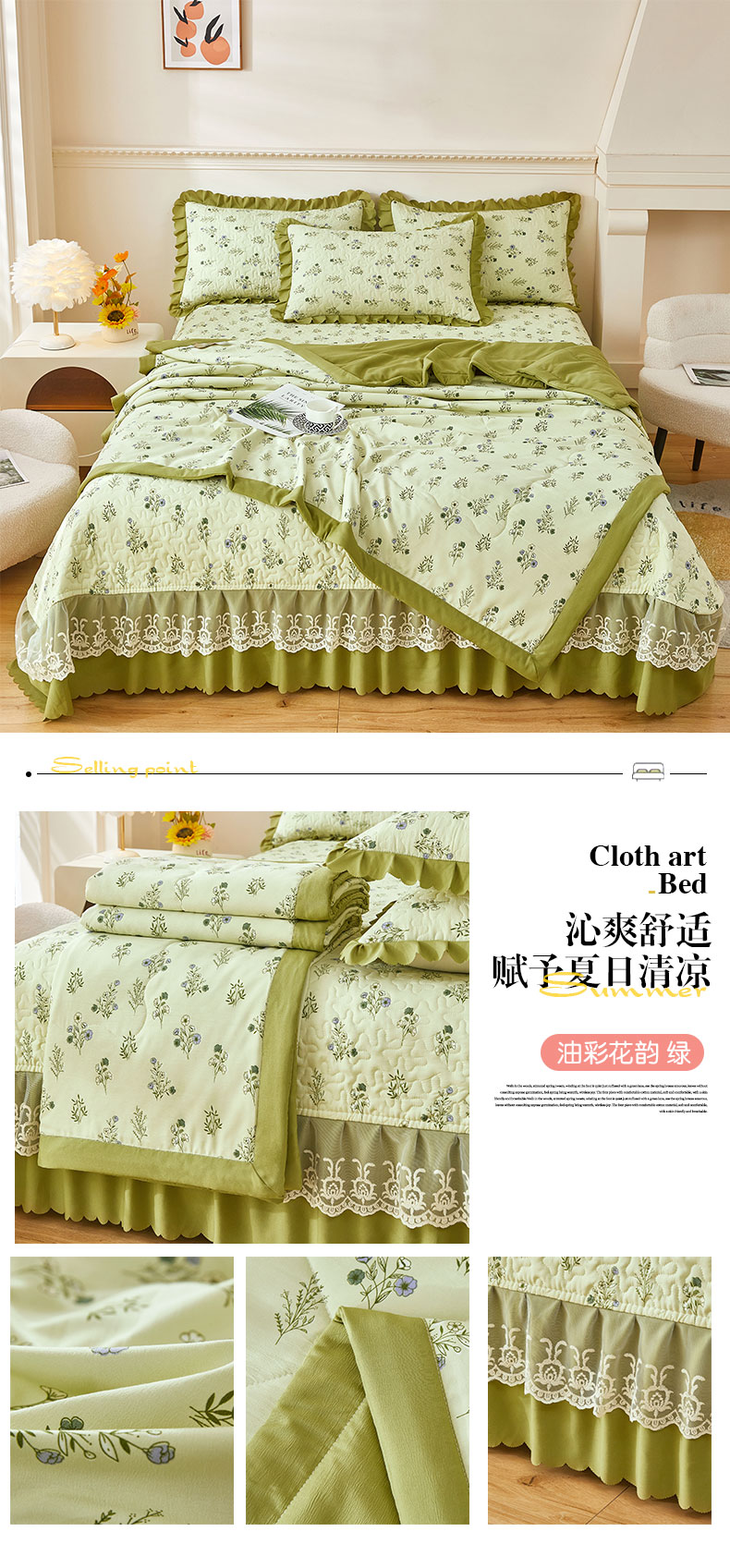 商品名称:美之润家纺 2026新款床盖款夏被四件套 油彩花韵 绿