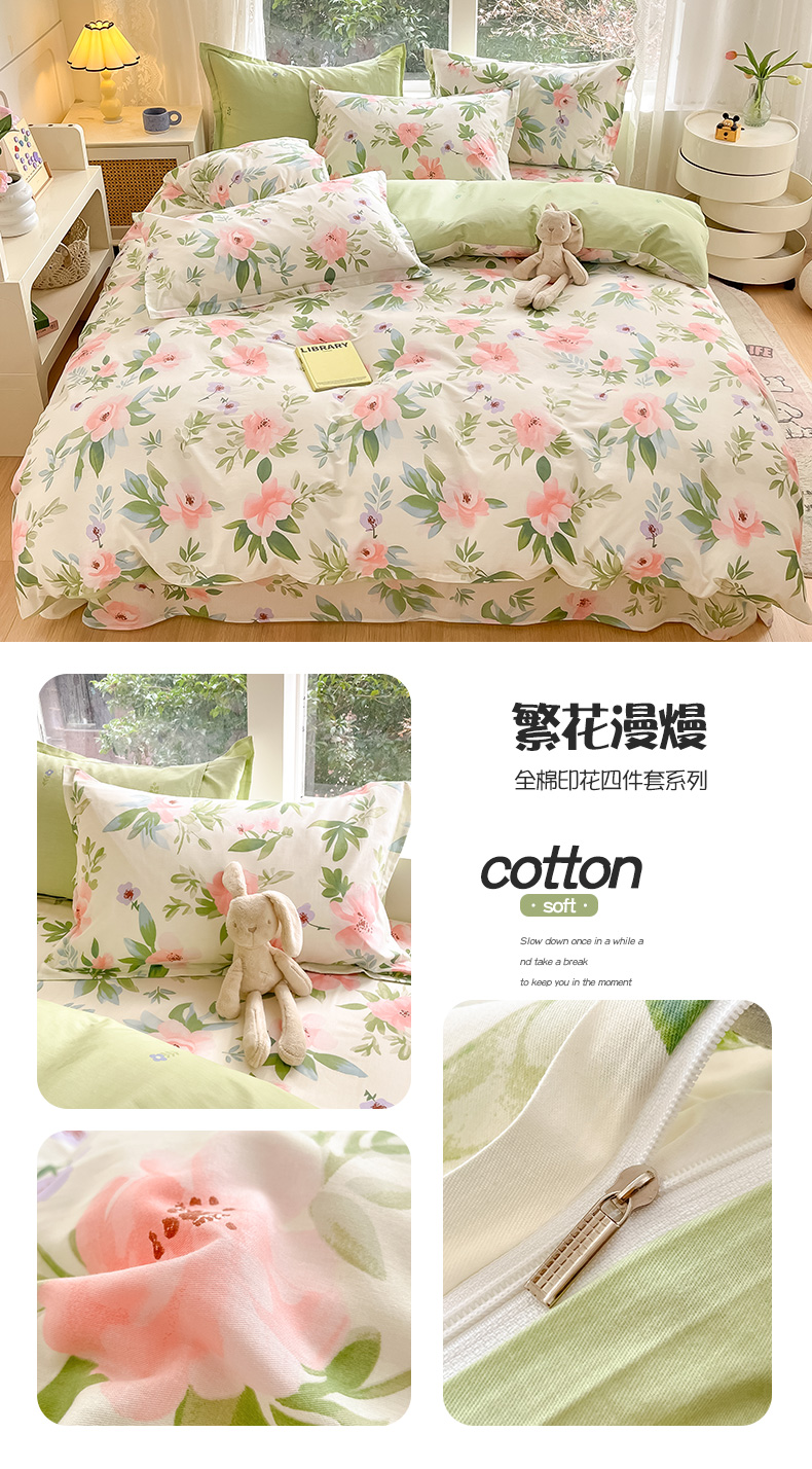 绵庭家纺 2024新款AB版全棉印花系列四件套 繁花漫熳
