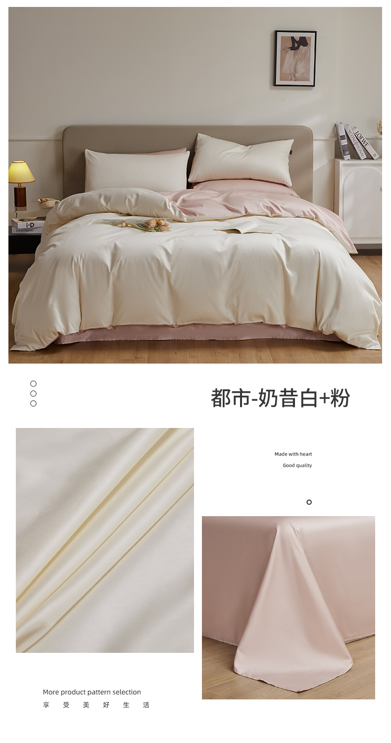 当前位置: 91家纺网 > 商品网购 > 床品套件 > 四件套 > 全棉普通四件套 > 慕色家纺 2024新款都市系列全棉纯色四件套 都市-奶昔白+粉-1
