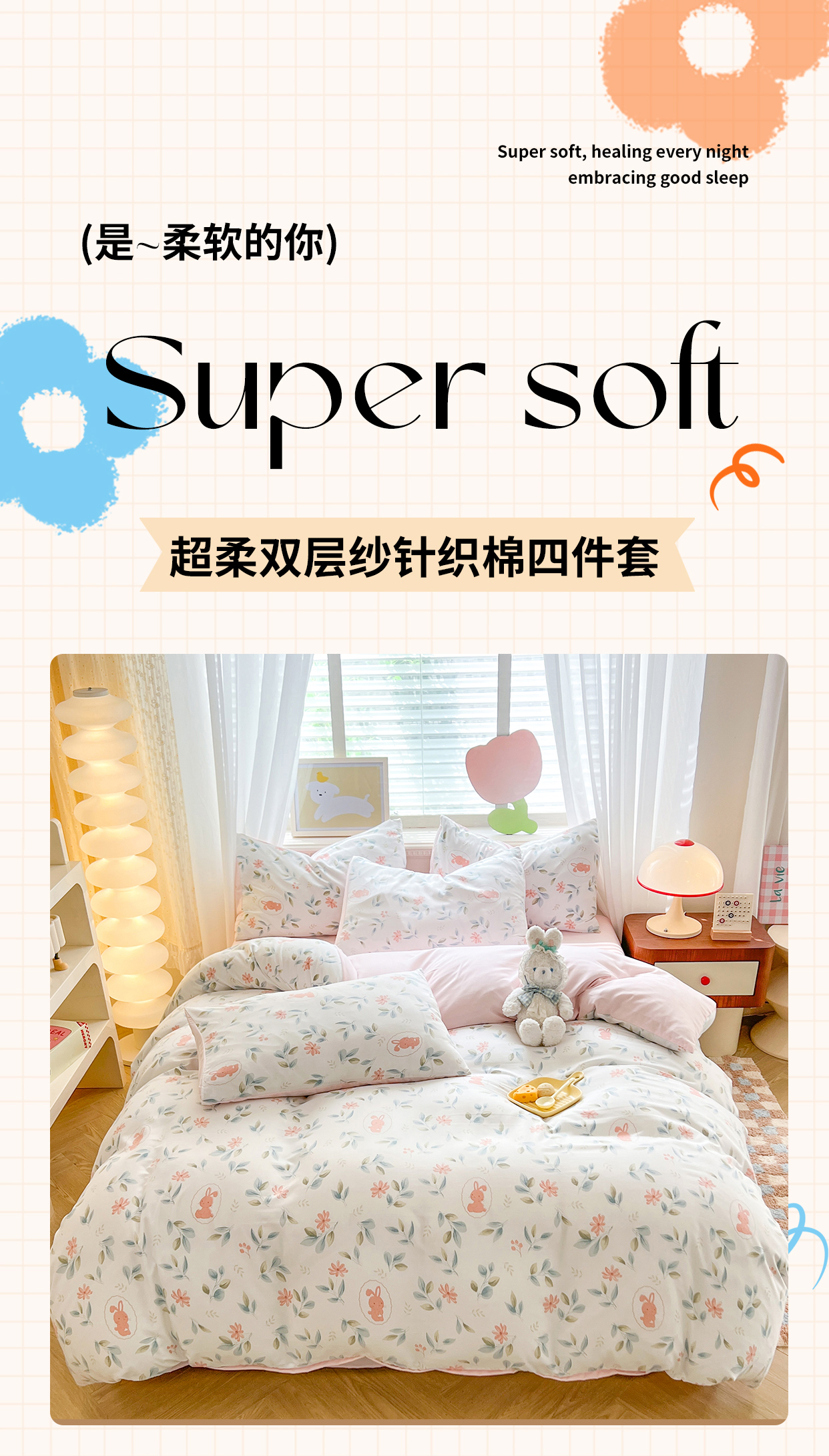 当前位置: 91家纺网 > 商品网购 > 床品套件 > 四件套 > 水洗棉四件套 > 妖妖家纺 2024新款超柔软糯水洗云朵棉印花四季款四件套 误入花园