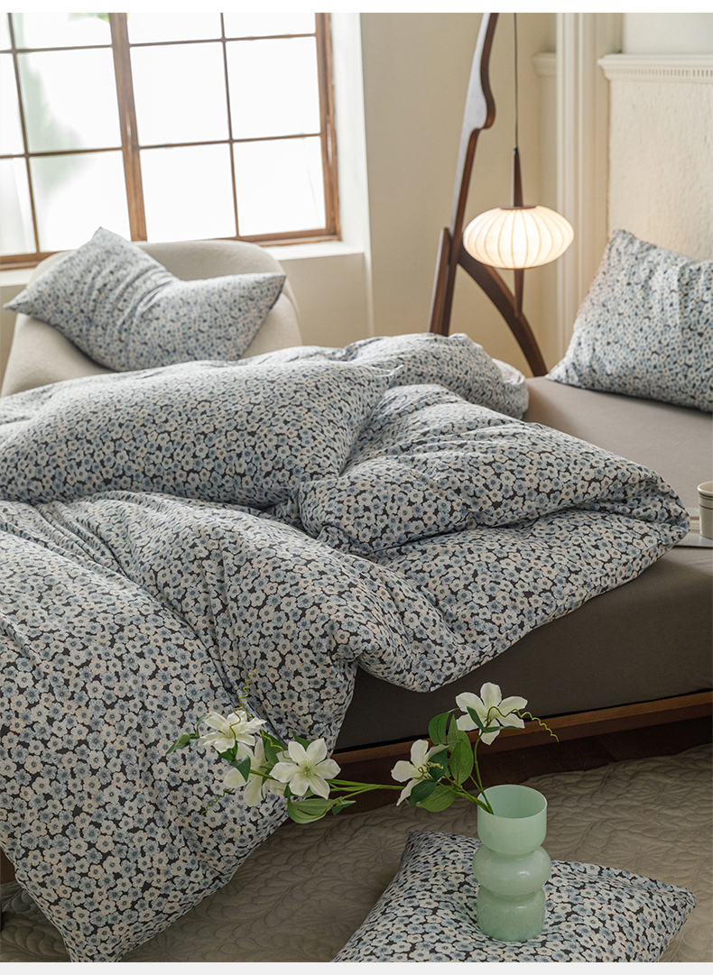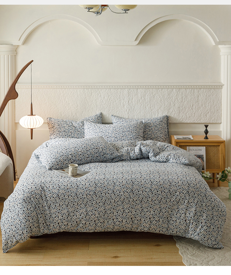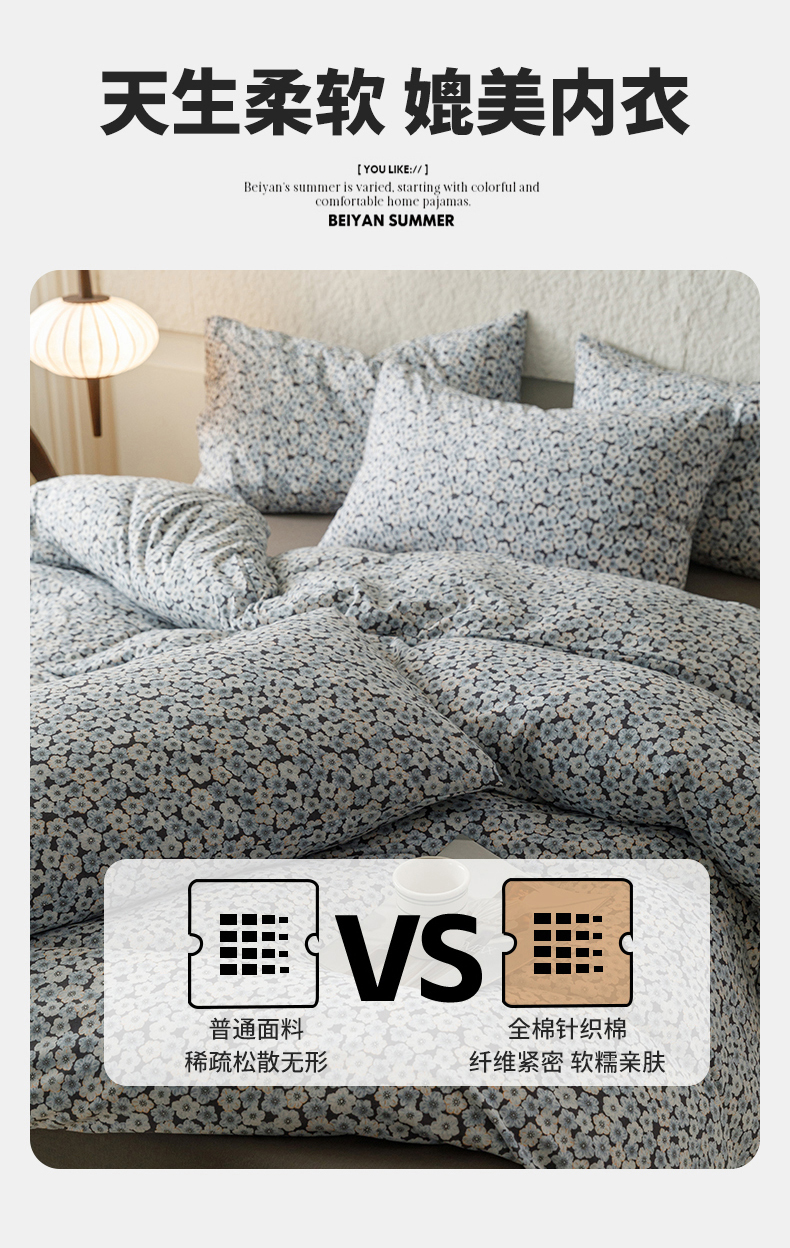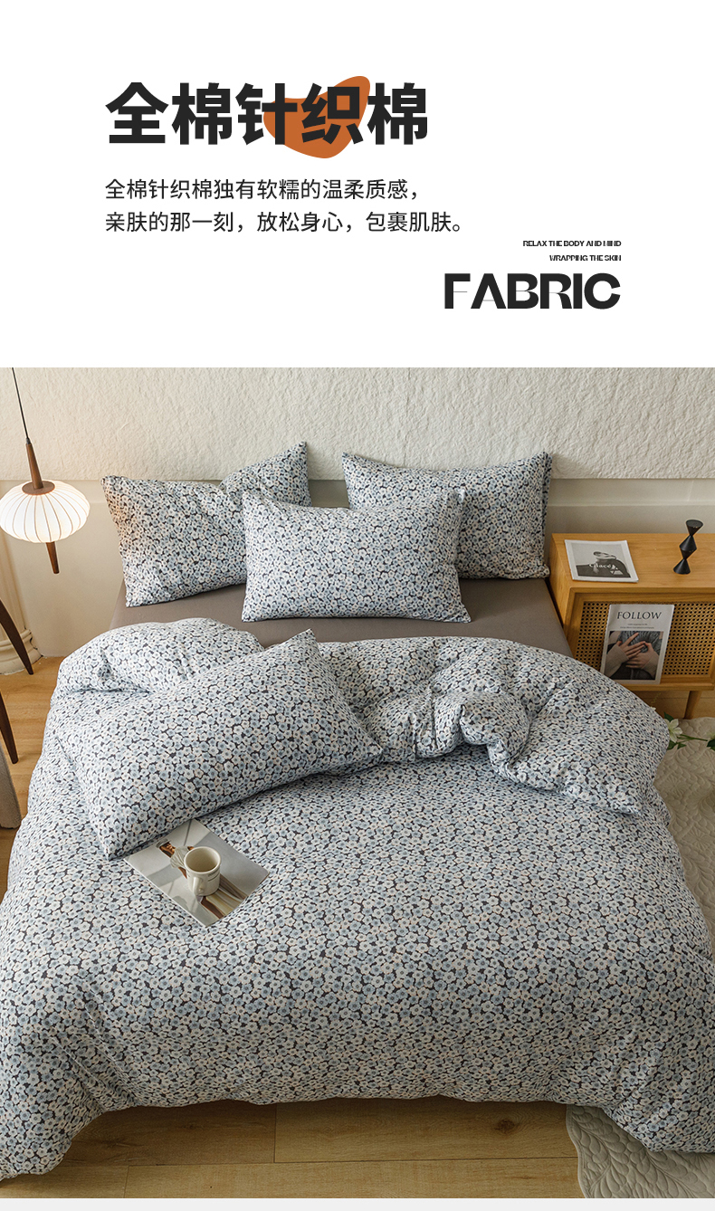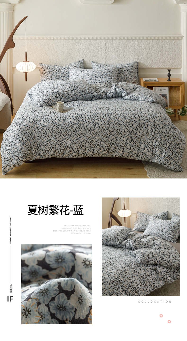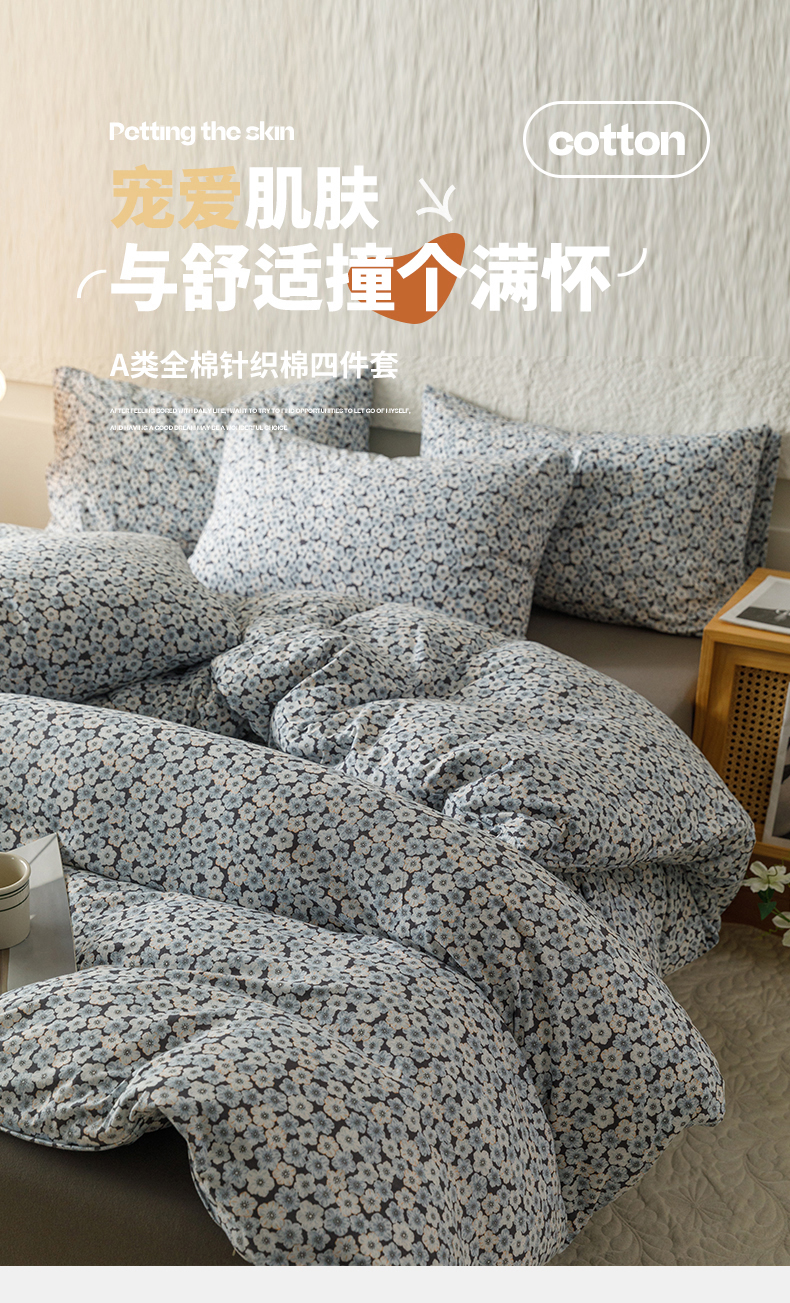 商品名称:瑞米家居 2024新款A类全棉针织棉四件套 夏树繁花-蓝