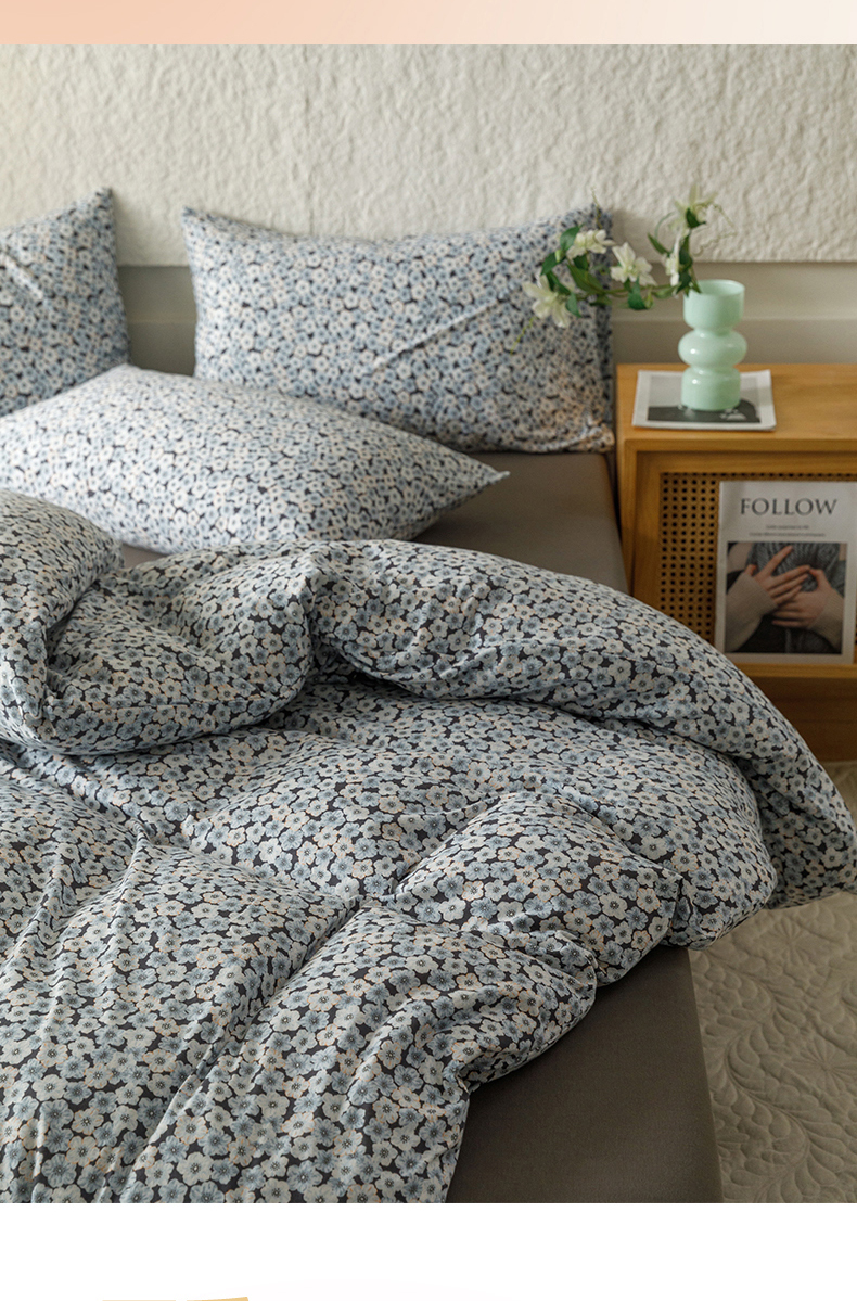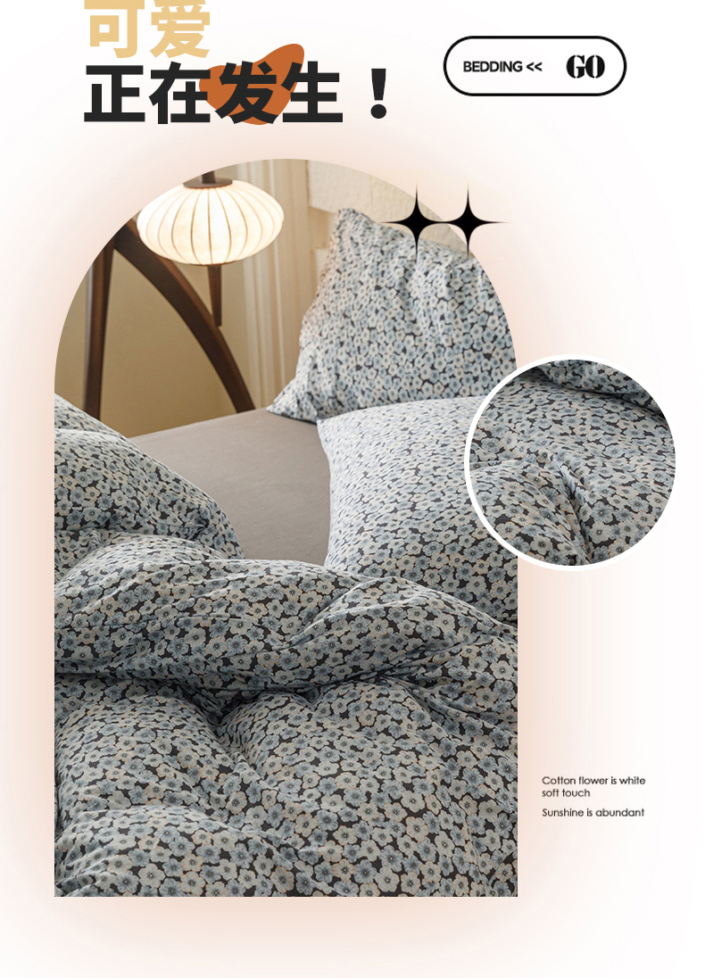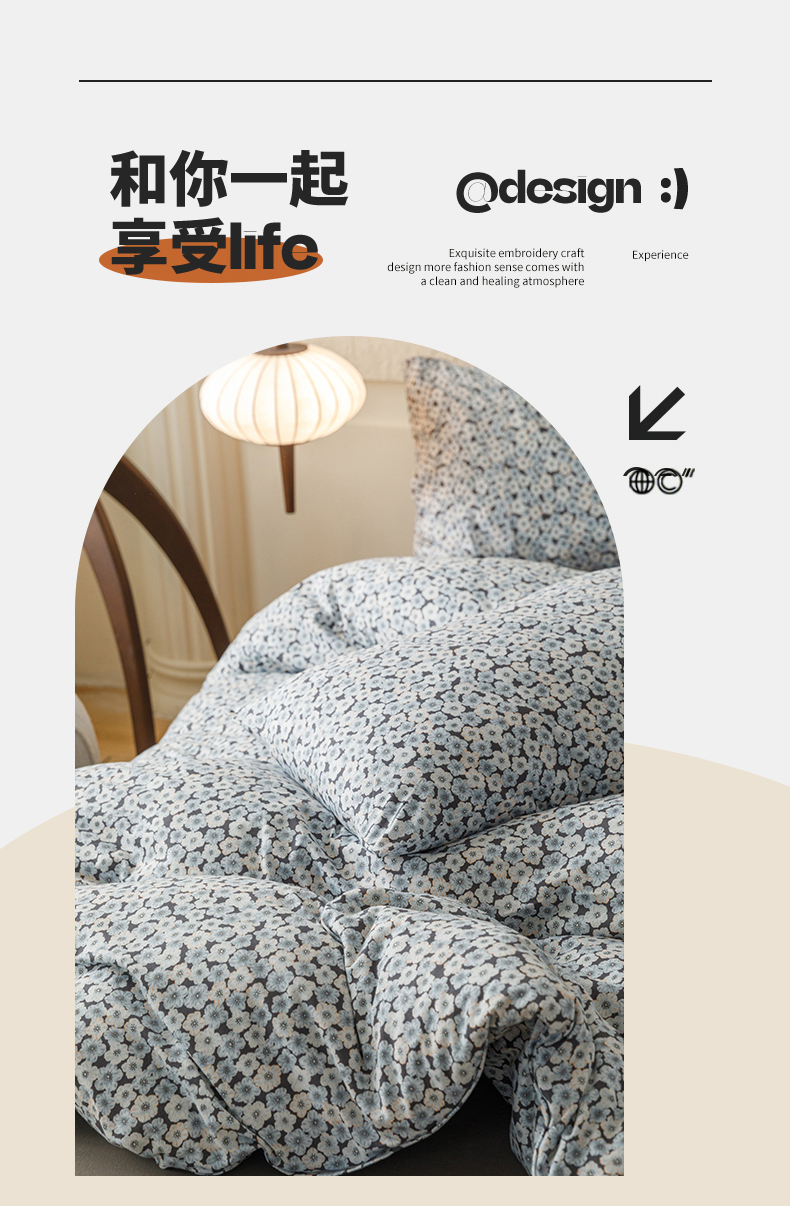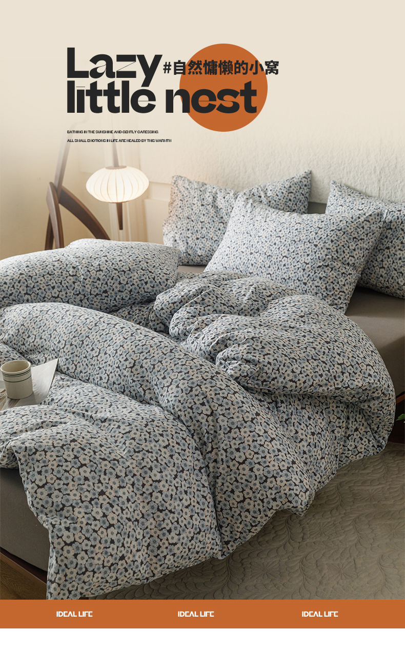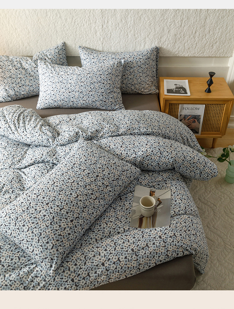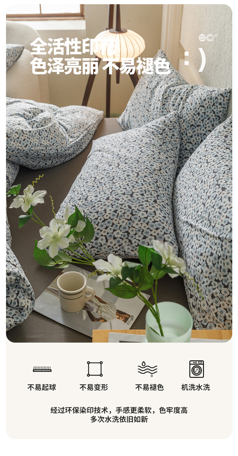 商品名称:瑞米家居 2024新款A类全棉针织棉四件套 夏树繁花-蓝