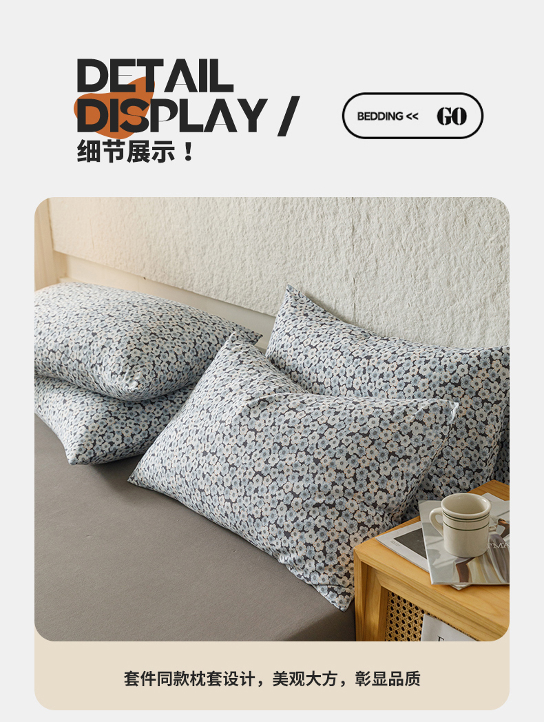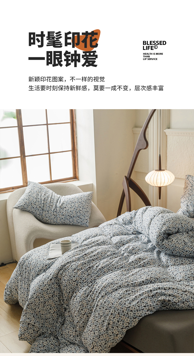 瑞米家居 2024新款A类全棉针织棉四件套 夏树繁花-蓝
