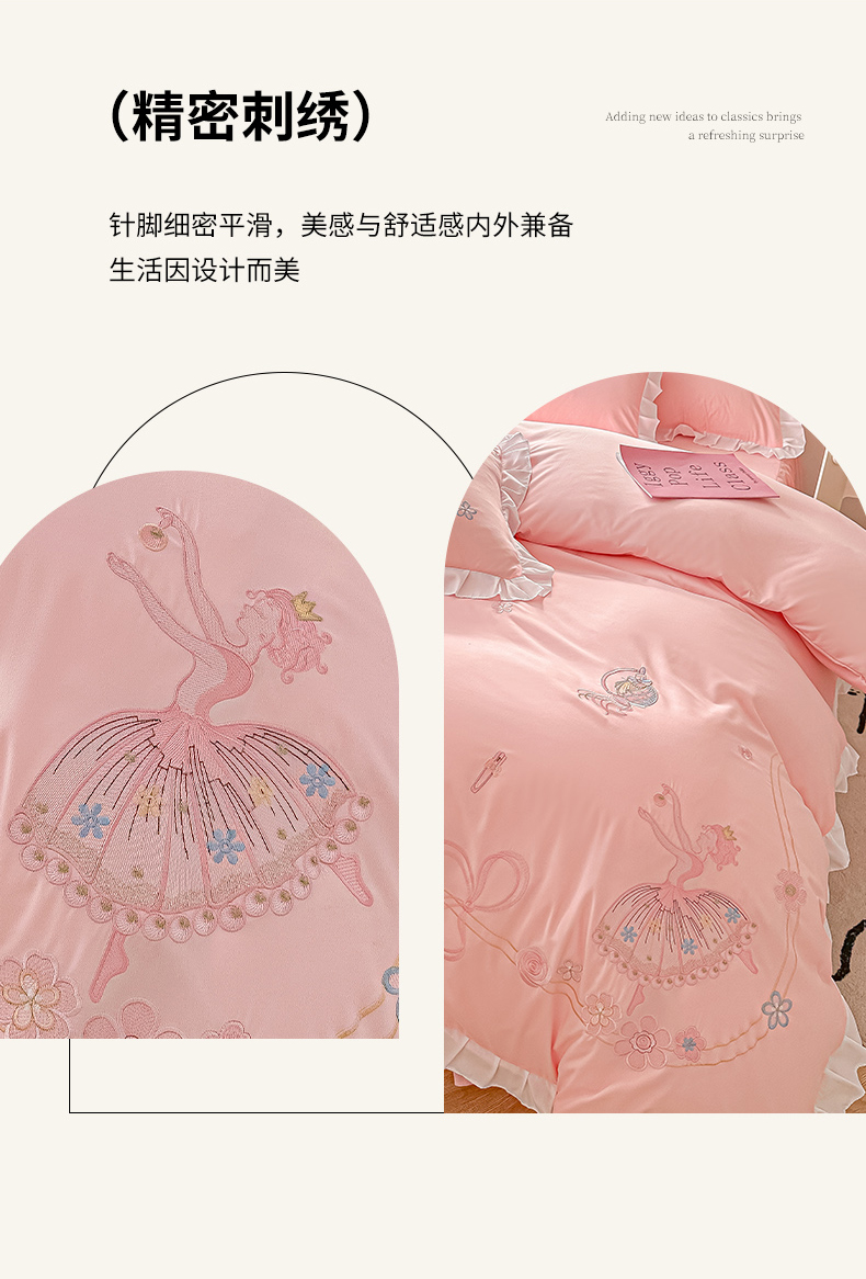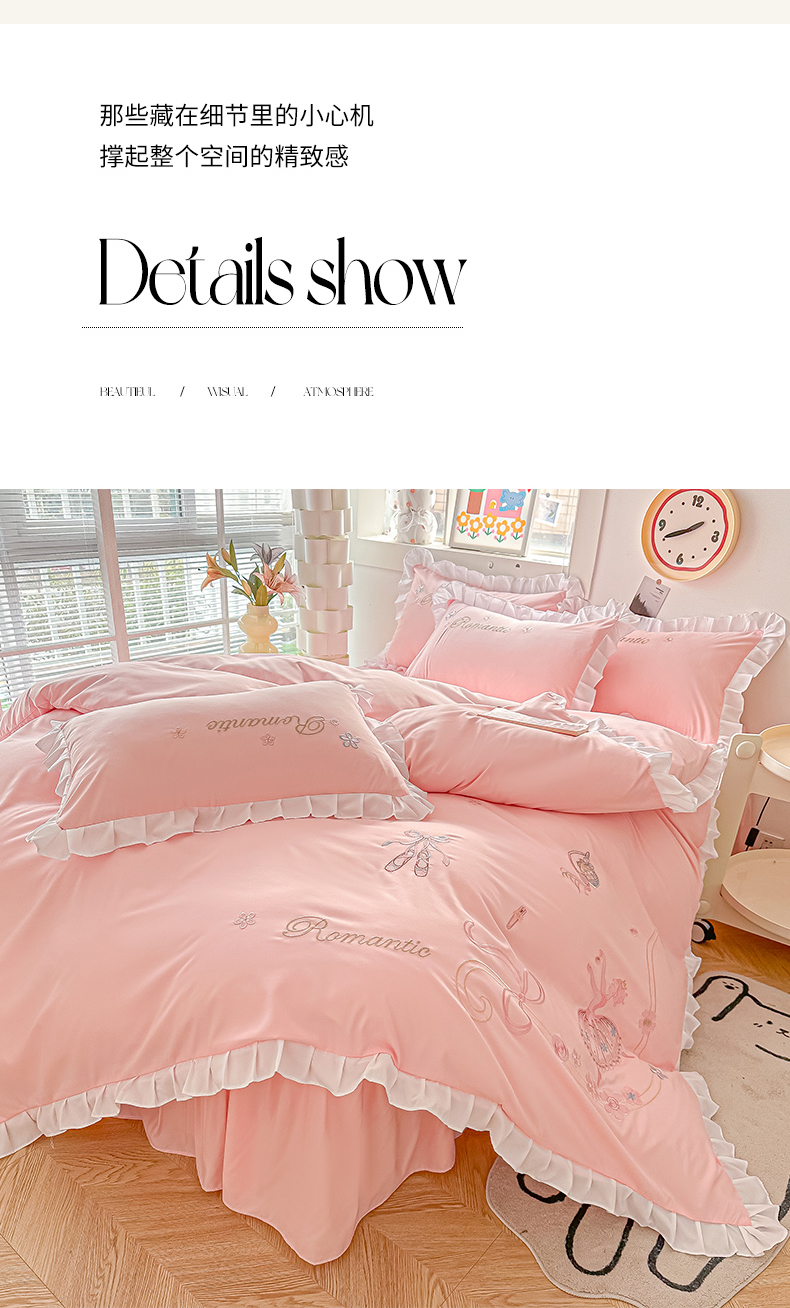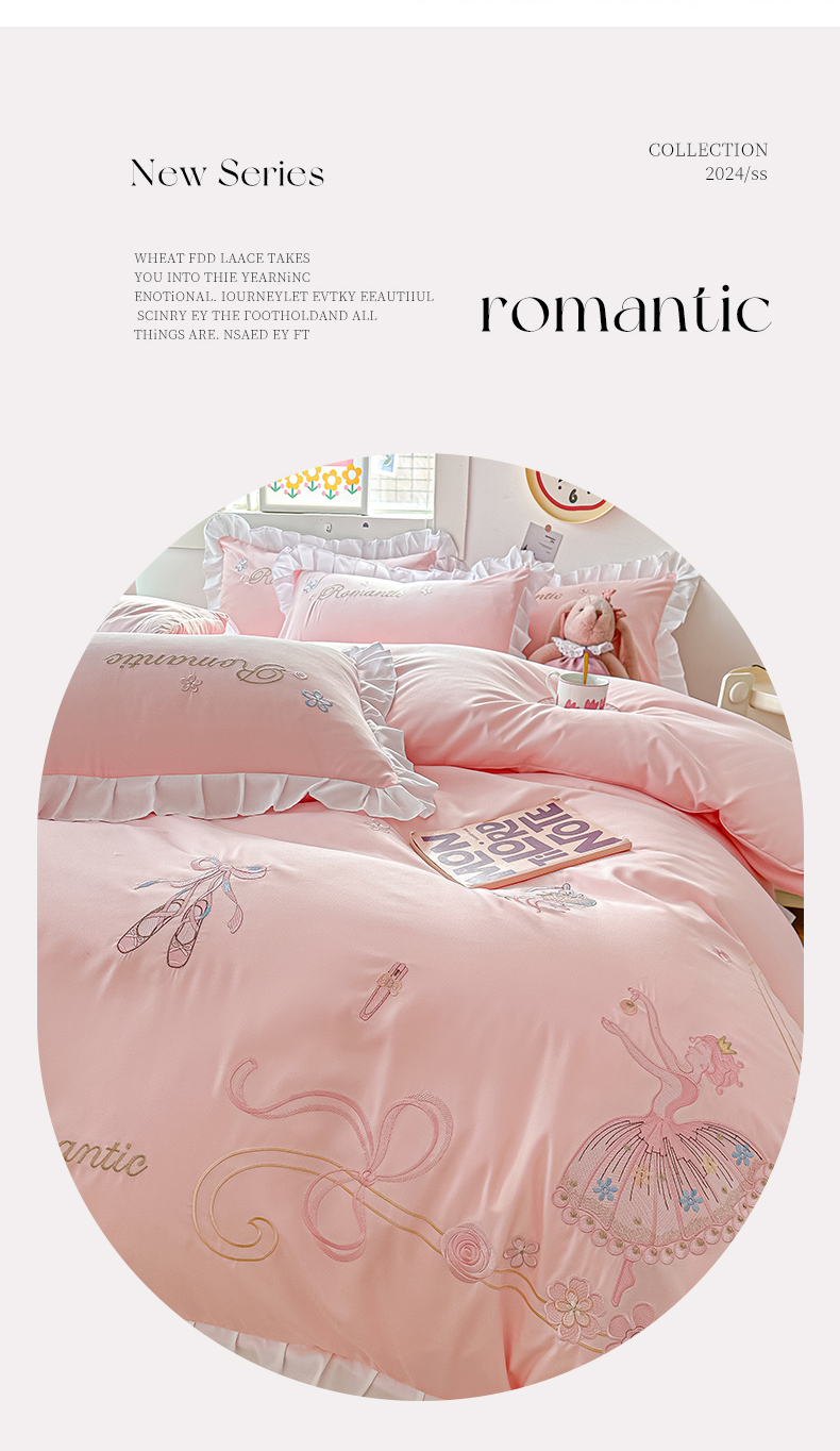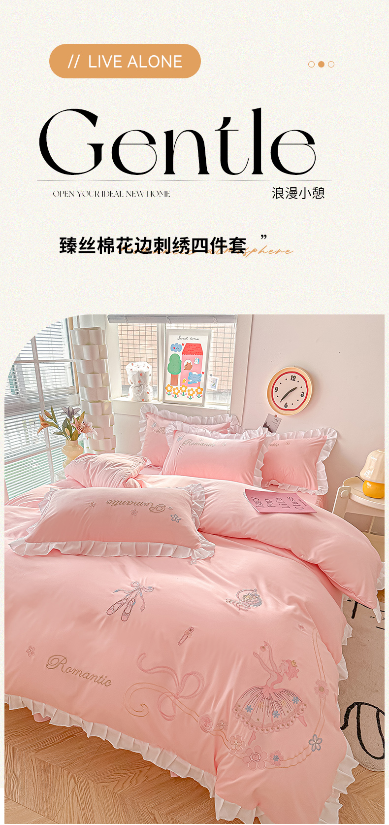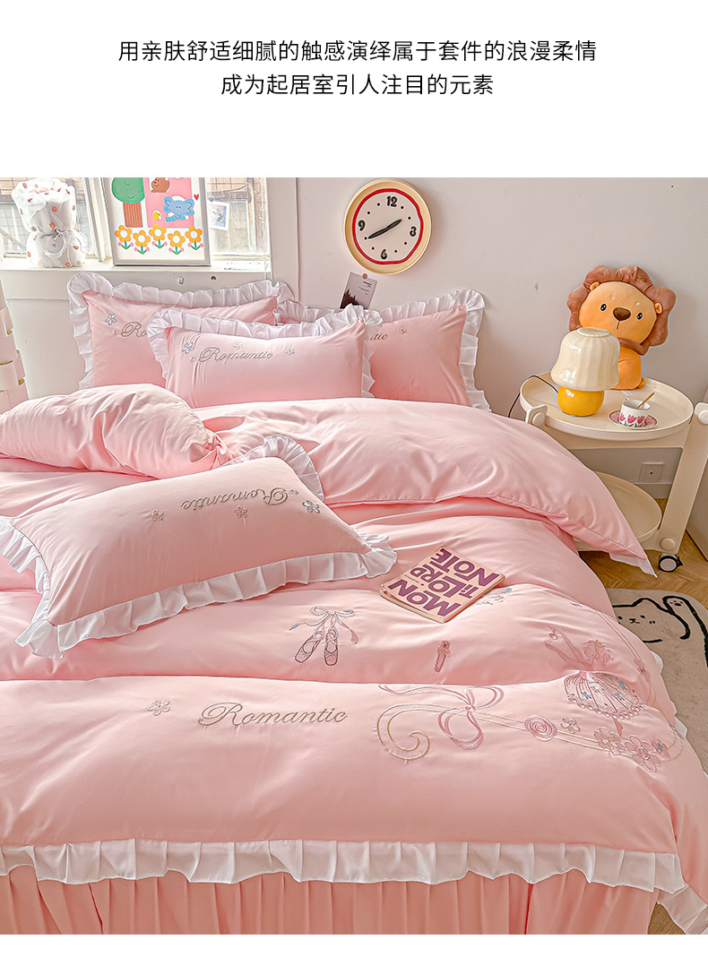 当前位置: 91家纺网 > 商品网购 > 床品套件 > 四件套 > 化纤活性四件套 > 包小包 2024新款芭蕾女孩系列精密刺绣花边韩版四件套四季款爆款(提供买家秀) 芭蕾女孩-浅粉