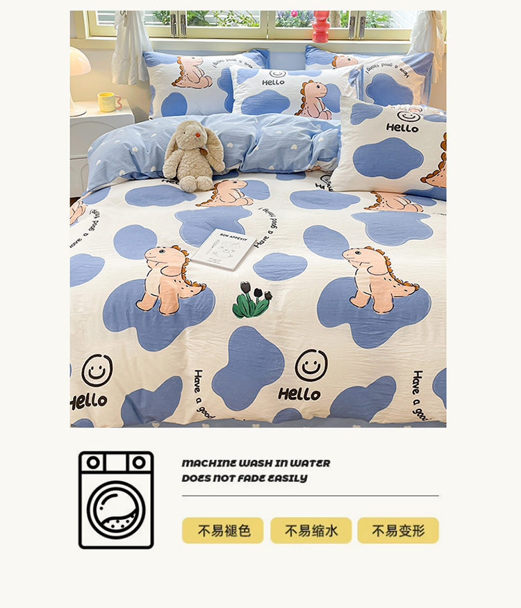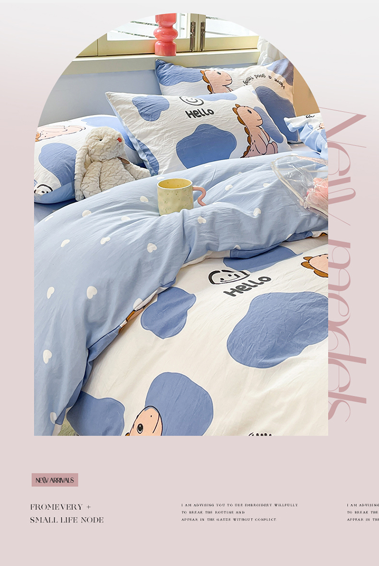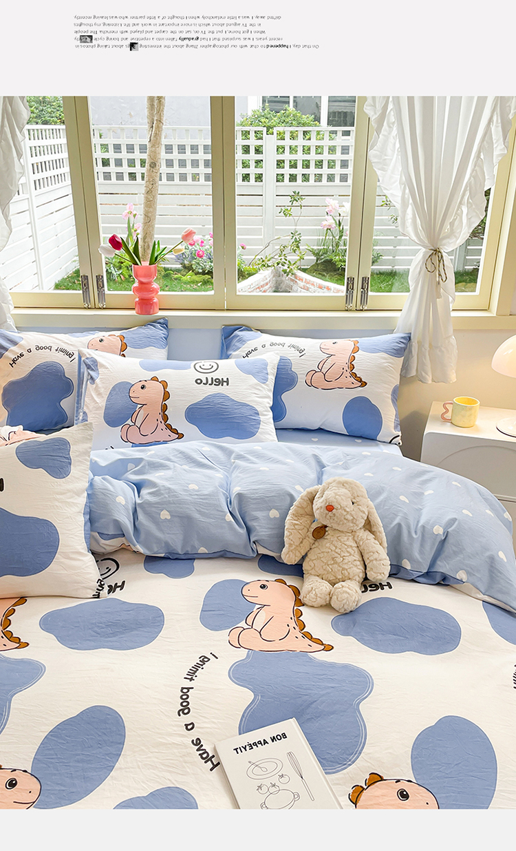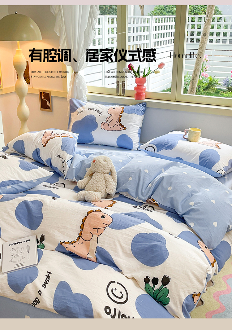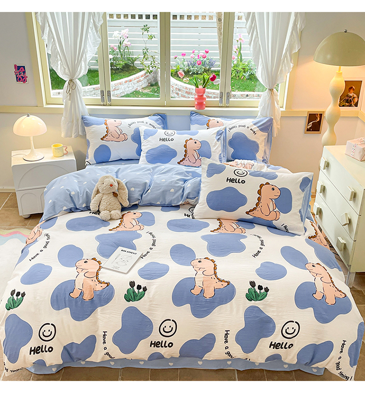 当前位置: 91家纺网 > 商品网购 > 床品套件 > 四件套 > 水洗棉四件套 > 盛秋家纺 2026新款水洗棉印花四件套-卡通系列 恐龙宝宝+蓝爱心