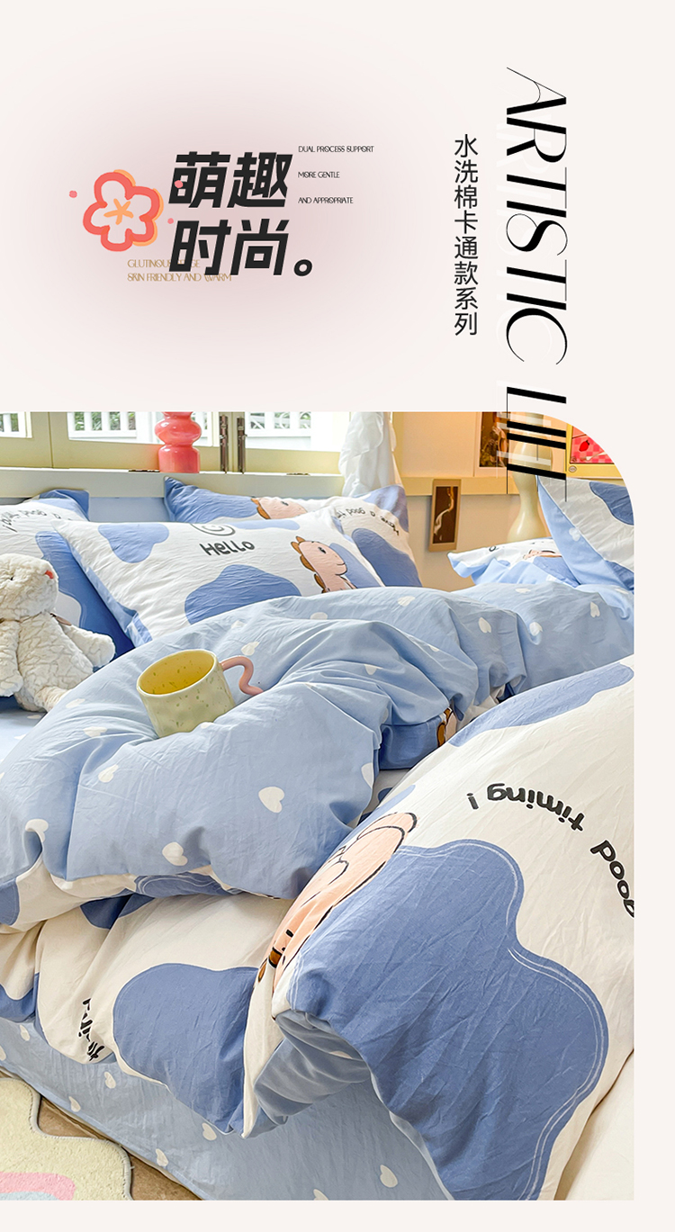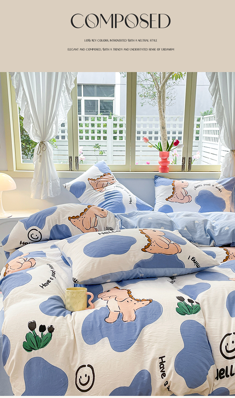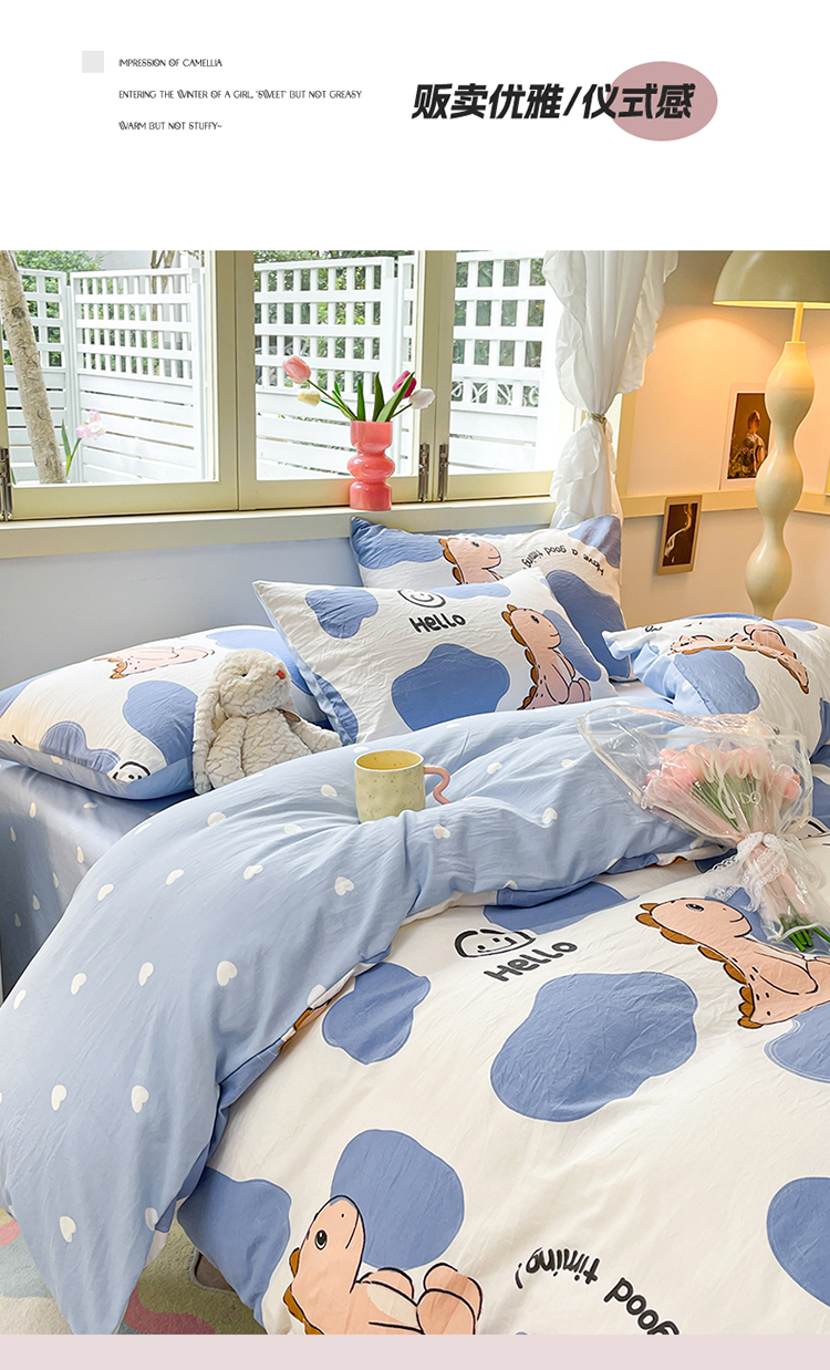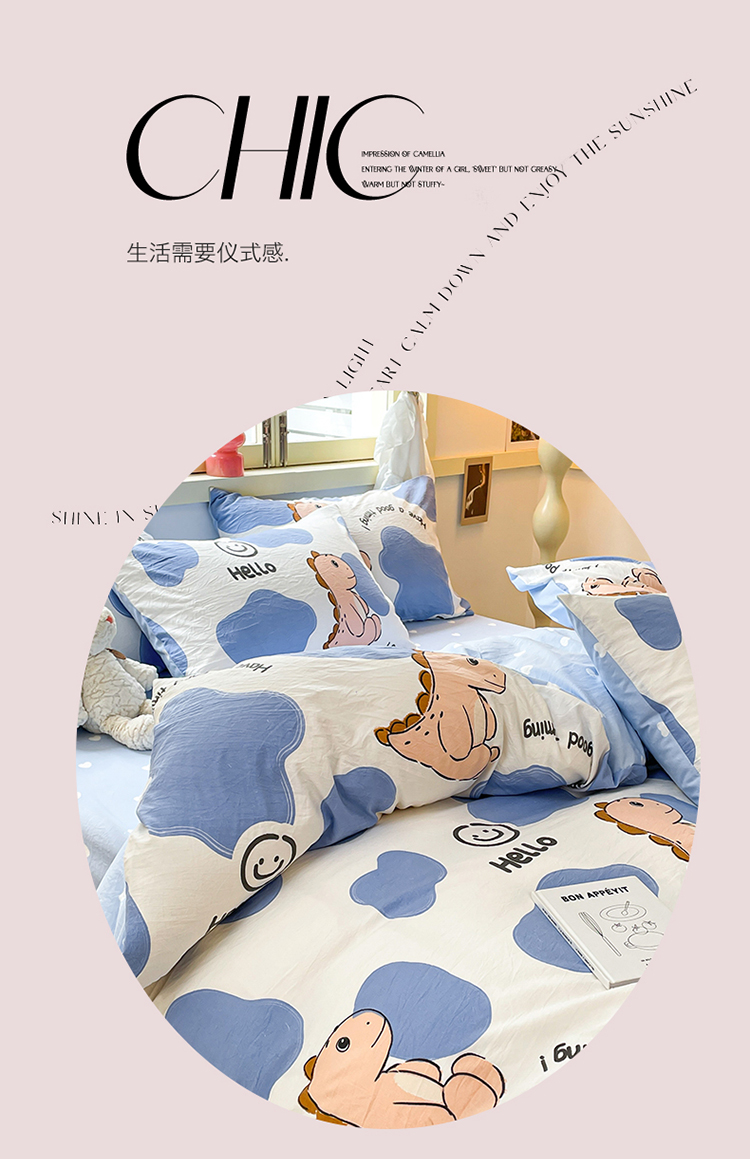 当前位置: 91家纺网 > 商品网购 > 床品套件 > 四件套 > 水洗棉四件套 > 盛秋家纺 2026新款水洗棉印花四件套-卡通系列 恐龙宝宝+蓝爱心