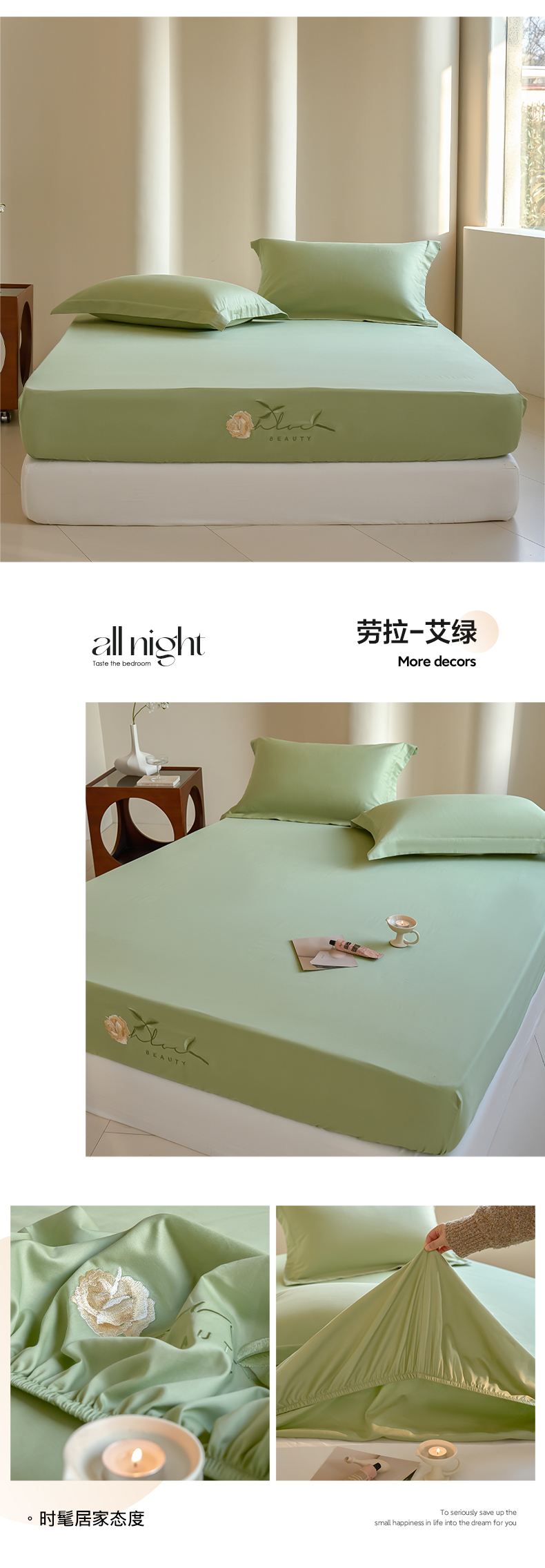 秀色家纺 2025新款A类50支贡缎长绒棉刺绣床笠 唤醒系列-劳拉 劳拉-艾绿