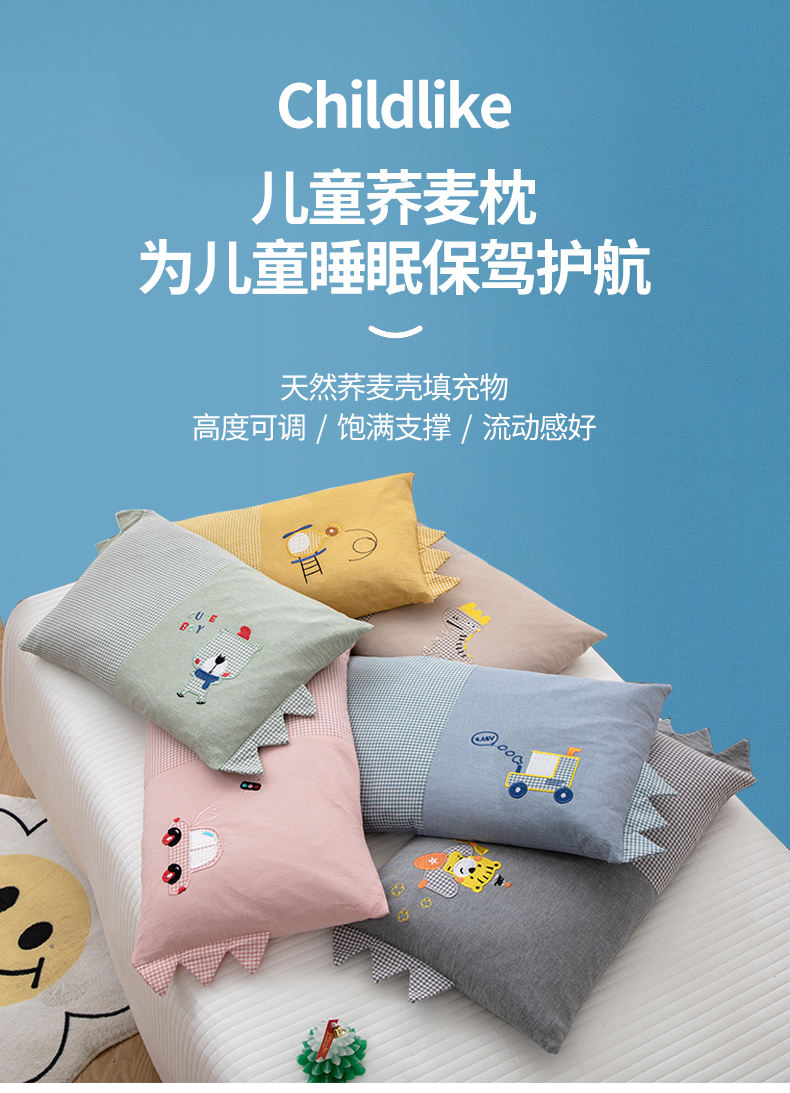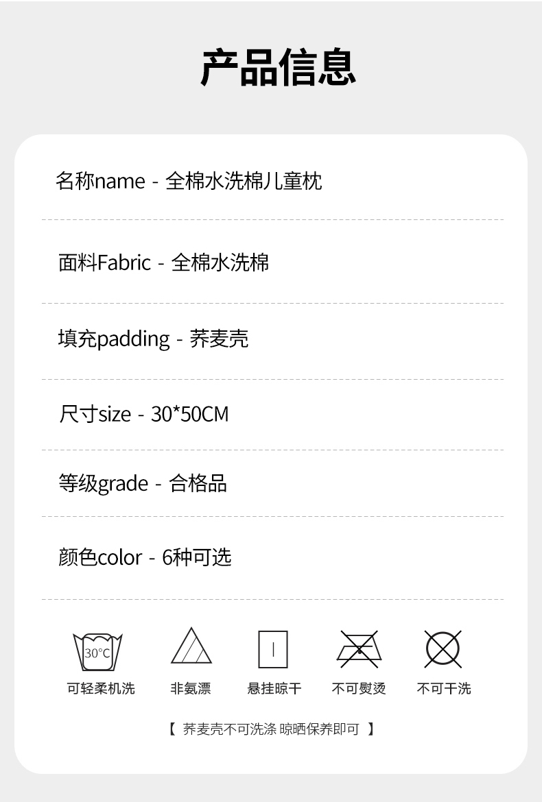 商品名称:(总)织布人 2024新款荞麦枕全棉水洗棉婴幼儿童枕0-6-12岁卡通枕套+荞麦枕芯 30*50cm/只