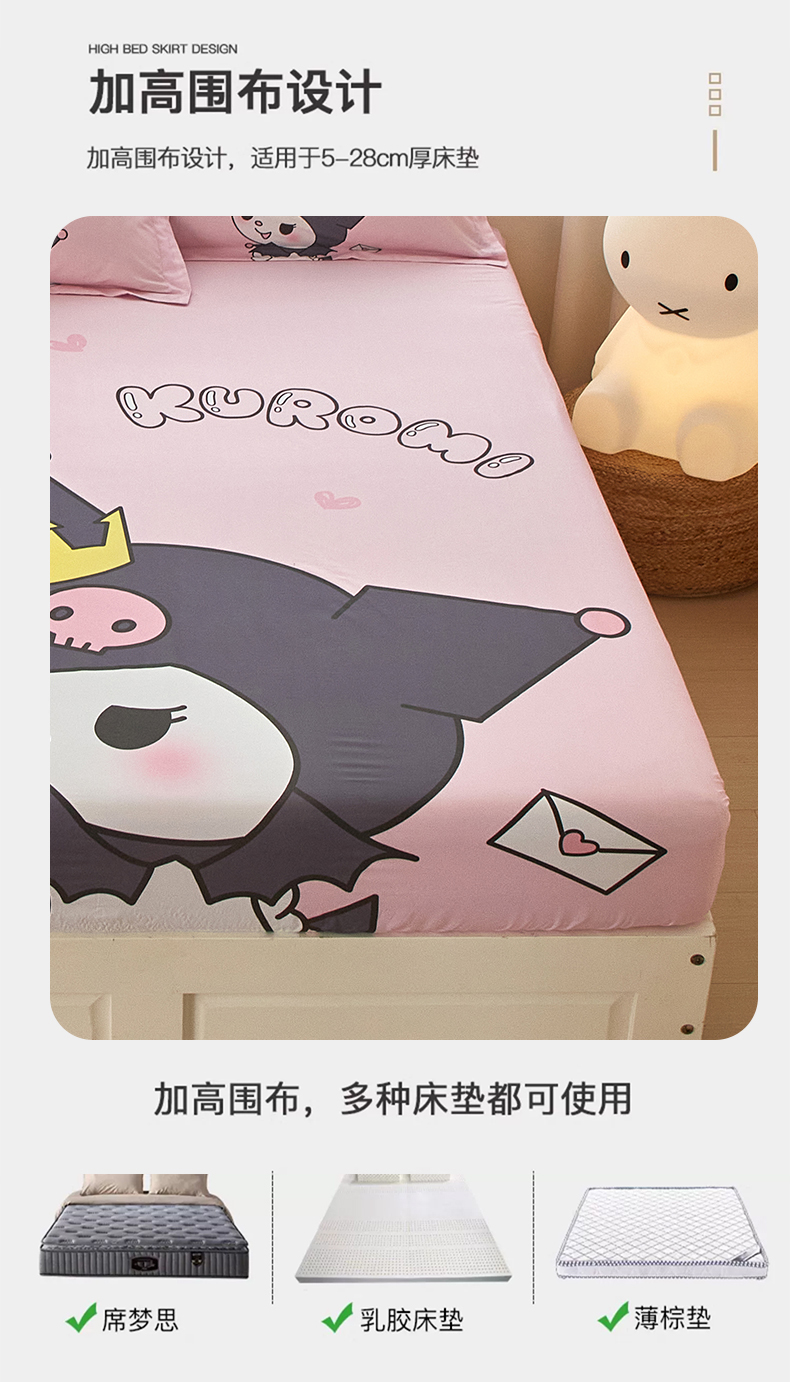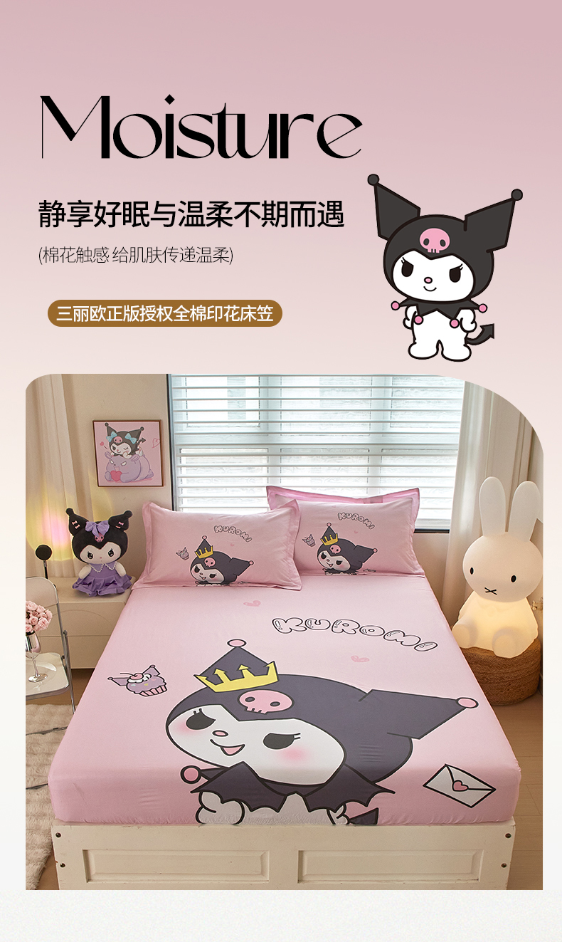 当前位置: 91家纺网 > 商品网购 > 床上用品 > 床笠 > 蘭菲家纺 2024新款全棉大版三丽鸥卡通单床笠 粉巴库