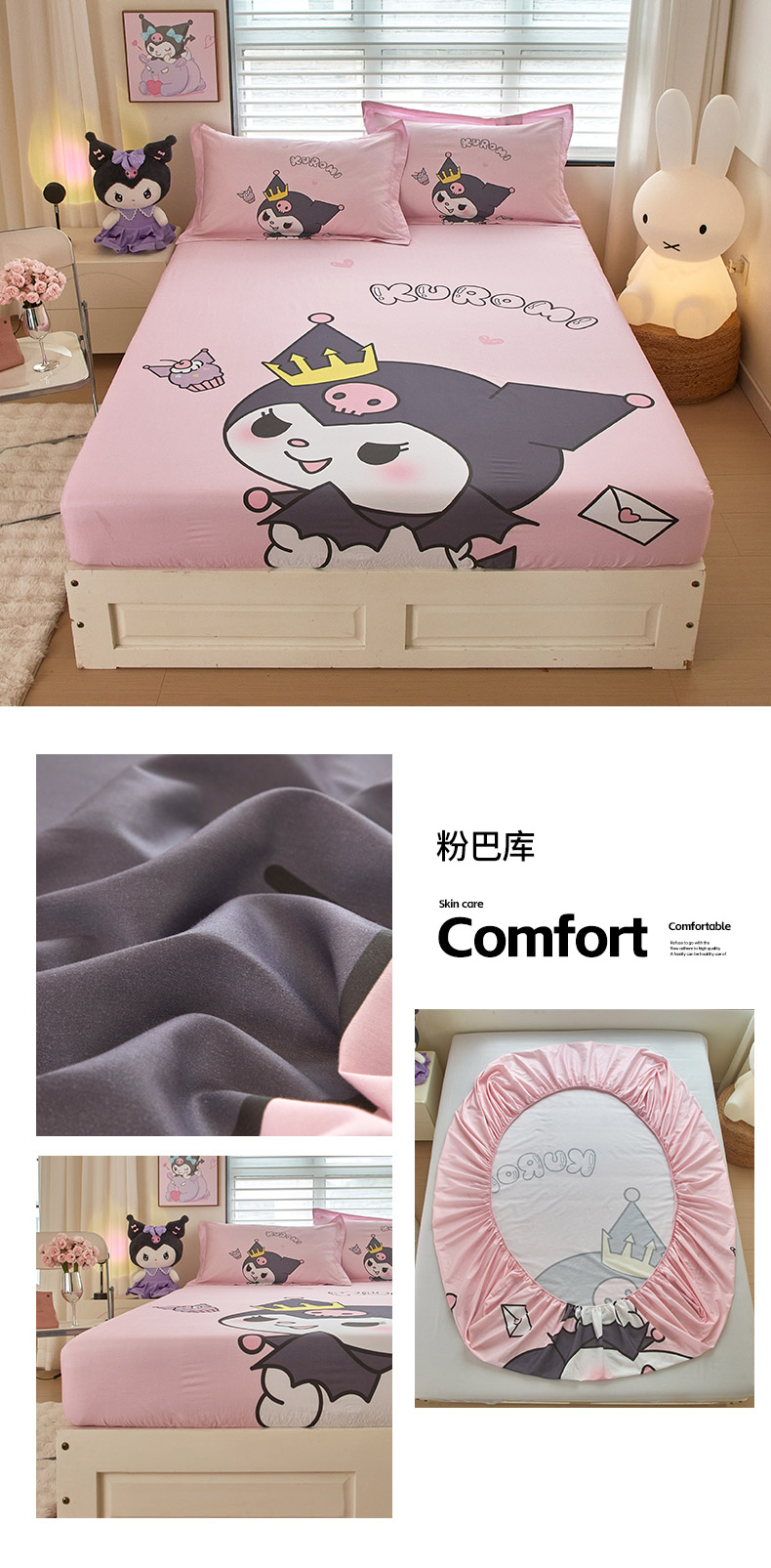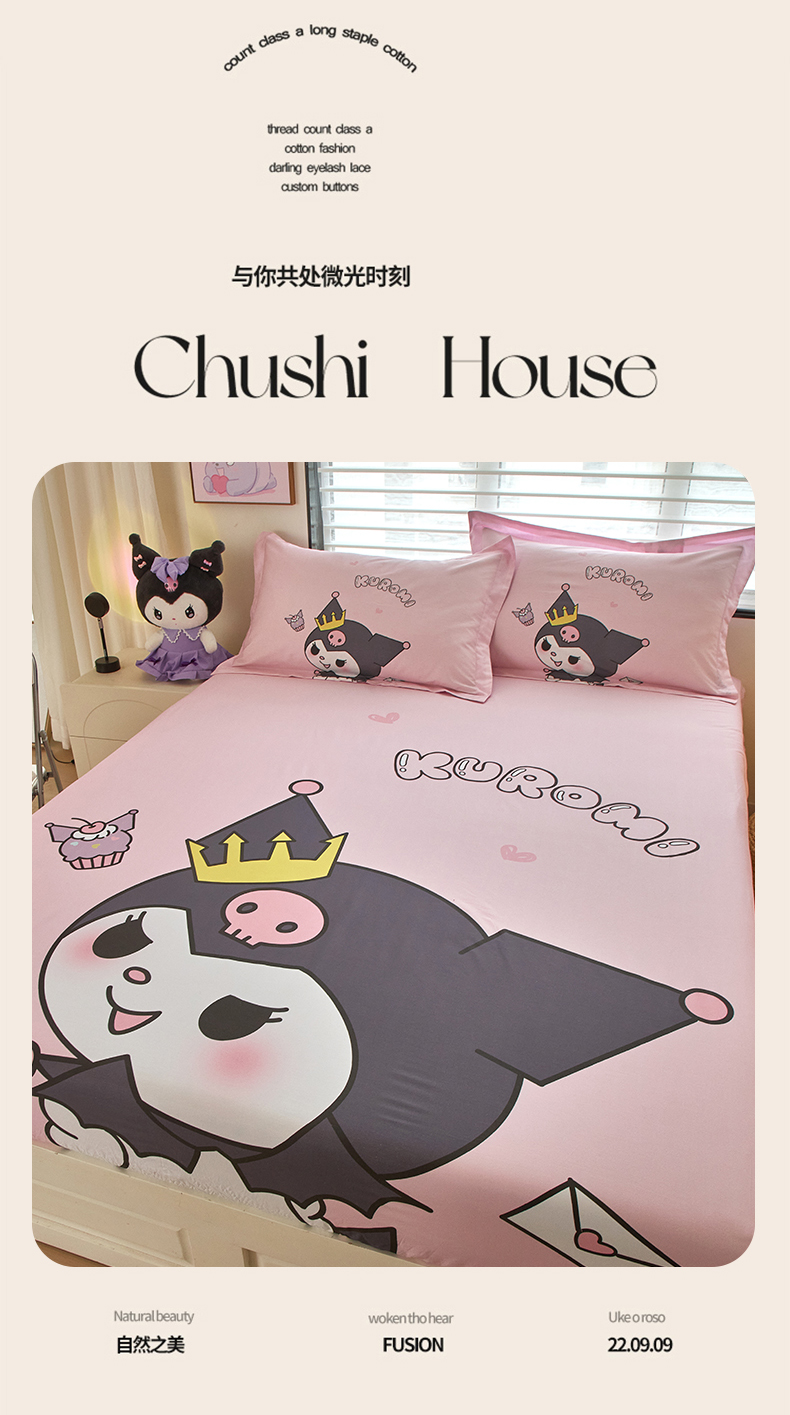蘭菲家纺 2024新款全棉大版三丽鸥卡通单床笠 粉巴库