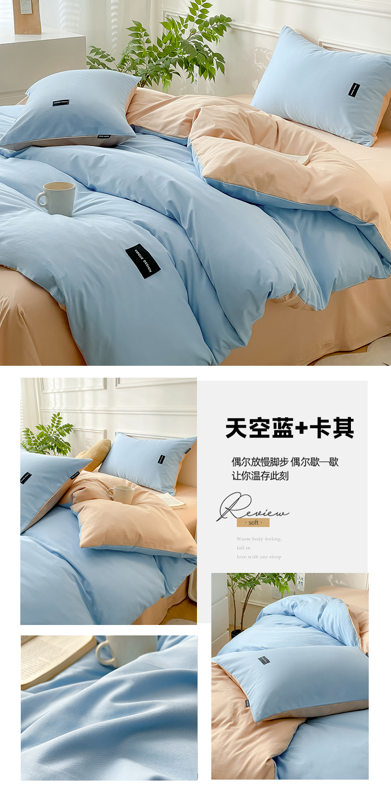 佰亿莱 2024新款全棉无印风水洗棉学生宿舍三件套四件套 图片二 天空蓝+卡其