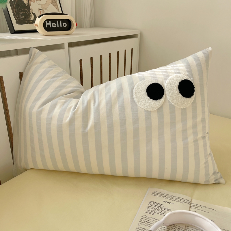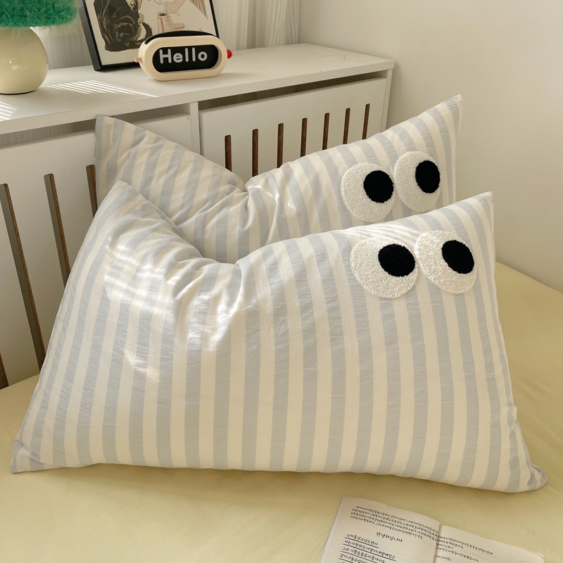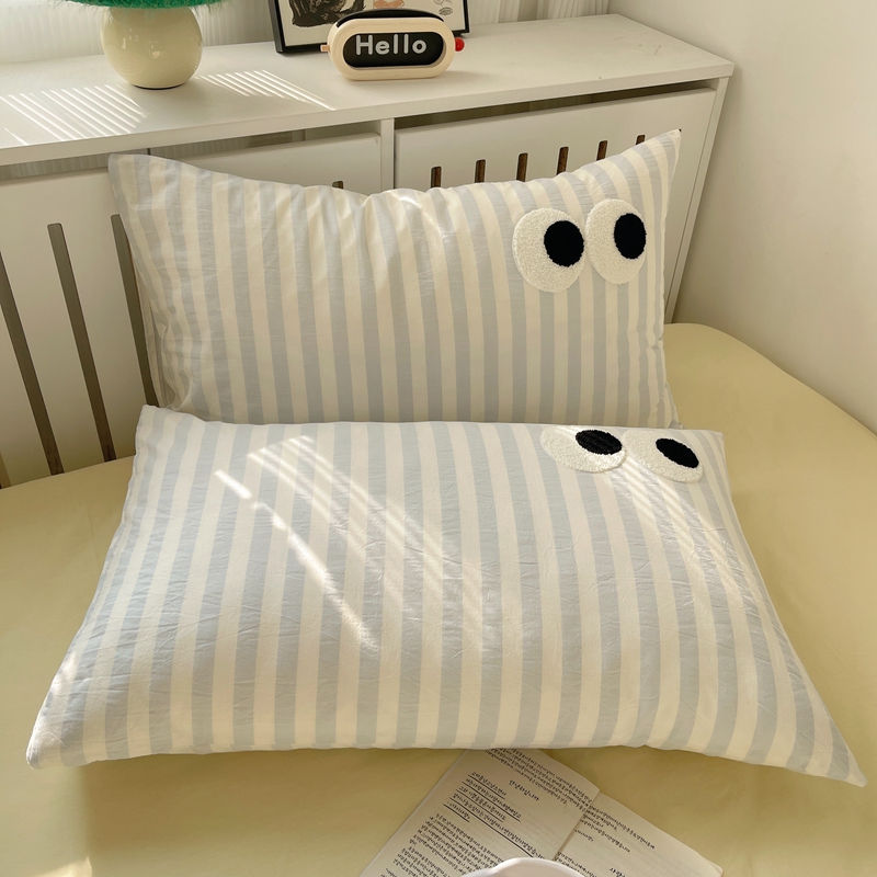 丽涵家纺 2024新款全棉色织水洗棉单品枕套-毛巾绣大眼系列 48*74cm枕套/只 ins混搭1-宽条蓝