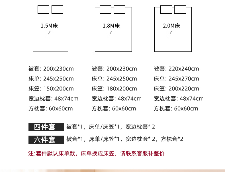 2.0m床单款六件套 | ¥180.00 |