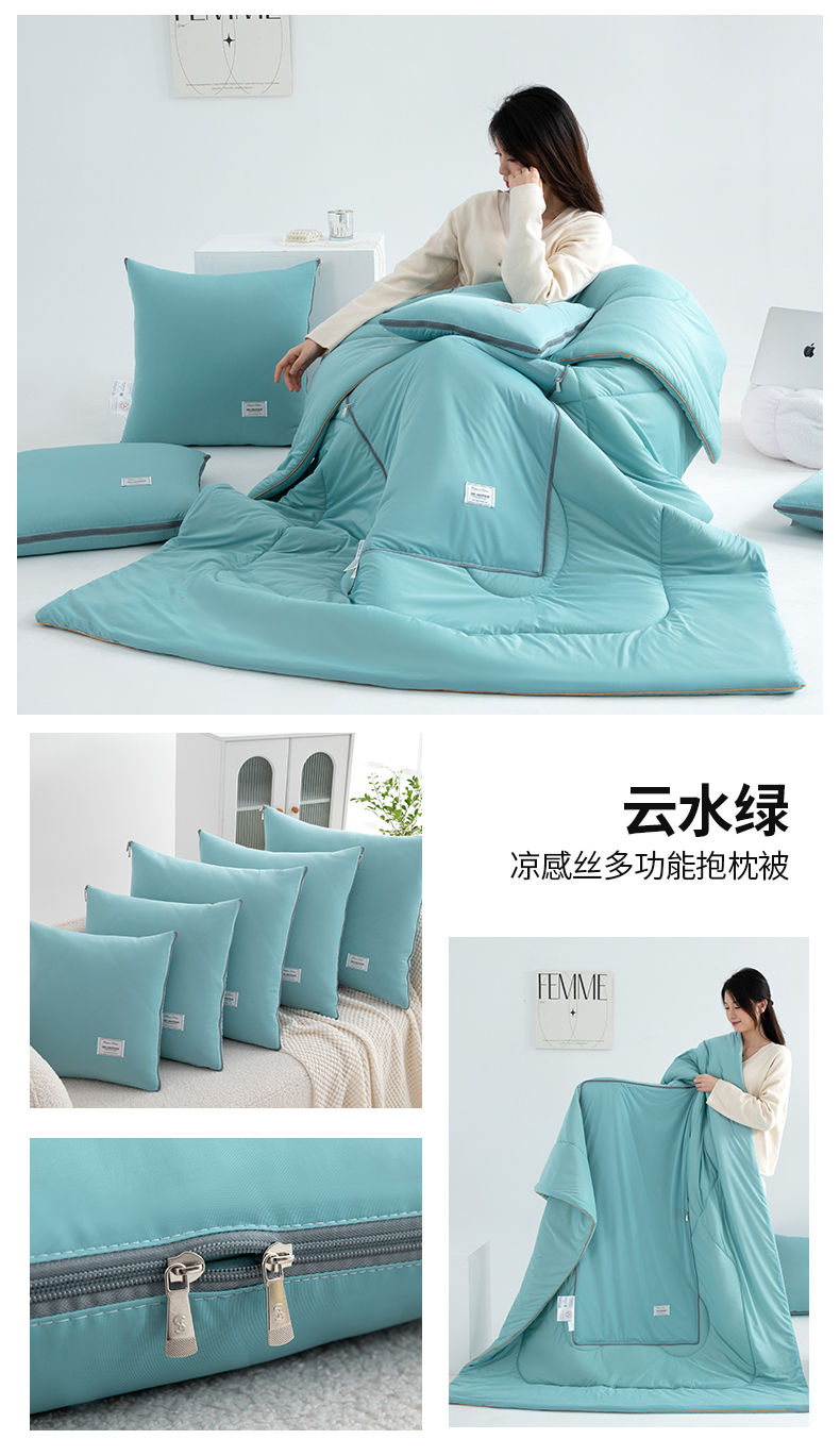 商品名称:照世 2024新款凉感丝贴布绣抱枕被 云水绿