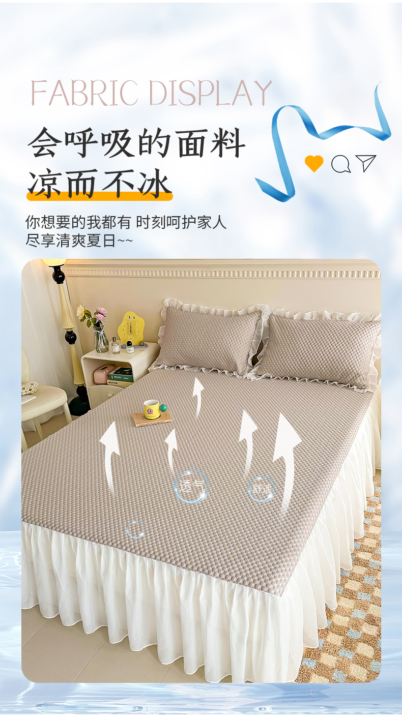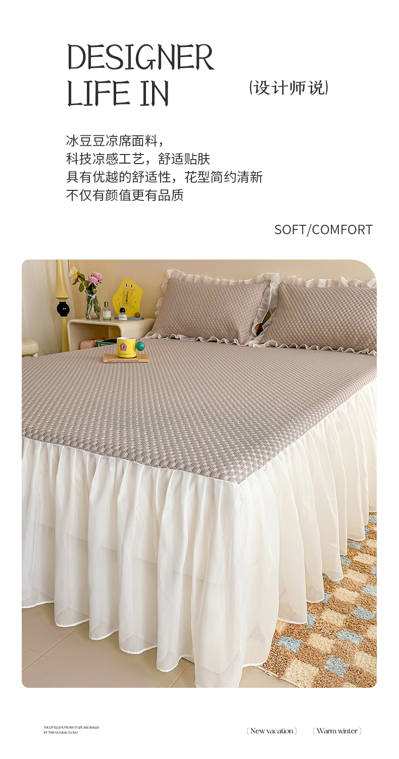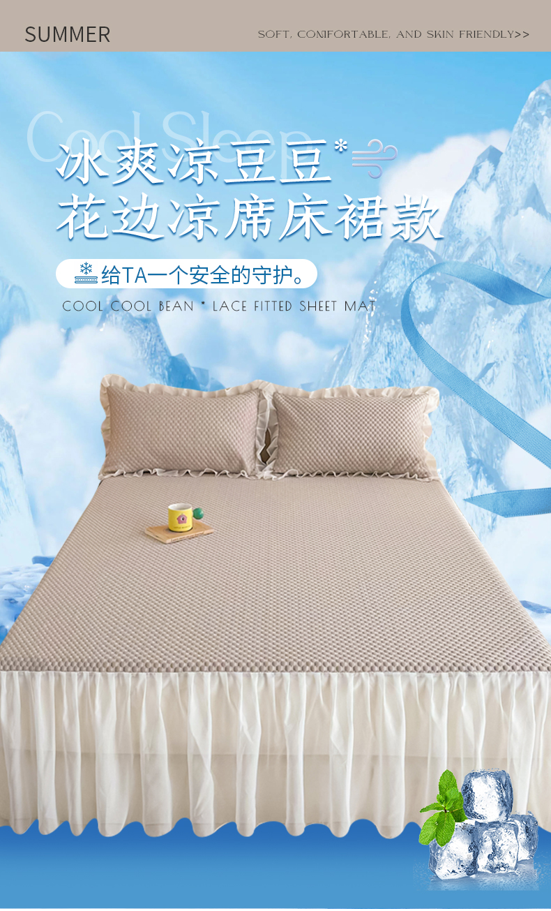 屹成家纺 2024新款凉豆豆床裙款冰丝凉席 豆豆-卡其