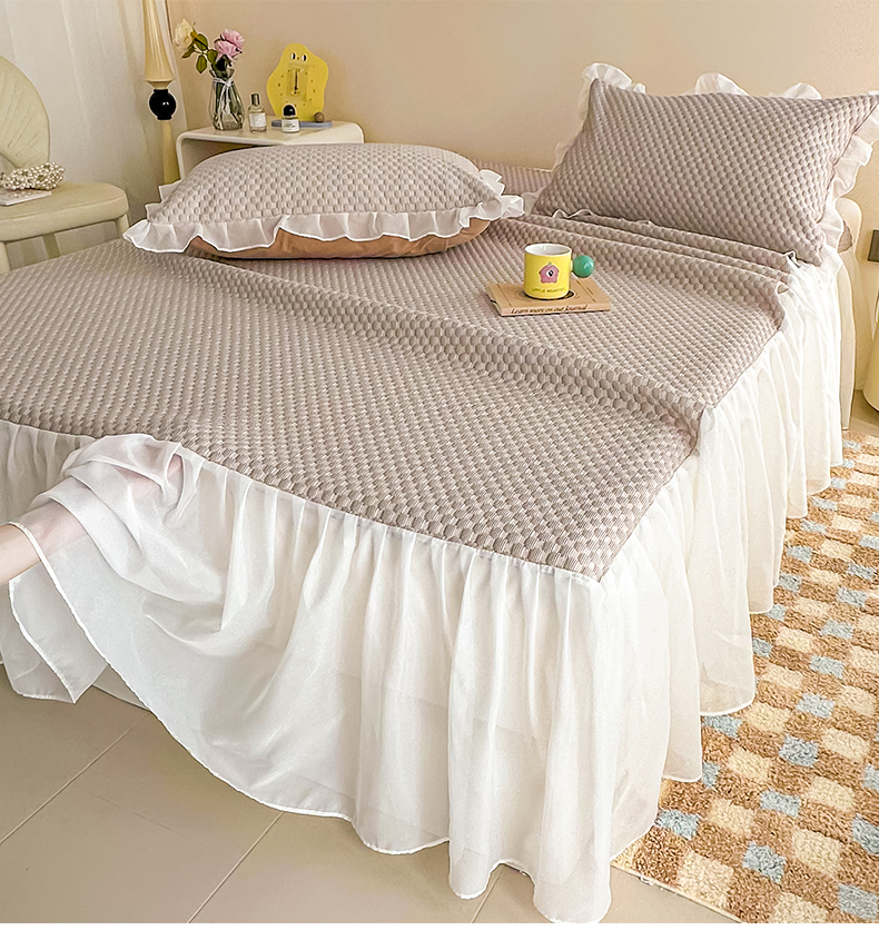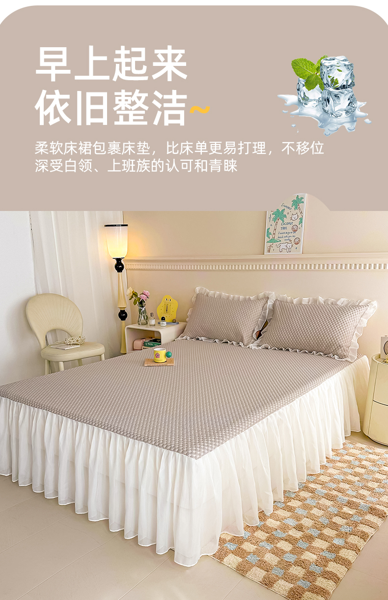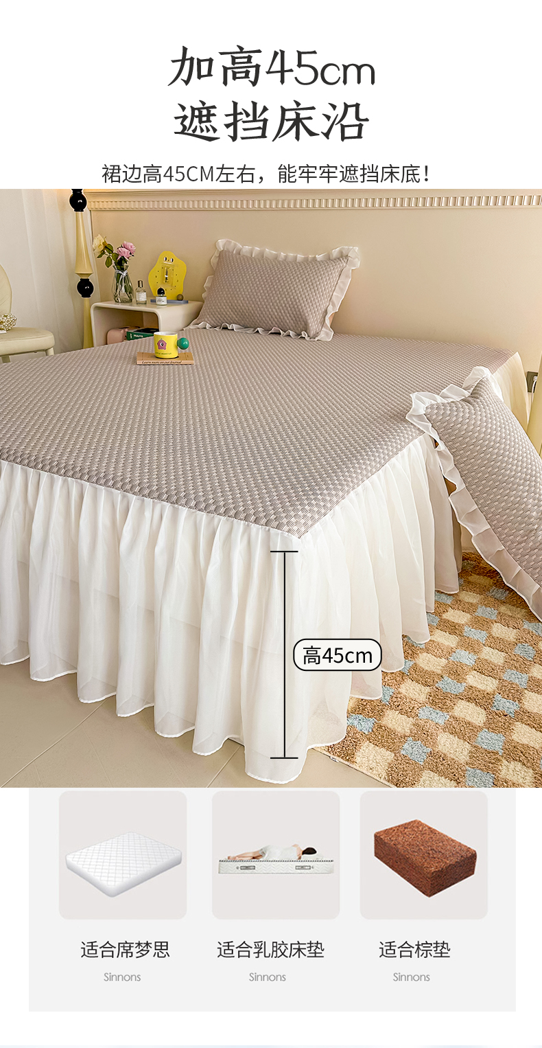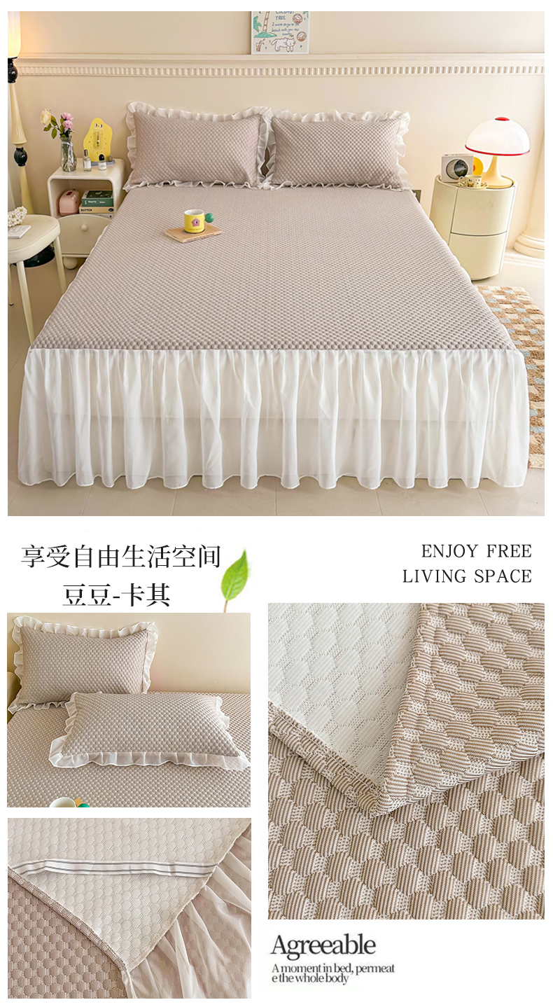 屹成家纺 2024新款凉豆豆床裙款冰丝凉席 豆豆-卡其