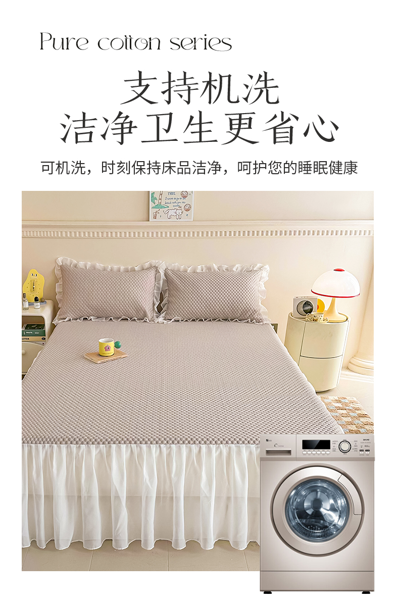 (总)屹成 2024新款水洗棉蕾丝四季款床笠床裙单品套件-床裙三件套,粉玉,豆沙,粉红,大红,橄榄绿,卡其,玫红,浅紫,水绿,天蓝,银灰
