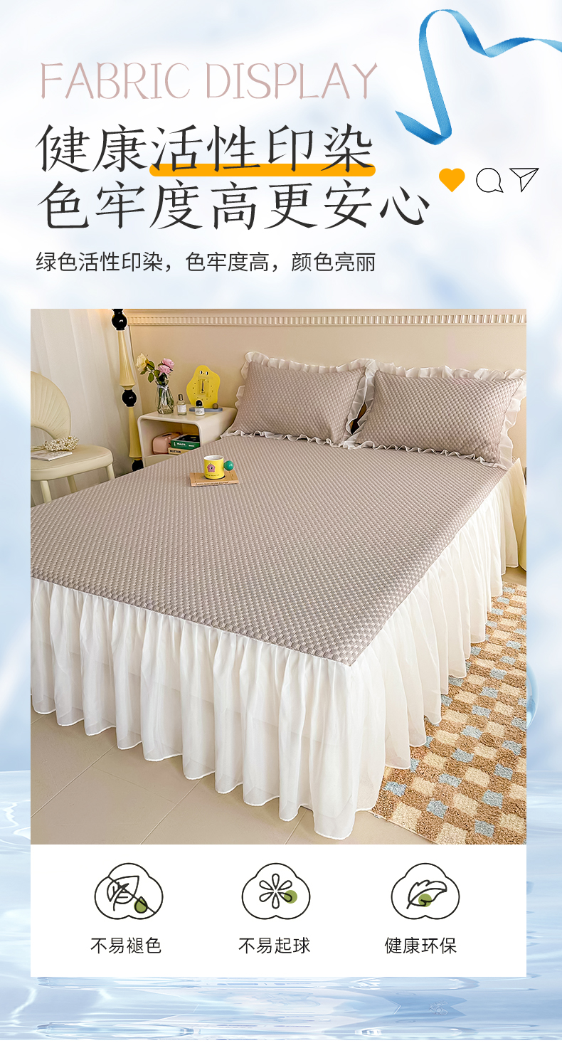 (总)屹成家纺2025新款水晶绒夹棉绗缝蕾丝床裙三件套(塞纳河畔)床裙单件起售价不低于105元,大红,豆沙,翡翠绿,粉玉,橄榄绿,蔚蓝,银灰