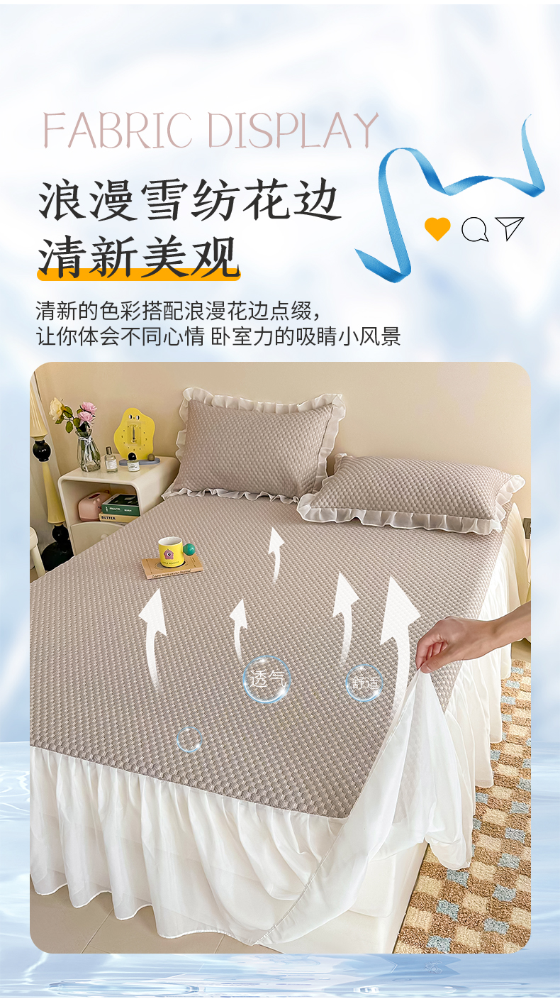 商品名称:屹成家纺 2024新款凉豆豆床裙款冰丝凉席 豆豆-卡其
