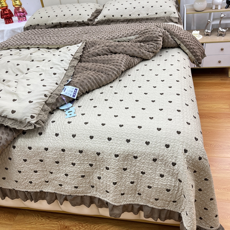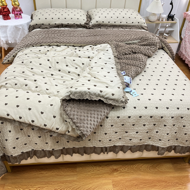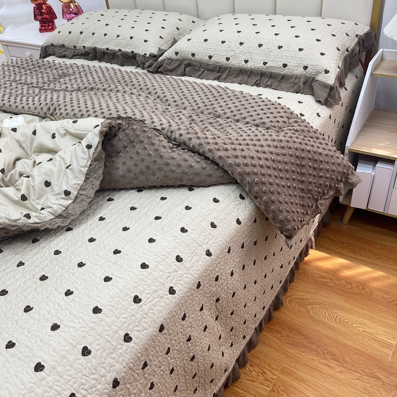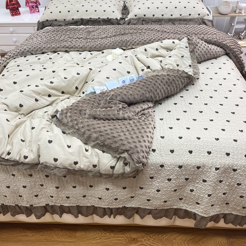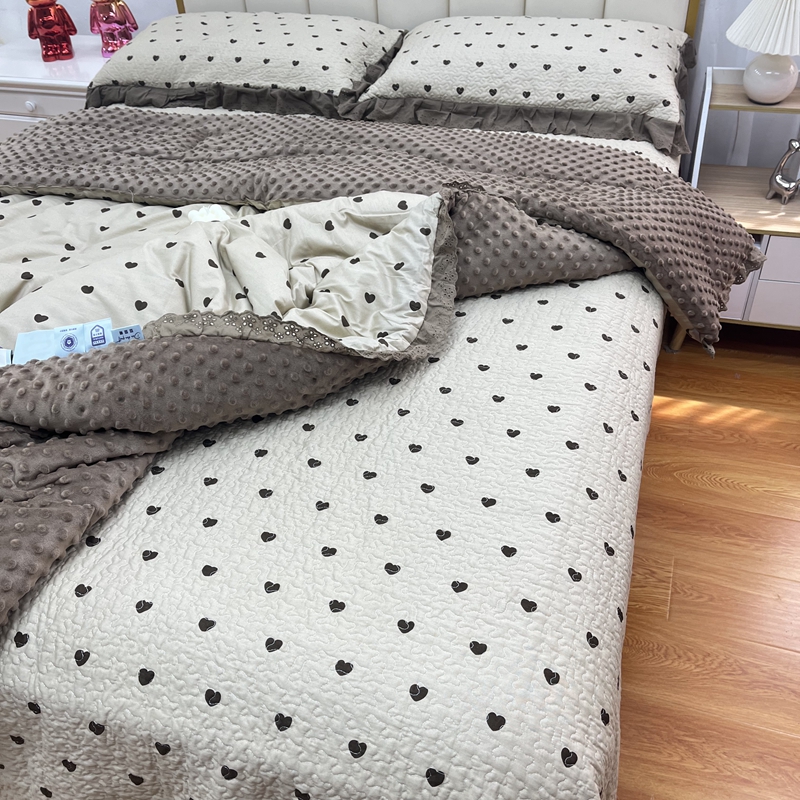 暖居 2024新款豆豆被四件套春秋单件豆豆绒被芯被褥可机洗爱心咖