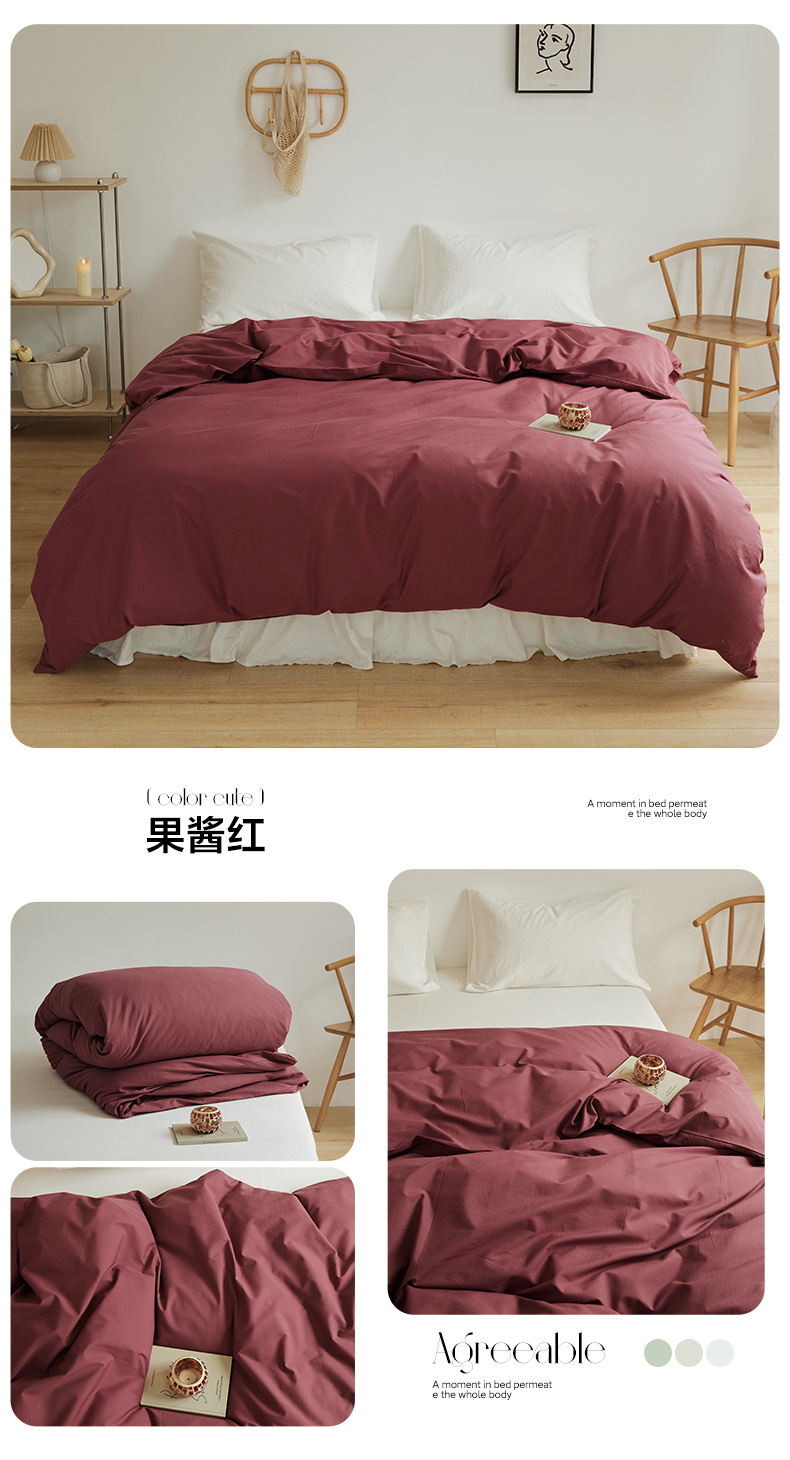 商品名称:新款40支全棉水洗棉纯色单品系列-单被套 果酱红