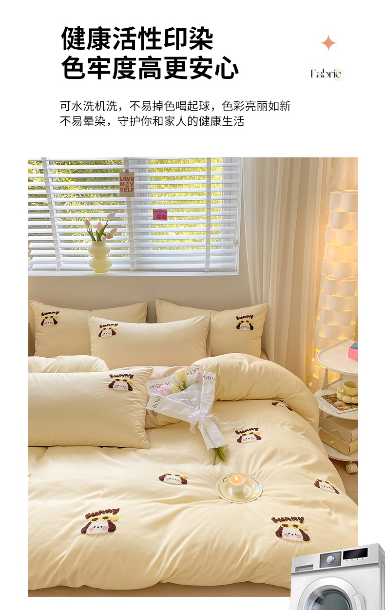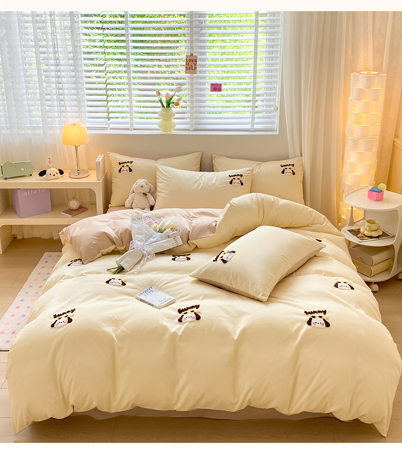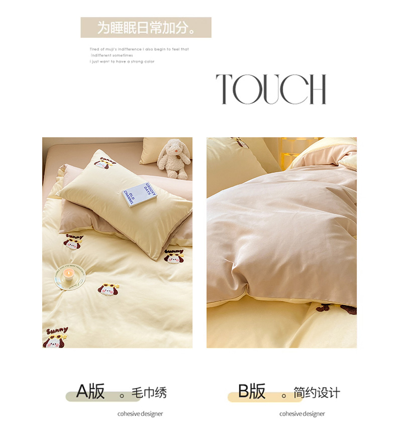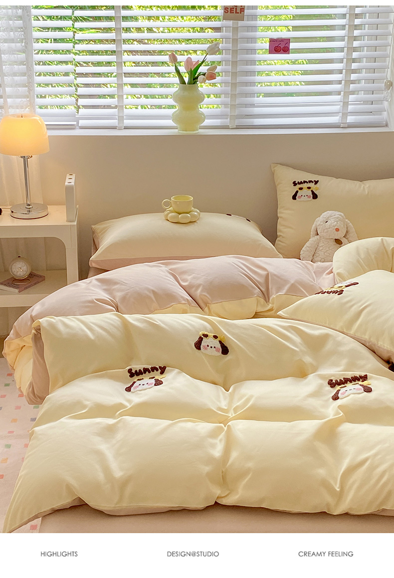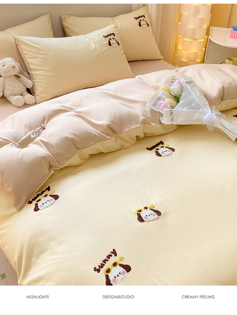 当前位置: 91家纺网 > 商品网购 > 床品套件 > 四件套 > 毛巾绣四件套 > 眠帛 2024新款亲肤棉卡通毛巾绣四件套 帕恰-奶黄奶茶