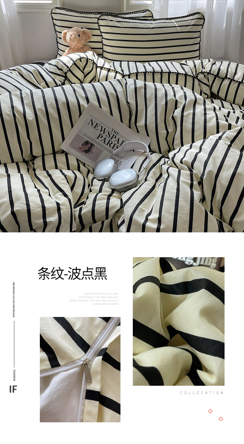 商品名称:857家居 2024新款贝壳边四件套 条纹-波点黑