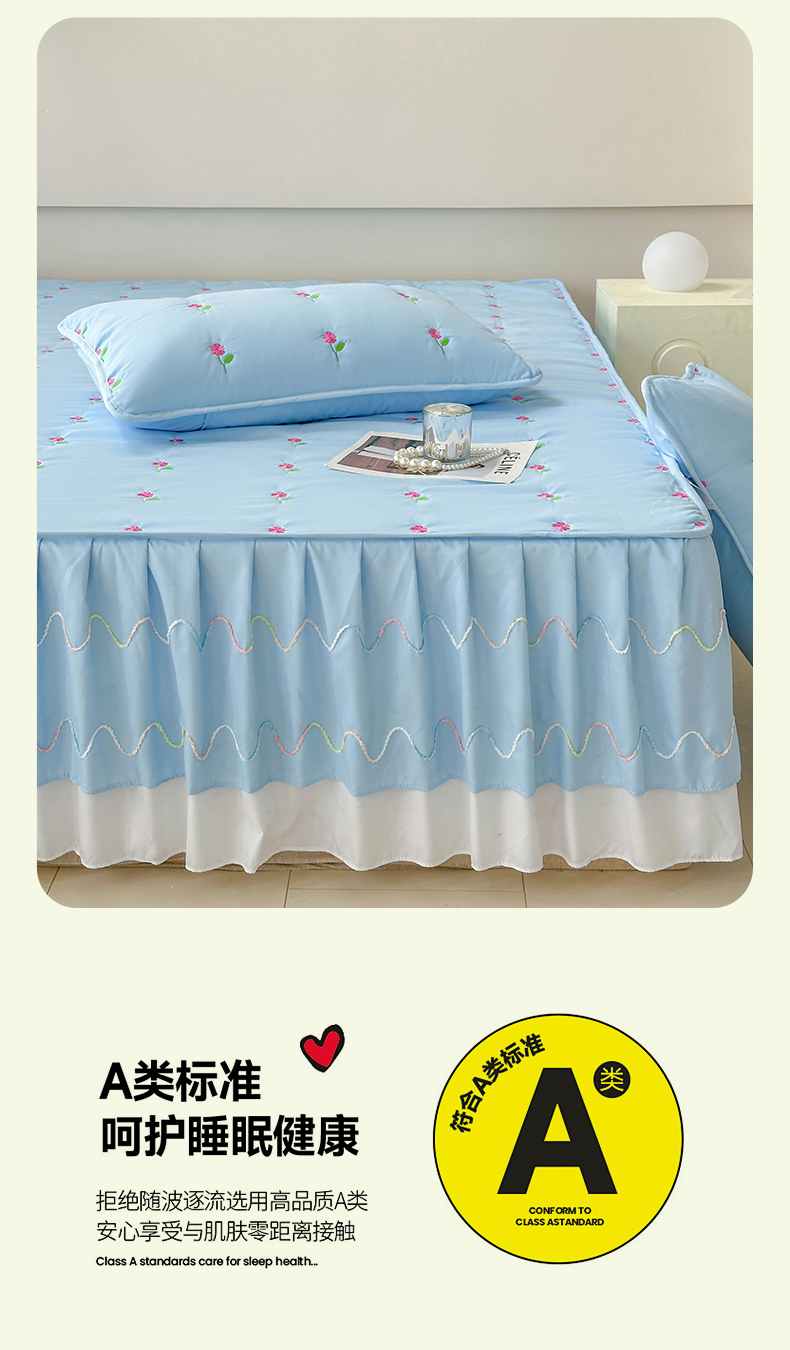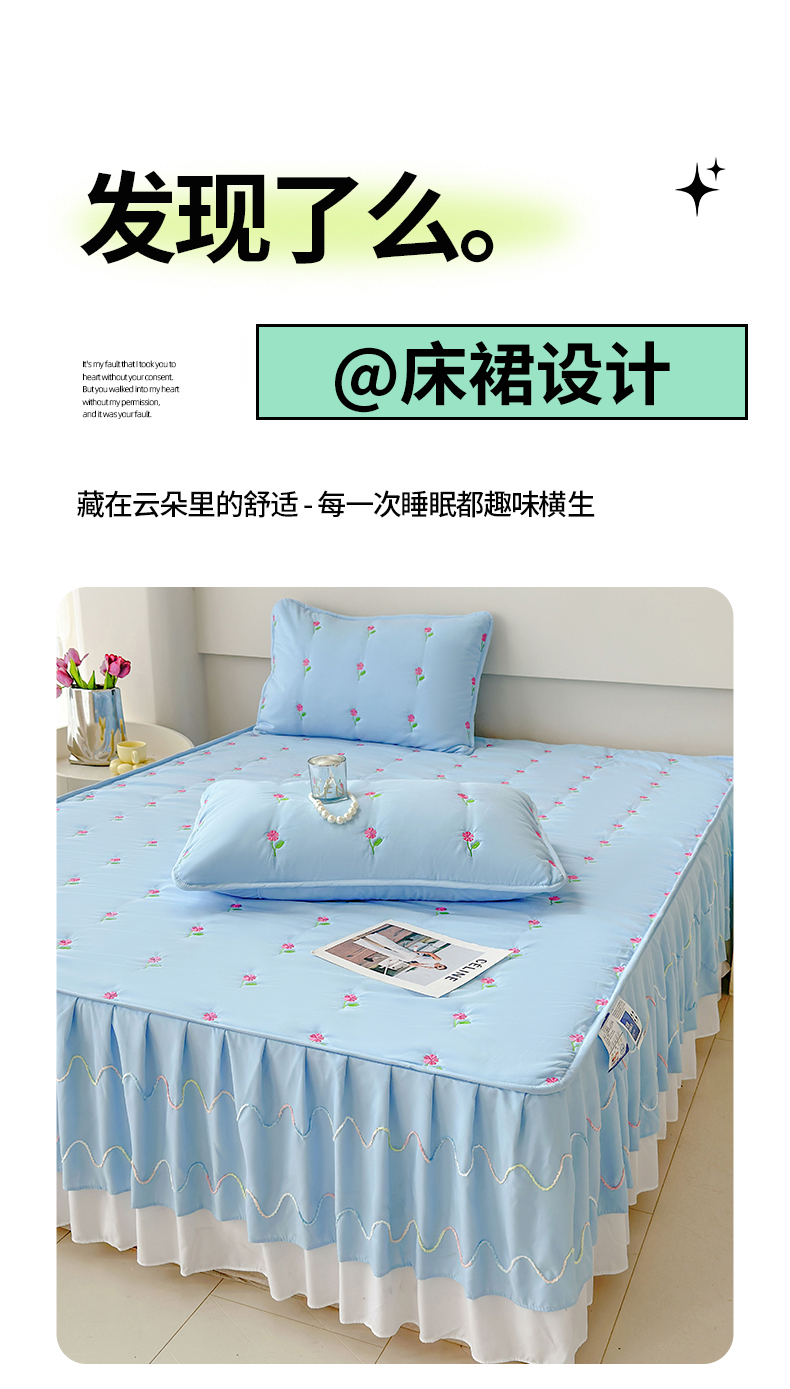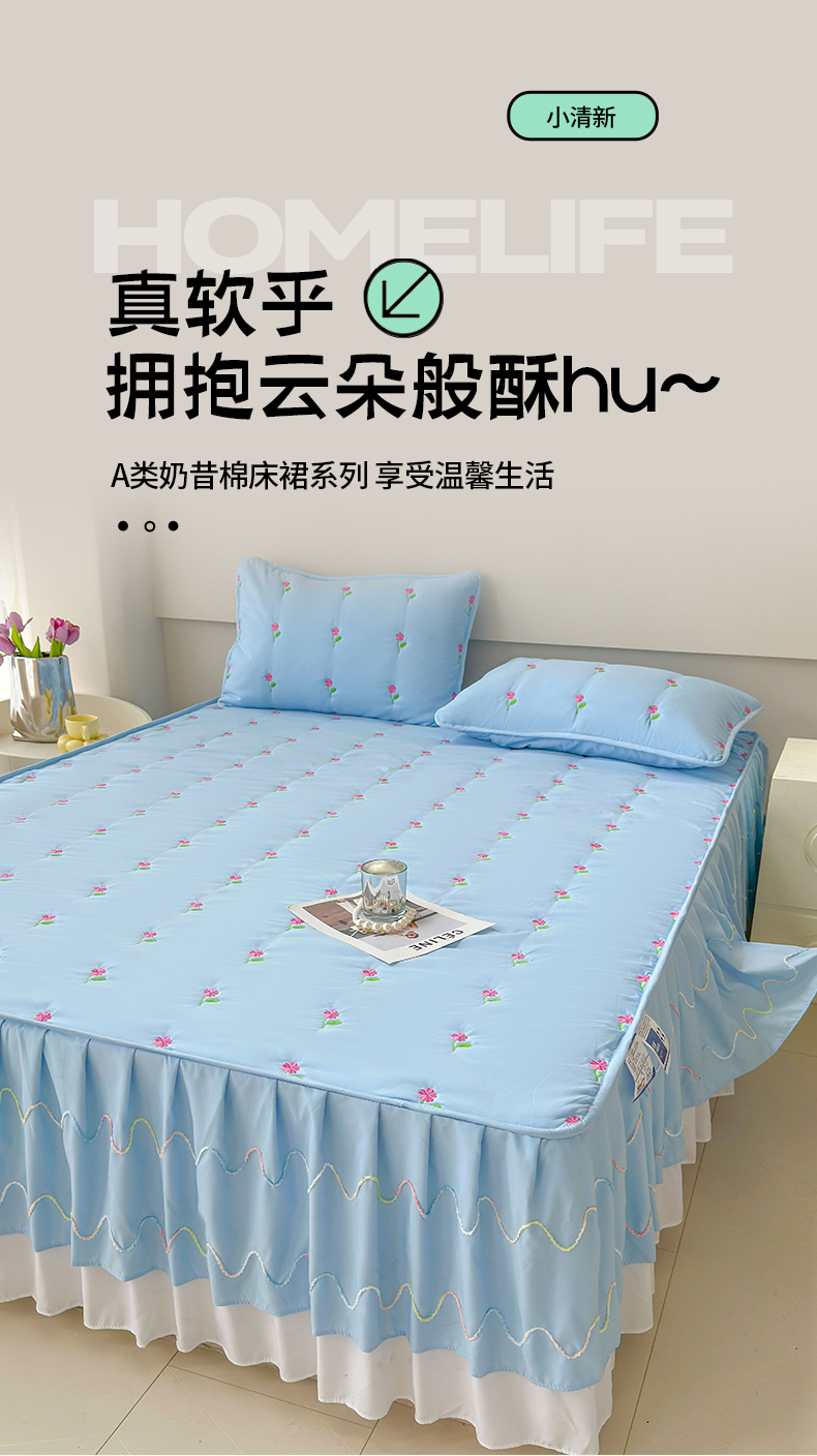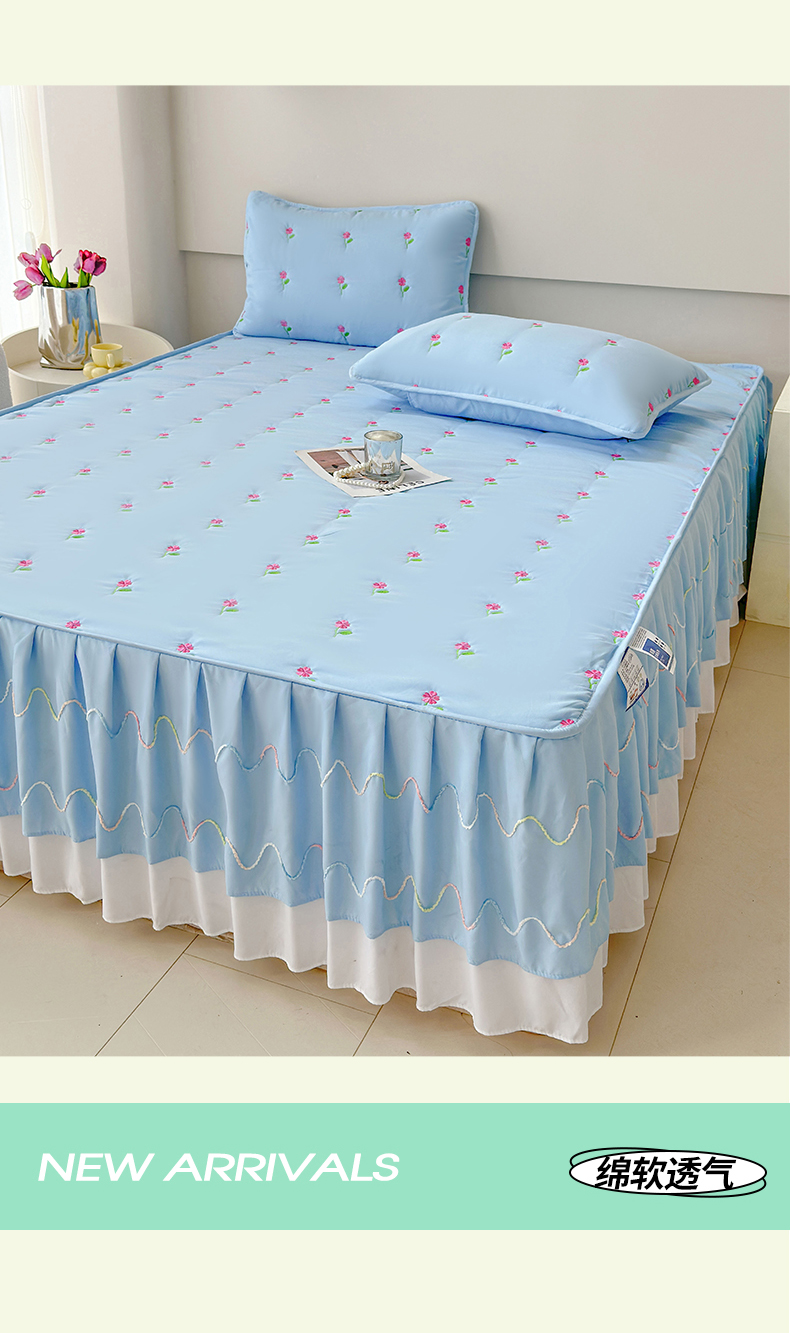 尊康家纺(原磊科) 2024新款亲肤奶昔棉夹棉床裙向阳花语系列 向阳花语-海天蓝