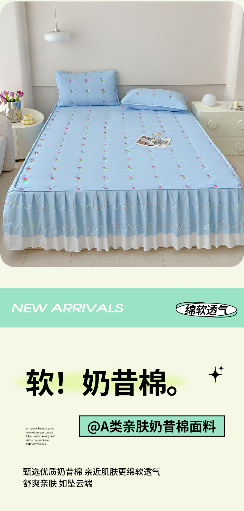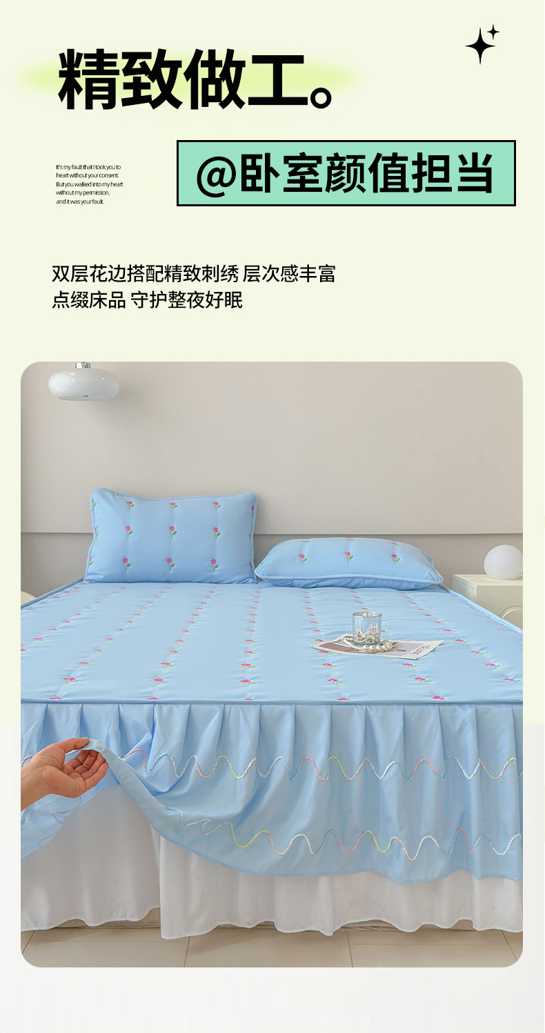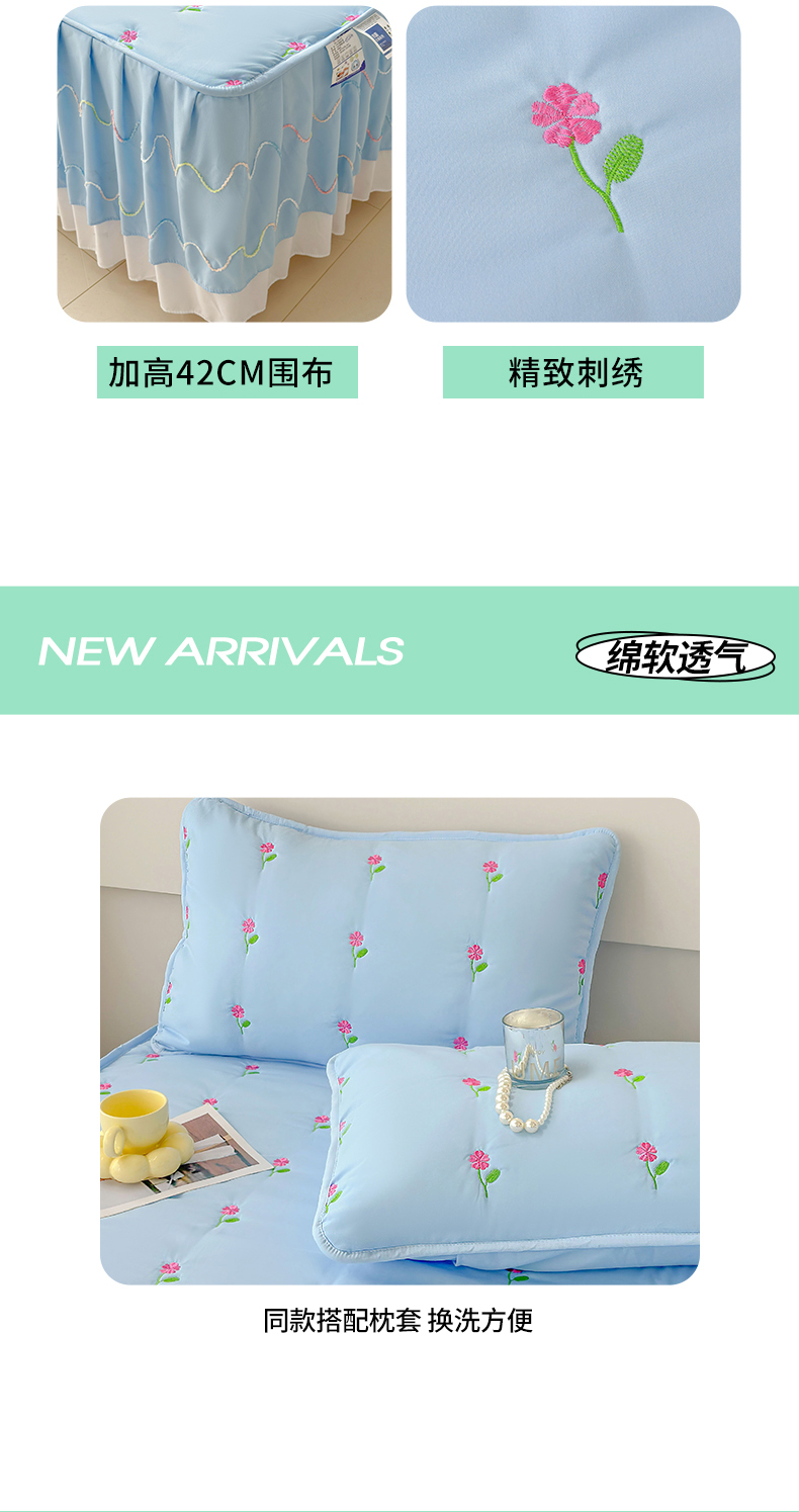 尊康家纺(原磊科) 2024新款亲肤奶昔棉夹棉床裙向阳花语系列 向阳花语-海天蓝