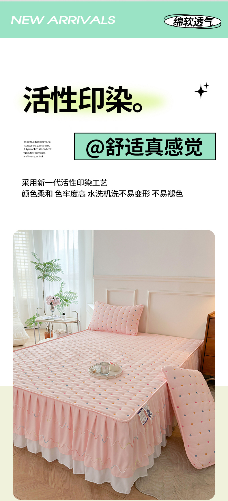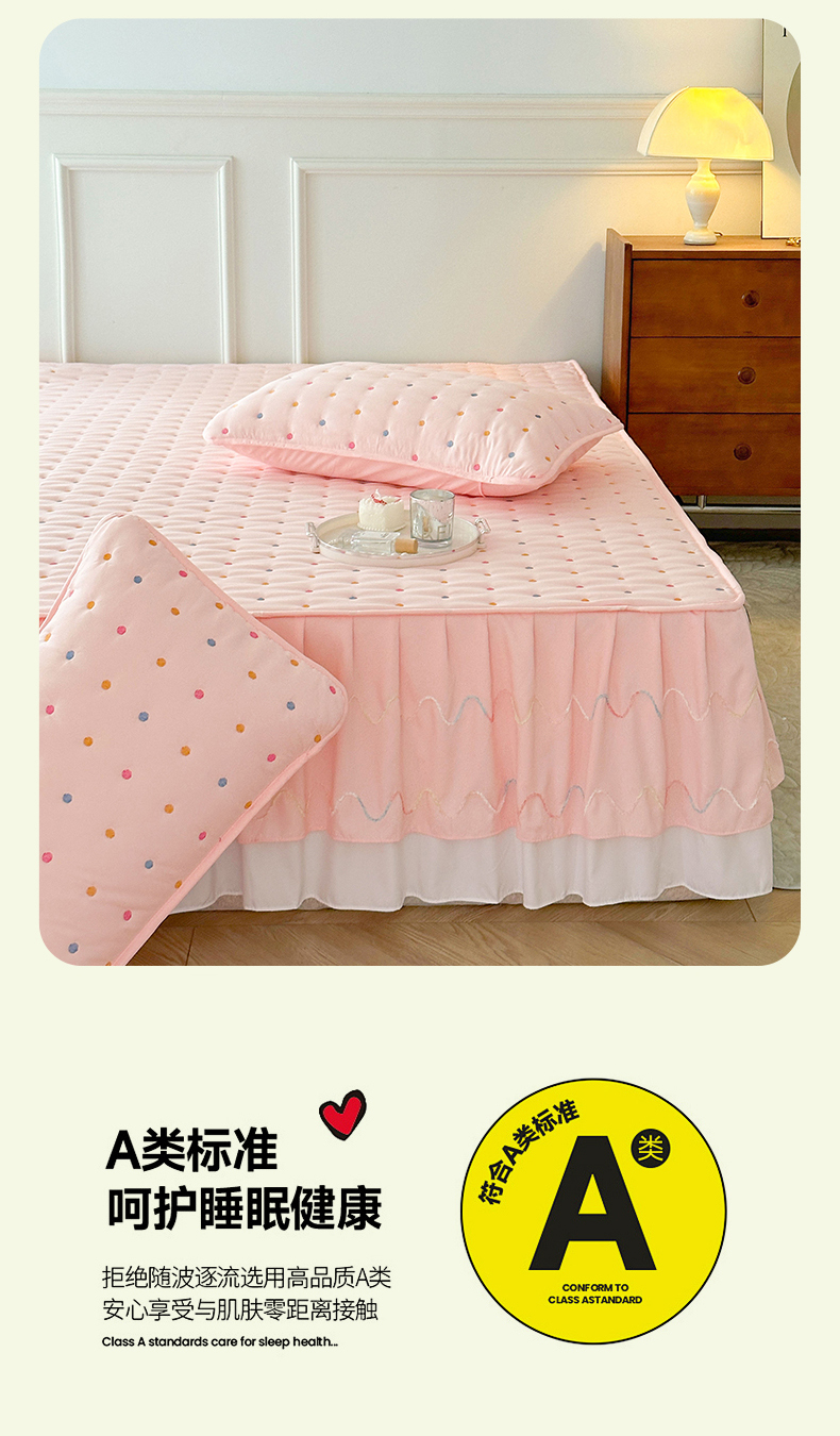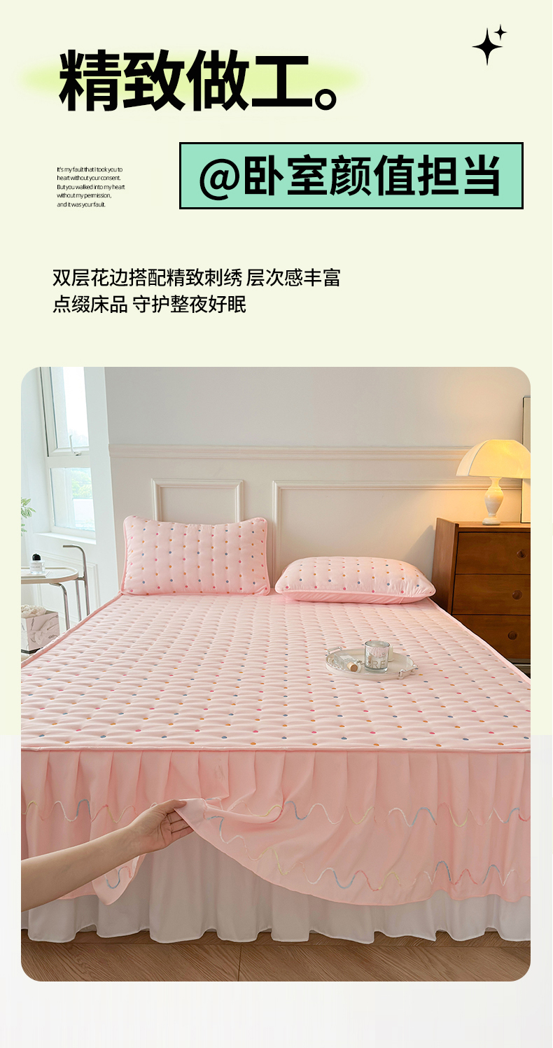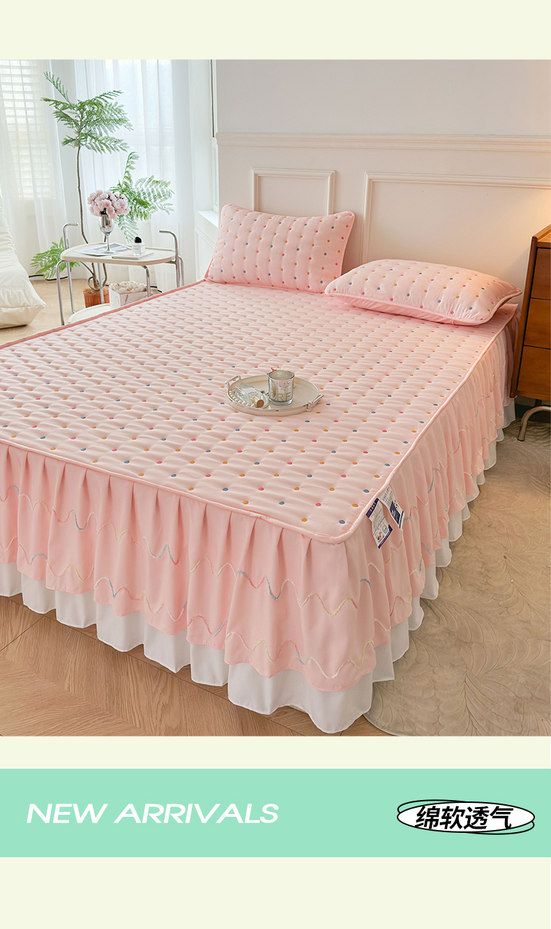 尊康家纺(原磊科) 2024新款亲肤奶昔棉夹棉床裙星空点点系列 星空点点-粉玉