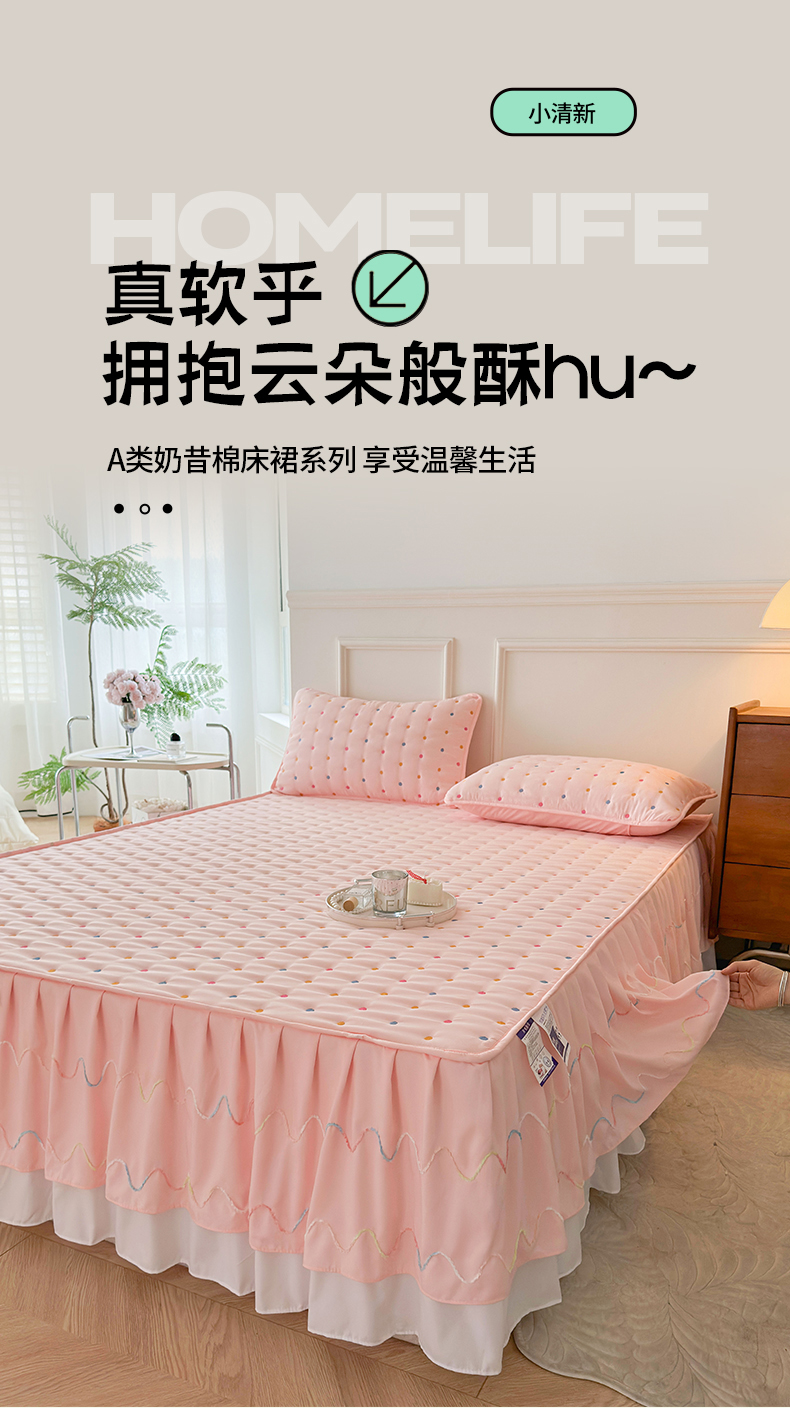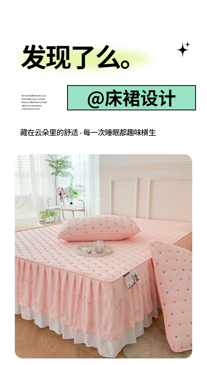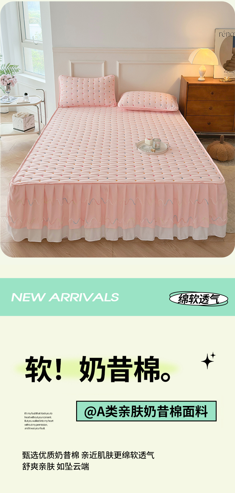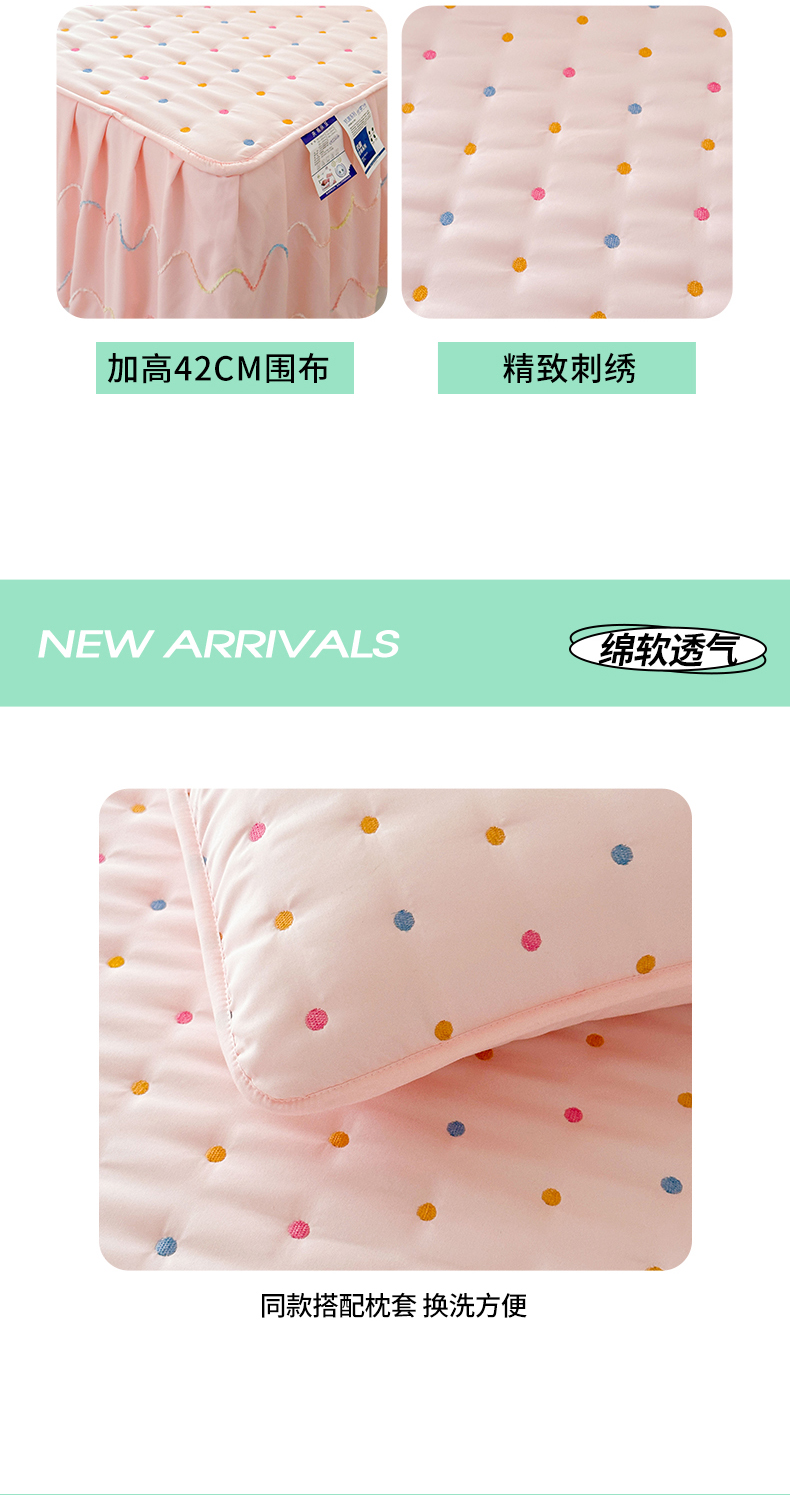 尊康家纺(原磊科) 2024新款亲肤奶昔棉夹棉床裙星空点点系列 星空点点-粉玉