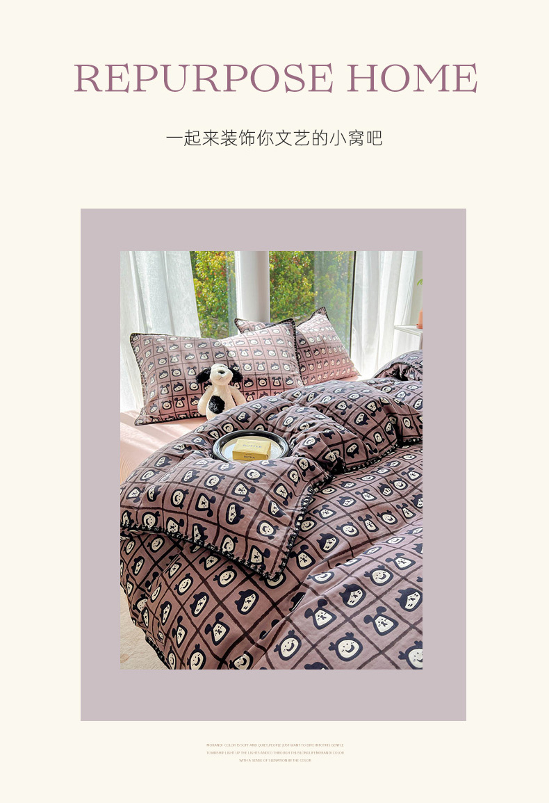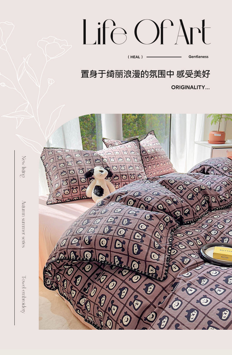 (总)田野 2025新款全棉水洗棉提花四件套,花田,花颜,帽子狗,蘑菇,飘带,泰迪狗,小树林-咖,小象,小雨点,樱桃-绿