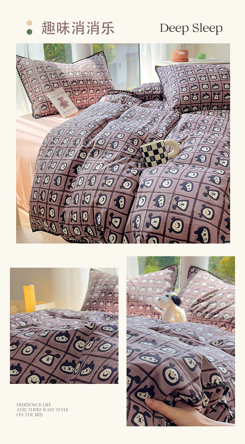 商品名称:田野 2024新款全棉A类贝壳双层纱四件套 趣味消消乐